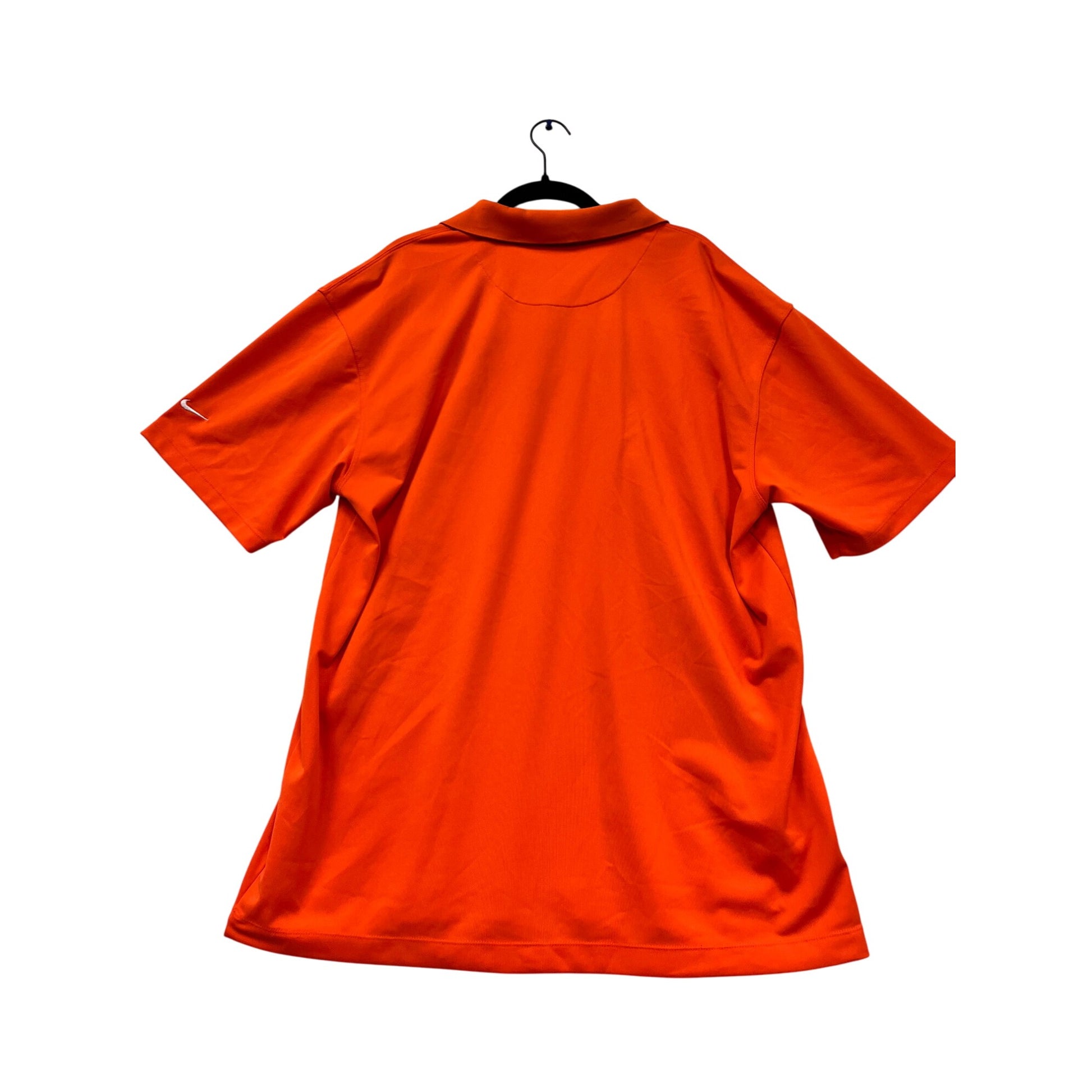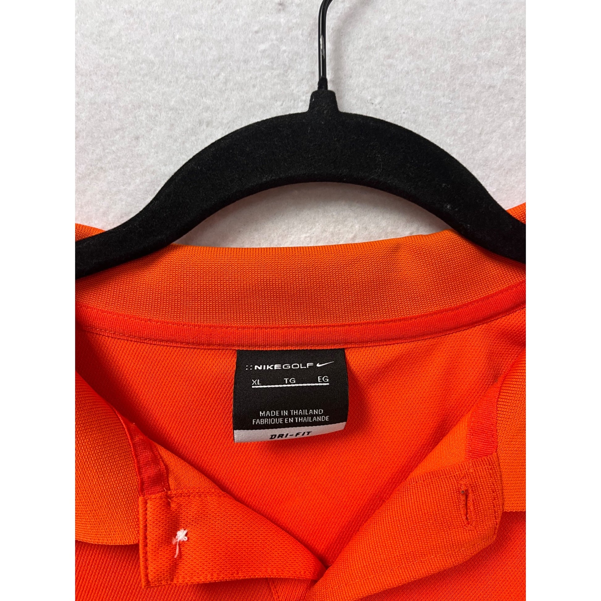This Nike Golf polo shirt combines style and performance, featuring the iconic Miller Lite logo. Made from 100% polyester, it ensures comfort with Dri-Fit technology that wicks moisture, making it ideal for golf or casual wear. The vibrant orange color adds a bold touch to your wardrobe.