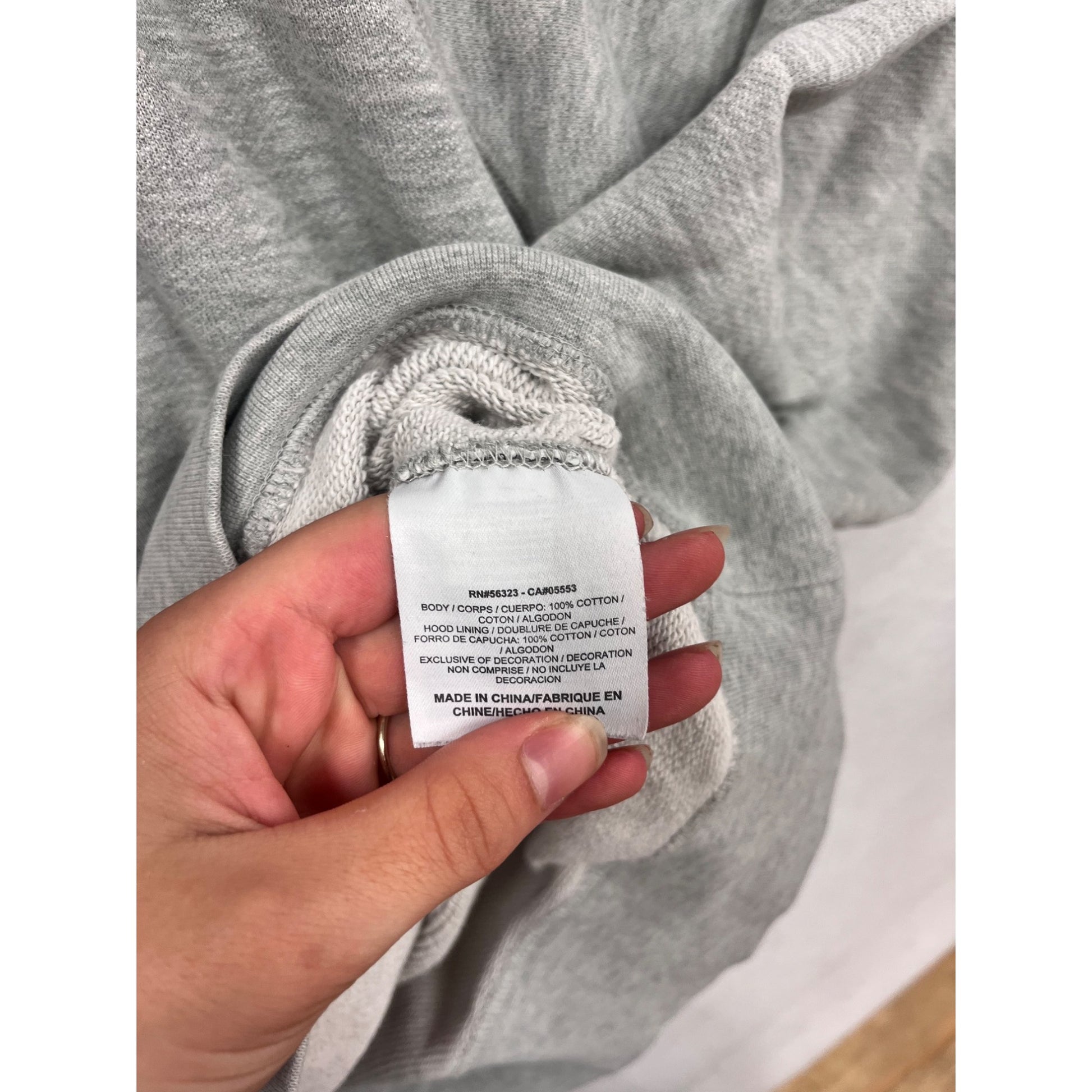 This Nike Kobe Bryant KB24 hoodie in size 3XL combines a stylish gray body with a contrasting purple hood. Crafted from a cotton-blend material, it offers comfort and warmth. Ideal for casual wear, this pullover features signature branding for a distinctive look. Made in China.