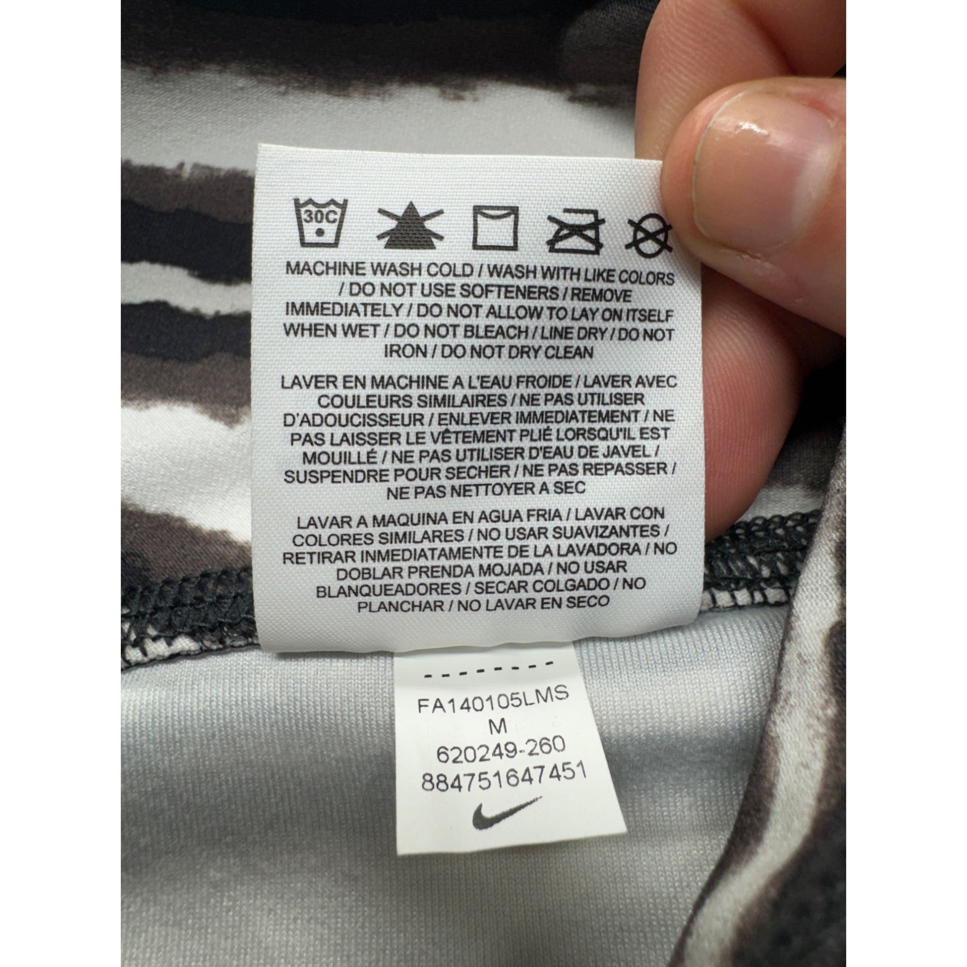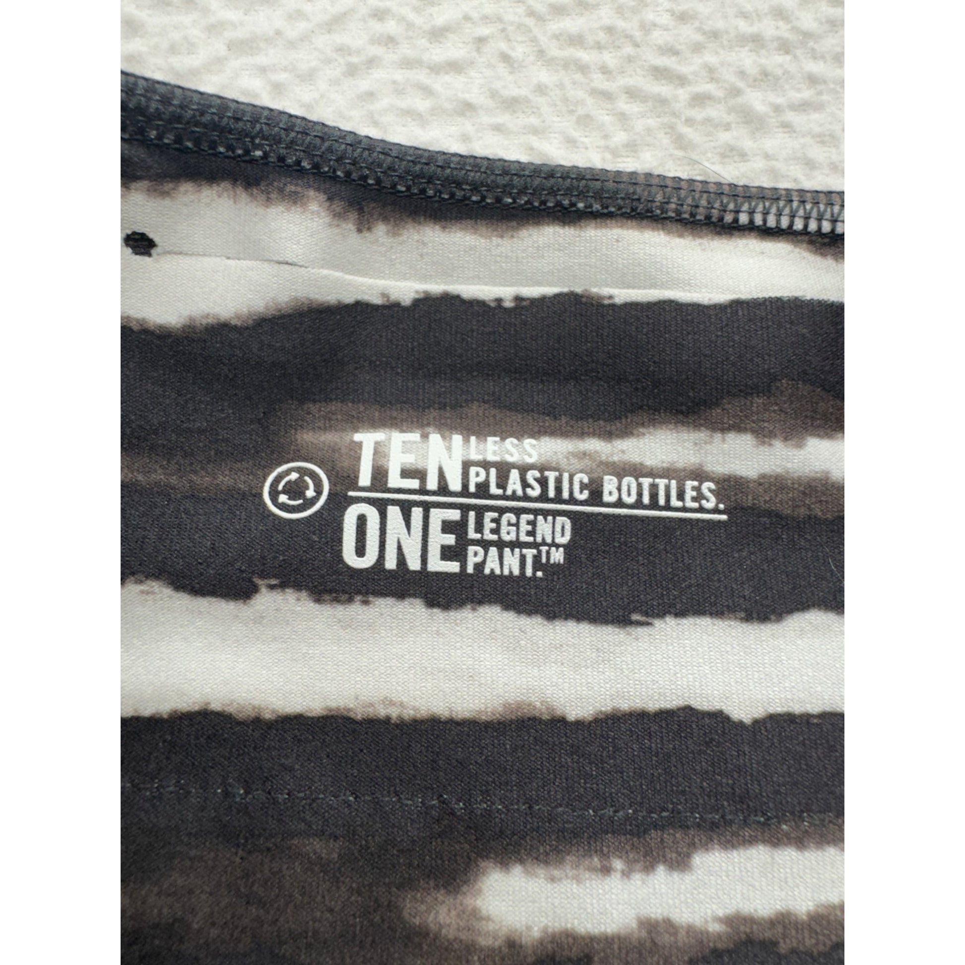 These Nike Legend capri leggings are designed for performance and sustainability, made from recycled polyester. The black and white striped pattern is stylish and versatile. Ideal for workouts or casual wear, these leggings offer comfort and flexibility. Machine washable for easy care, they combine fashion with practicality.