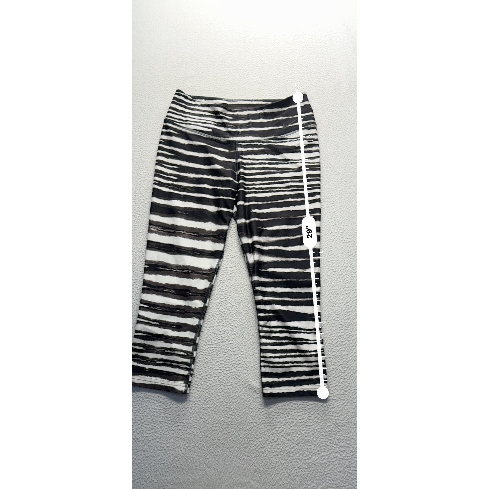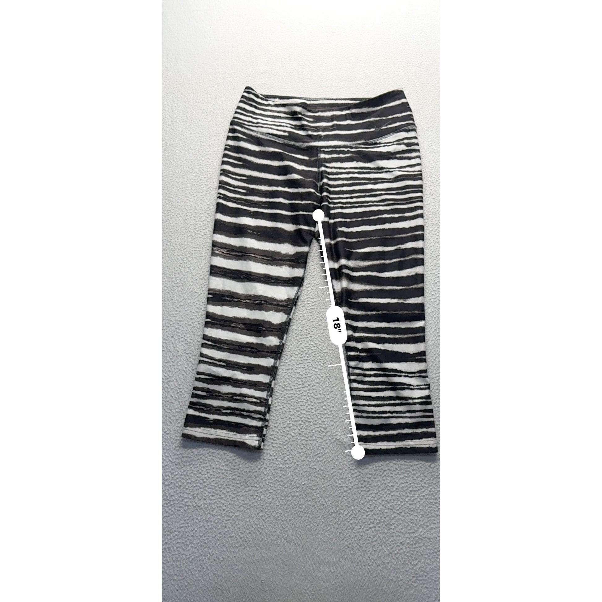 Nike Legend Womens Capri Leggings Medium Black & White Striped Pattern #9153