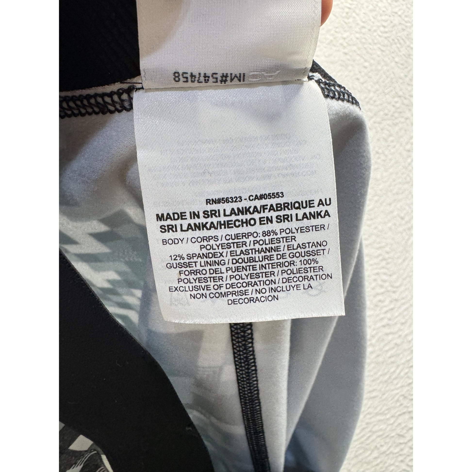 Waistband elastic and stitching show minor wear. Waist = 34 inches (unstretched), inseam = 28 inches.