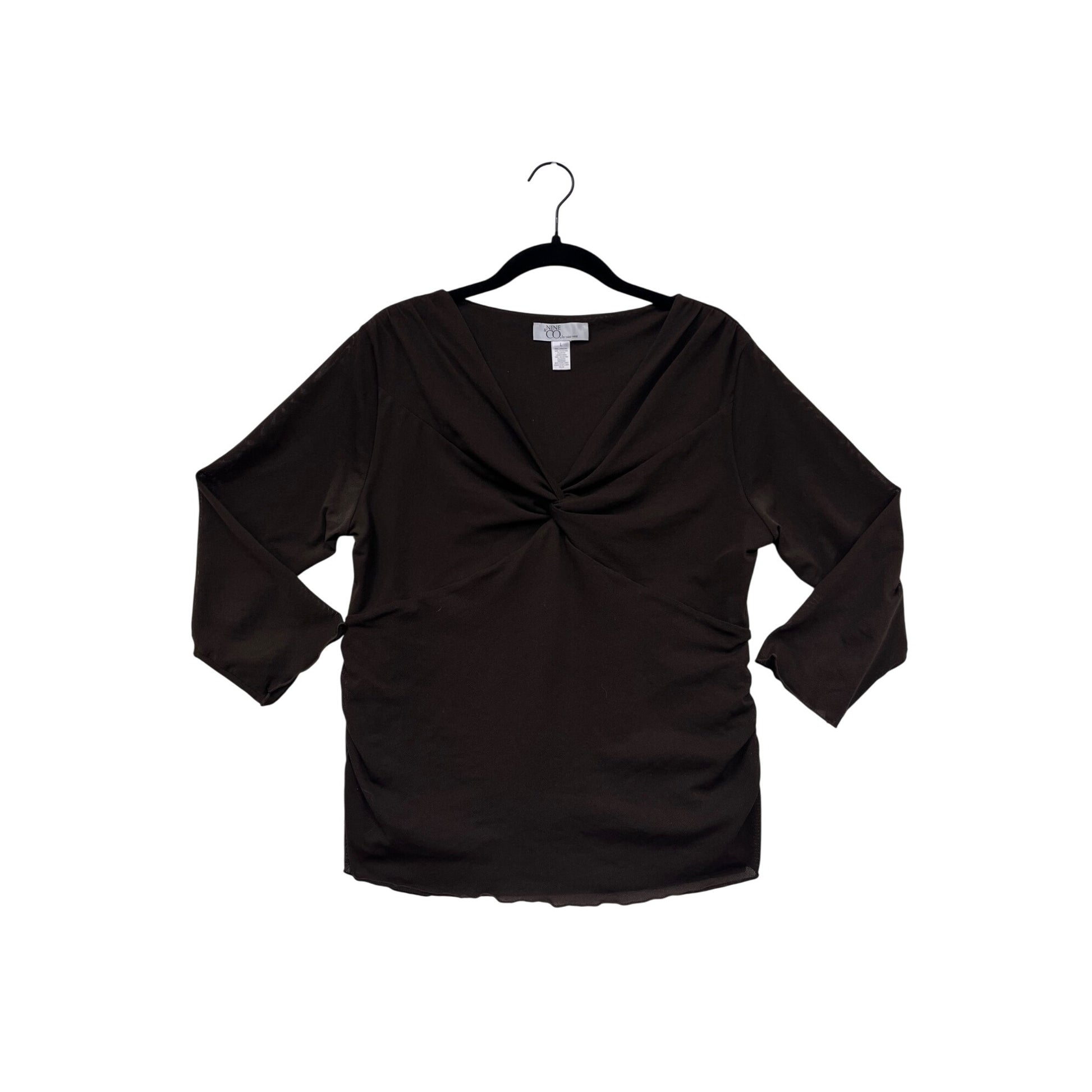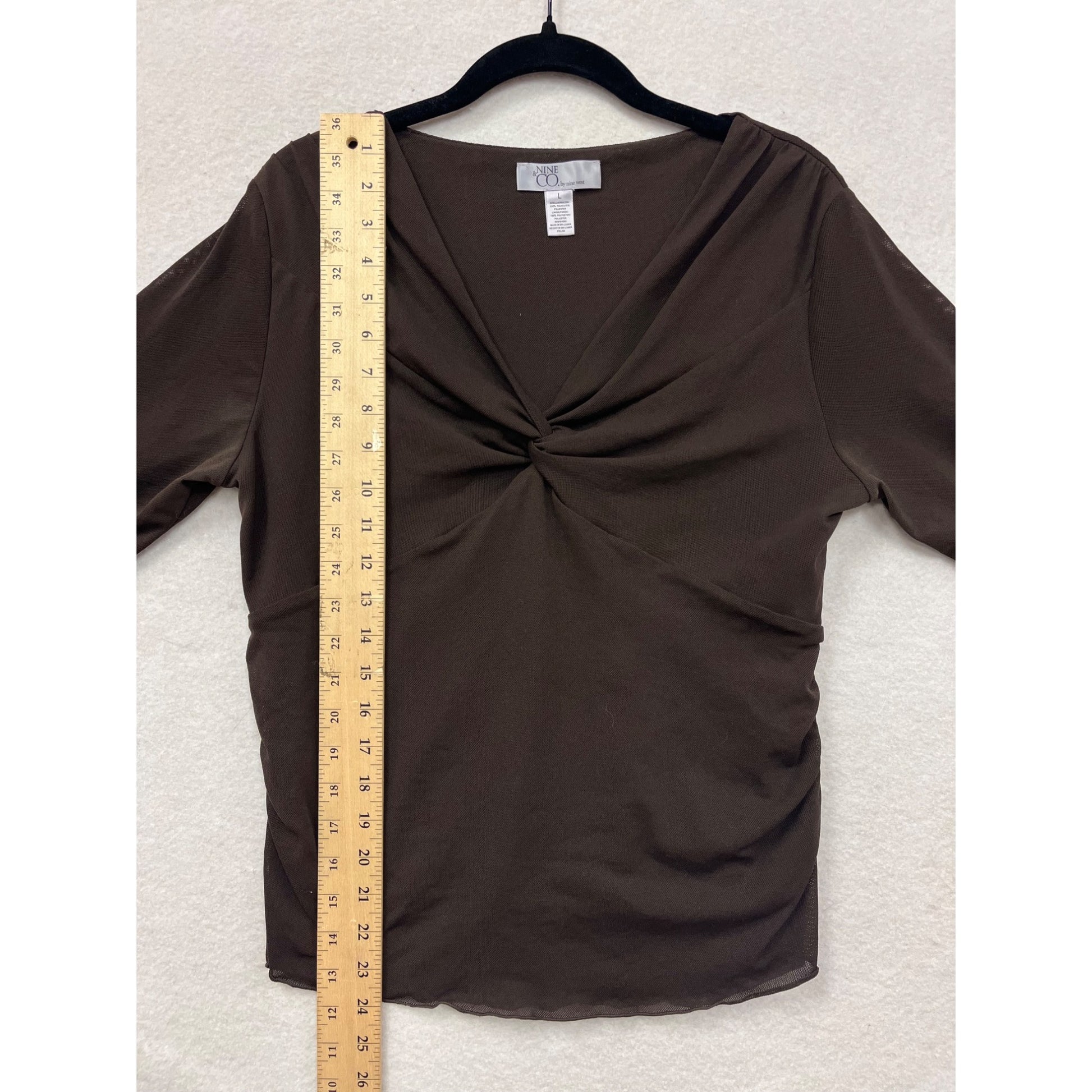 Nine West Womens Large Brown Twist-Front Blouse with 3/4 Sleeve #6494