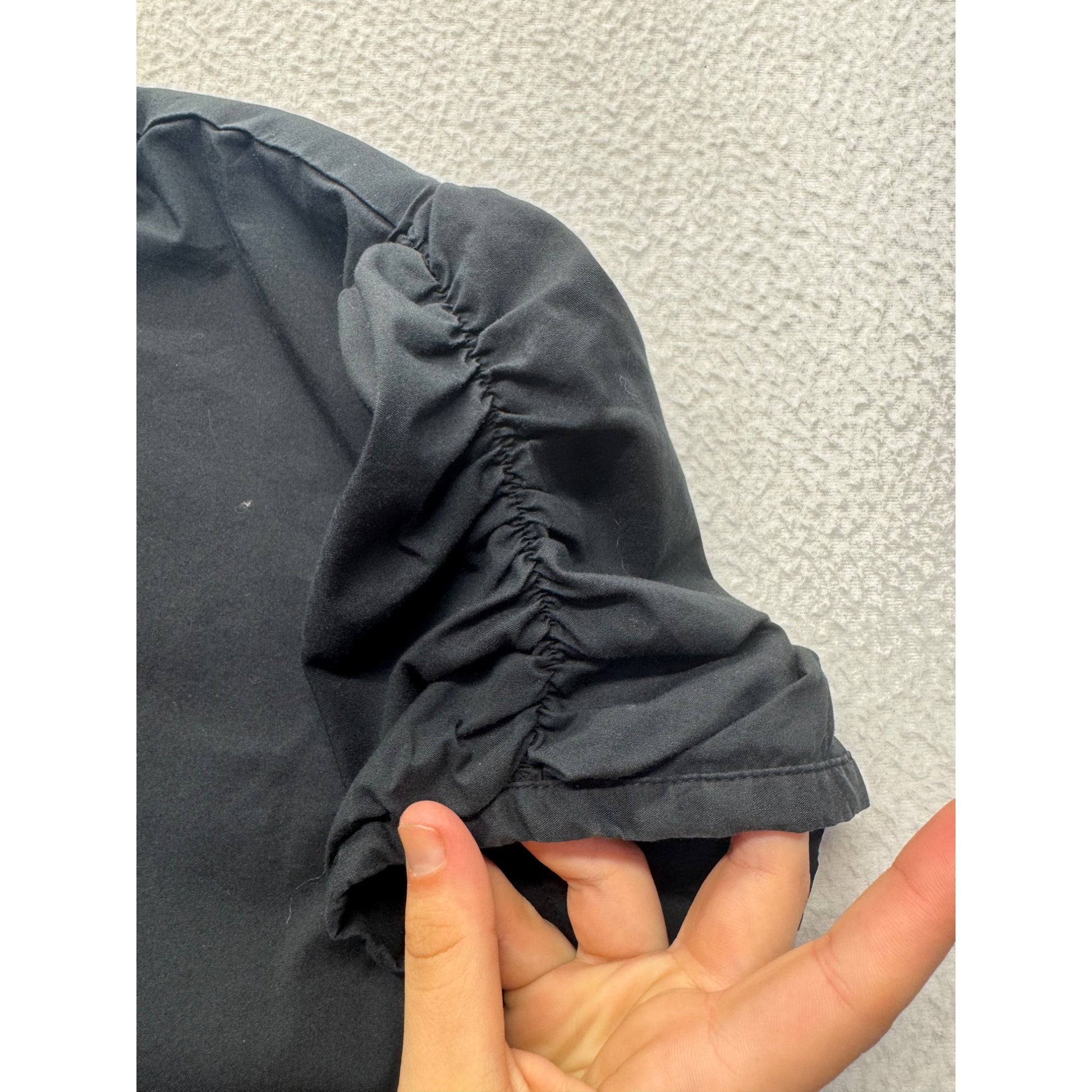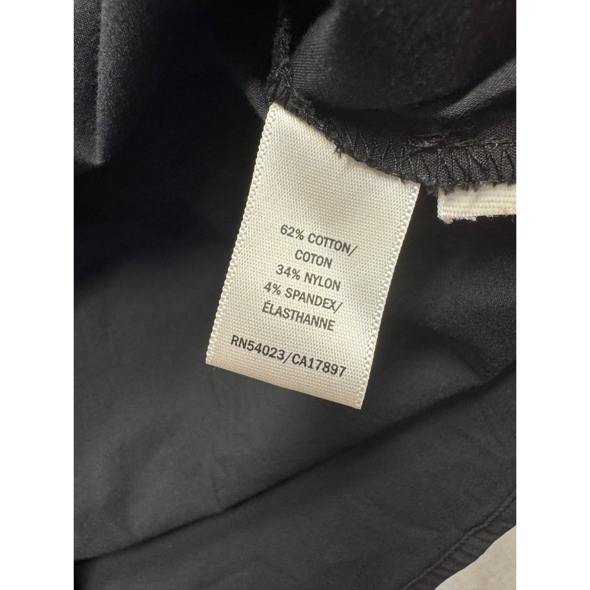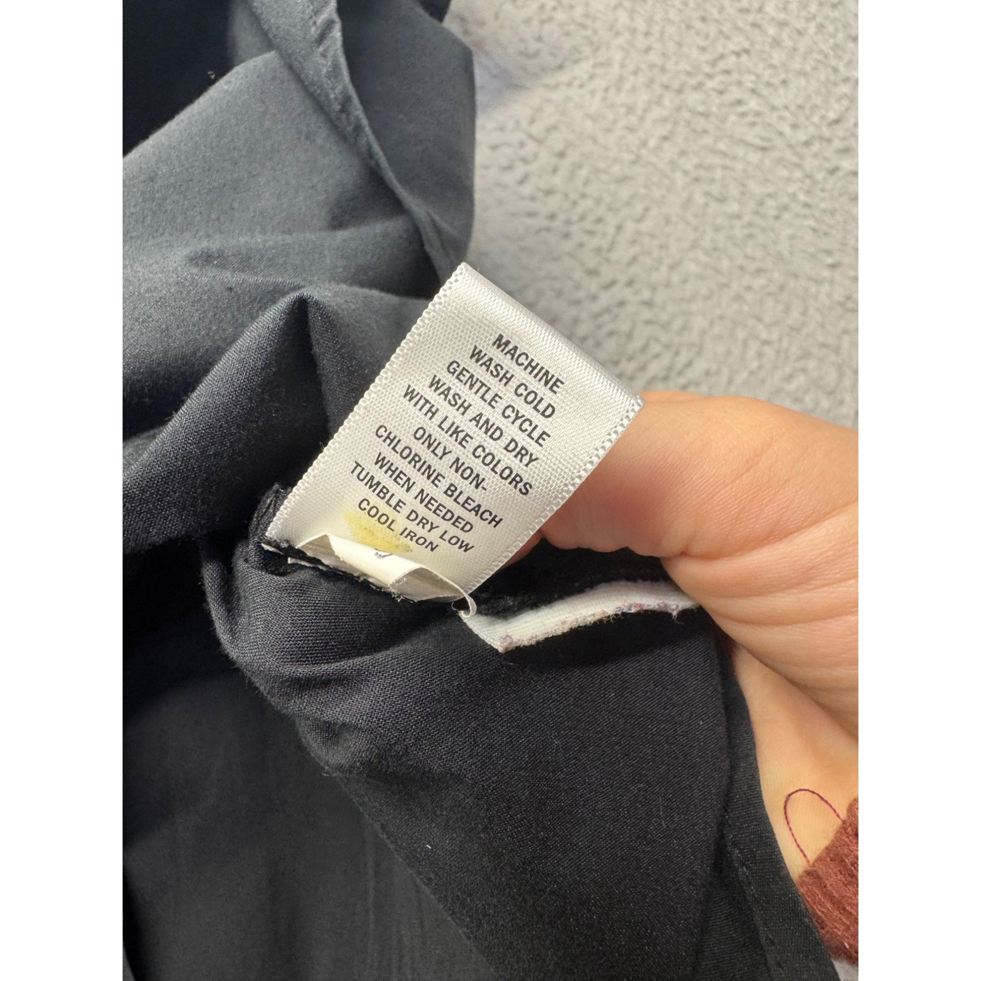 This Old Navy black short sleeve button-down shirt is crafted for versatile professional wear. The ruched sleeves add a touch of elegance, while the blend of cotton, nylon, and spandex provides comfort and flexibility. Ideal for office settings or casual outings, this shirt ensures a polished appearance.