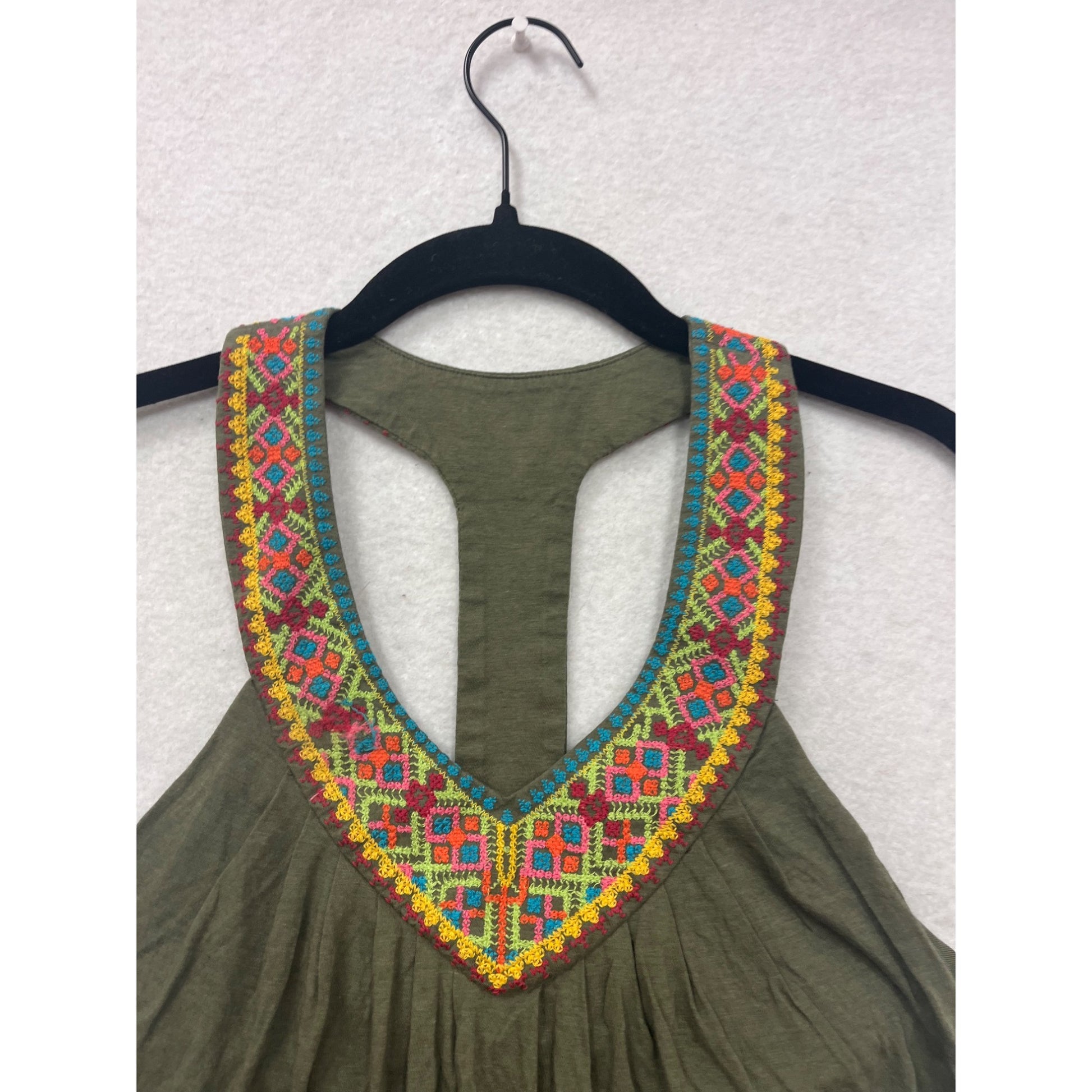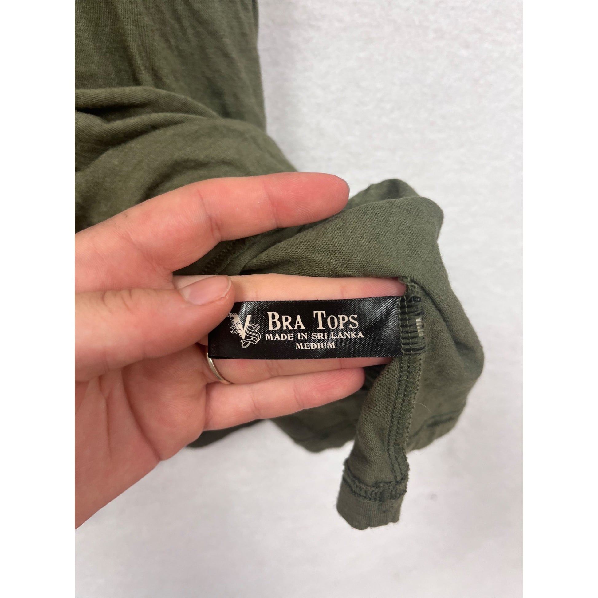 Olive Green Embroidered Racerback Tank Top By Bra Tops Medium #8626