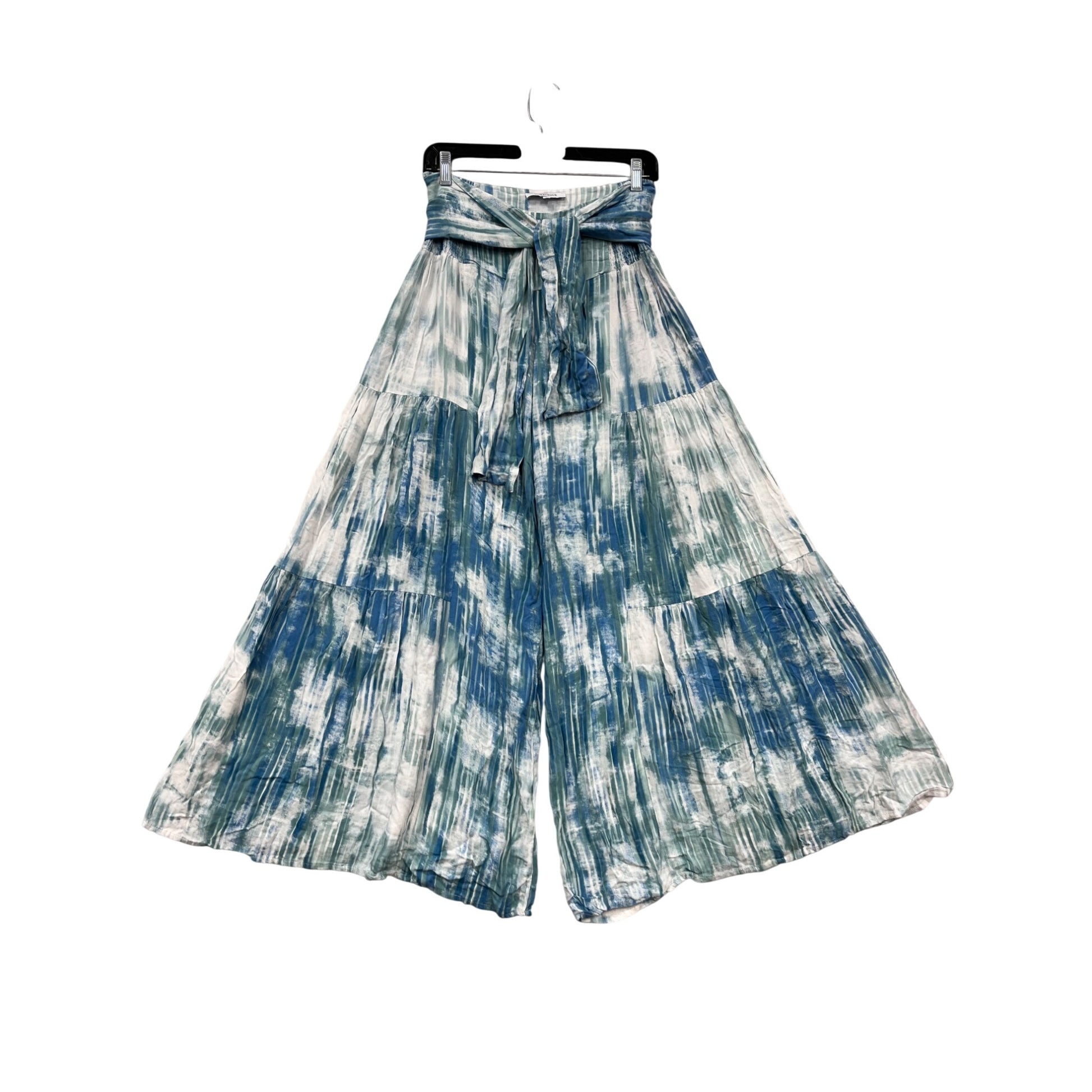 Oliveaceous Tie-Dye Wide-Leg Rayon Pants With Waist Sash Size L #140A