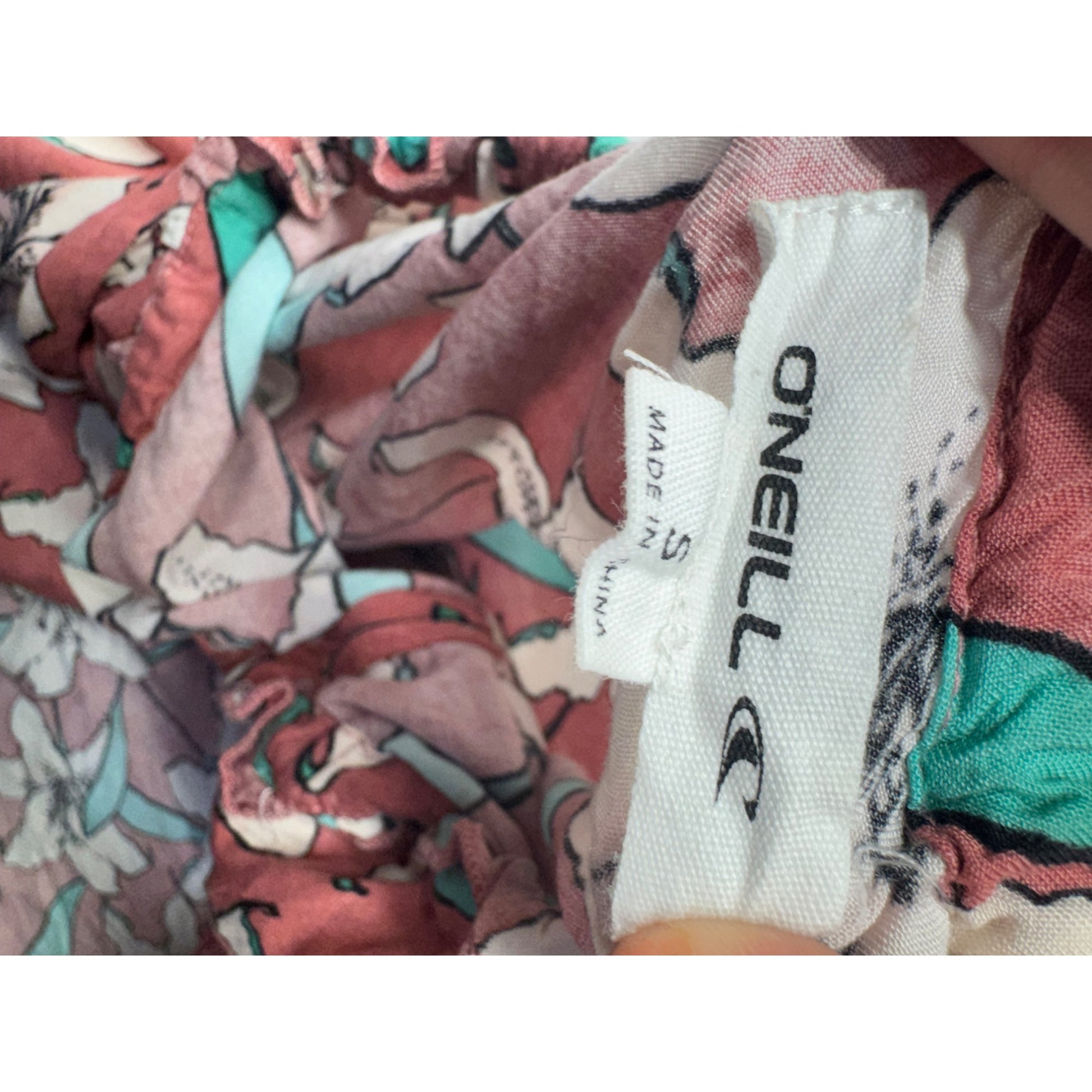 This O'Neill floral kimono top offers a blend of comfort and style, ideal for a chic, effortless look. Its lightweight fabric ensures breathability, while the button details and ruffled collar add a touch of elegance. Perfect for casual or semi-formal settings, it pairs well with various bottoms for a versatile wardrobe addition.