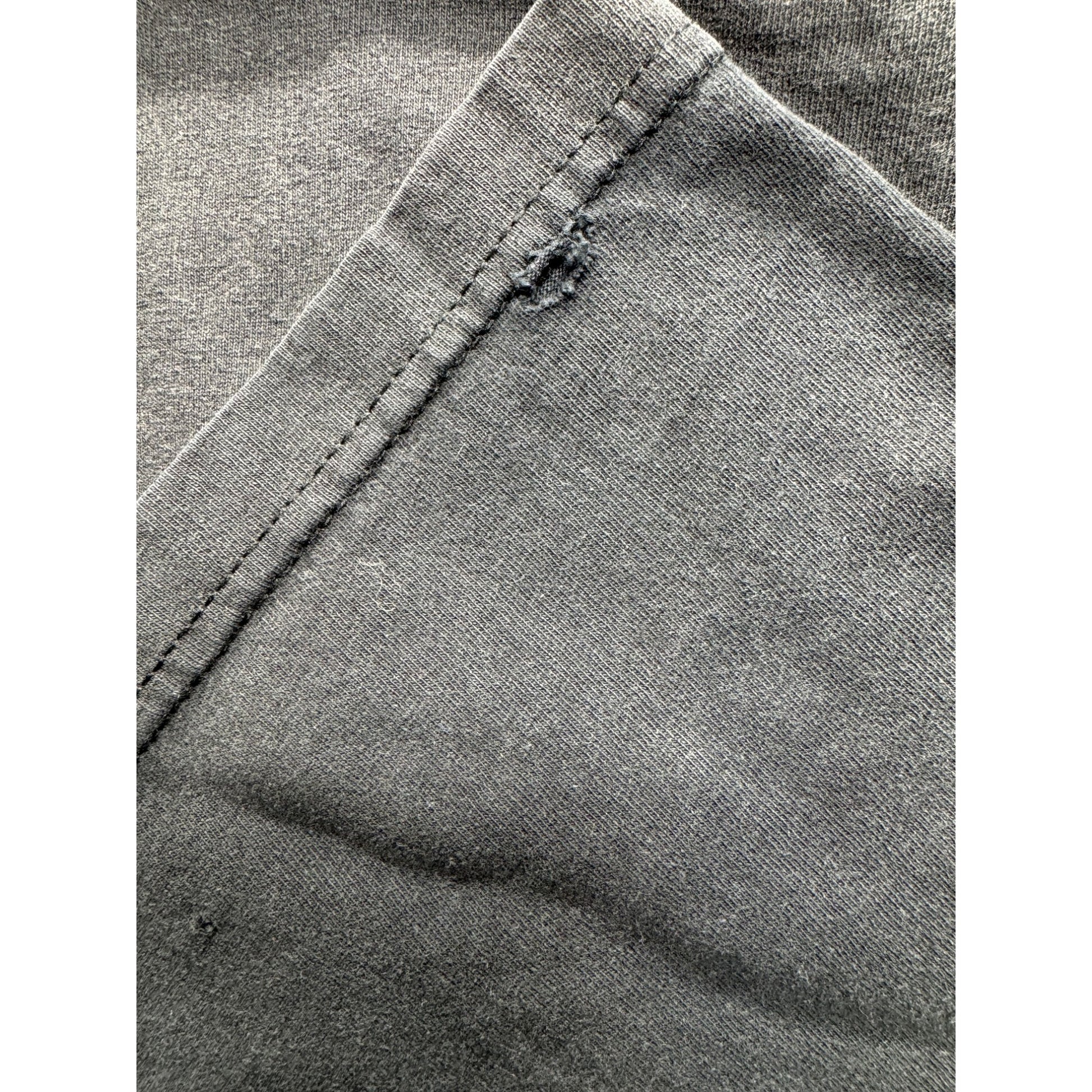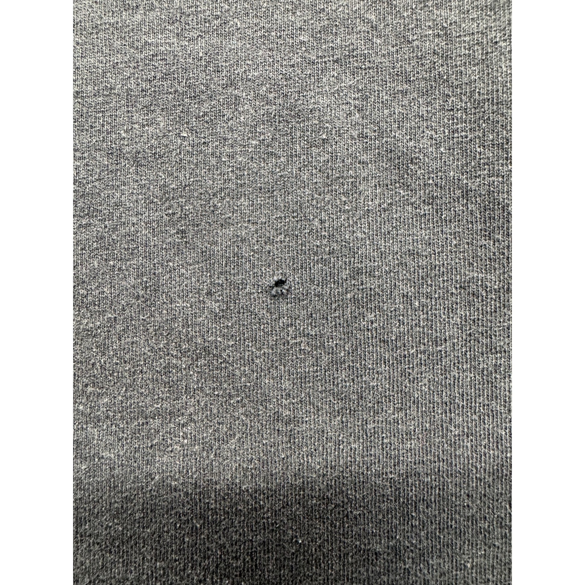 Small hole on the back and minor stitching wear near the seam.