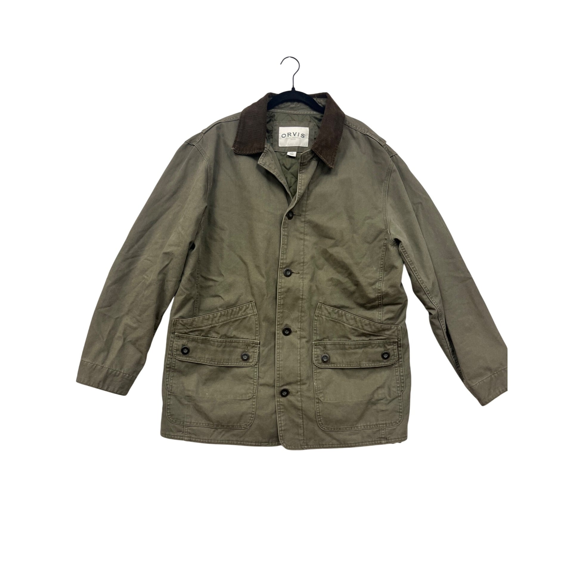 Designed for durability and style, this Orvis field jacket combines a rugged aesthetic with practical features. Its quilted lining ensures warmth while maintaining comfort.