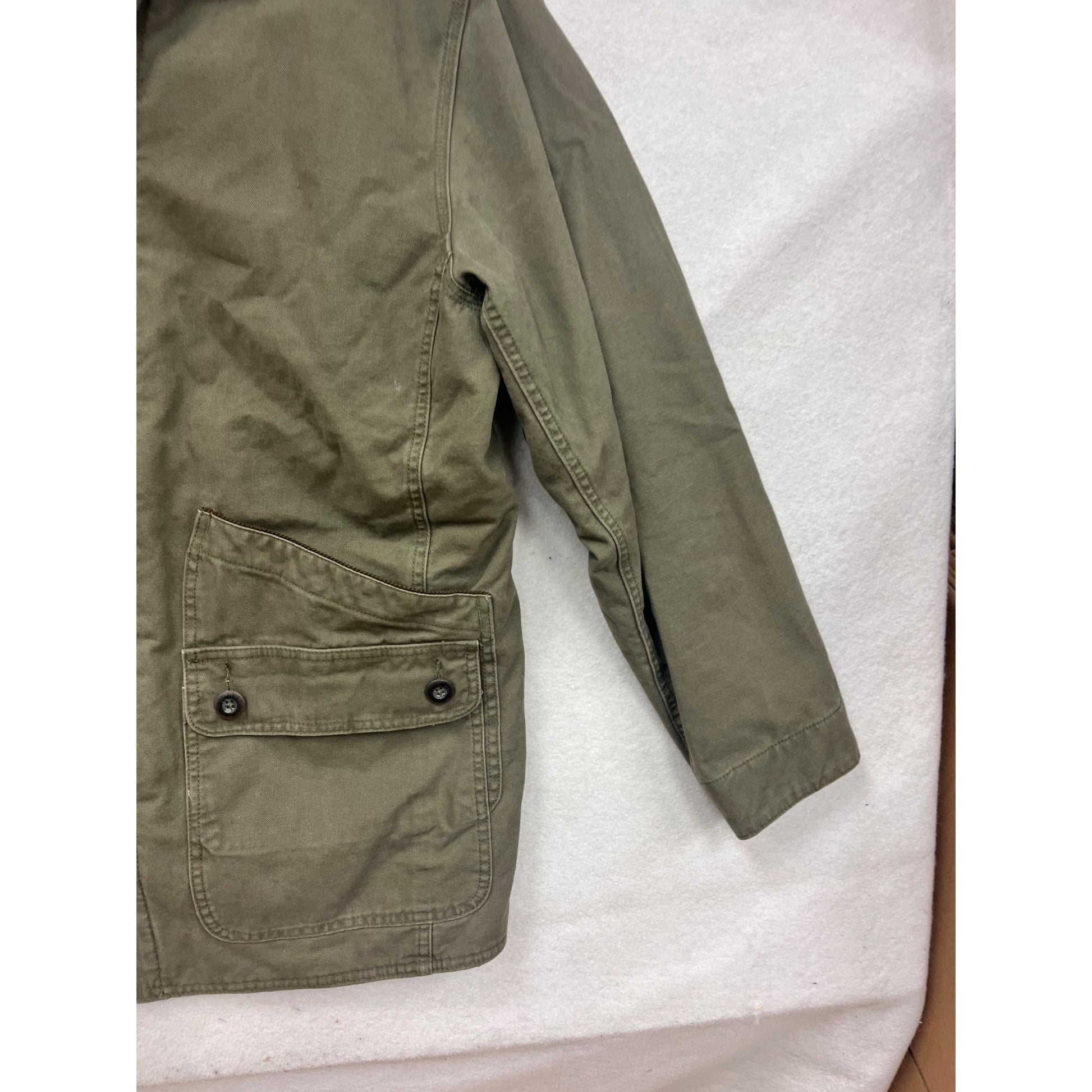 Orvis Large Olive Green Quilted Field Jacket With Corduroy Collar #90A