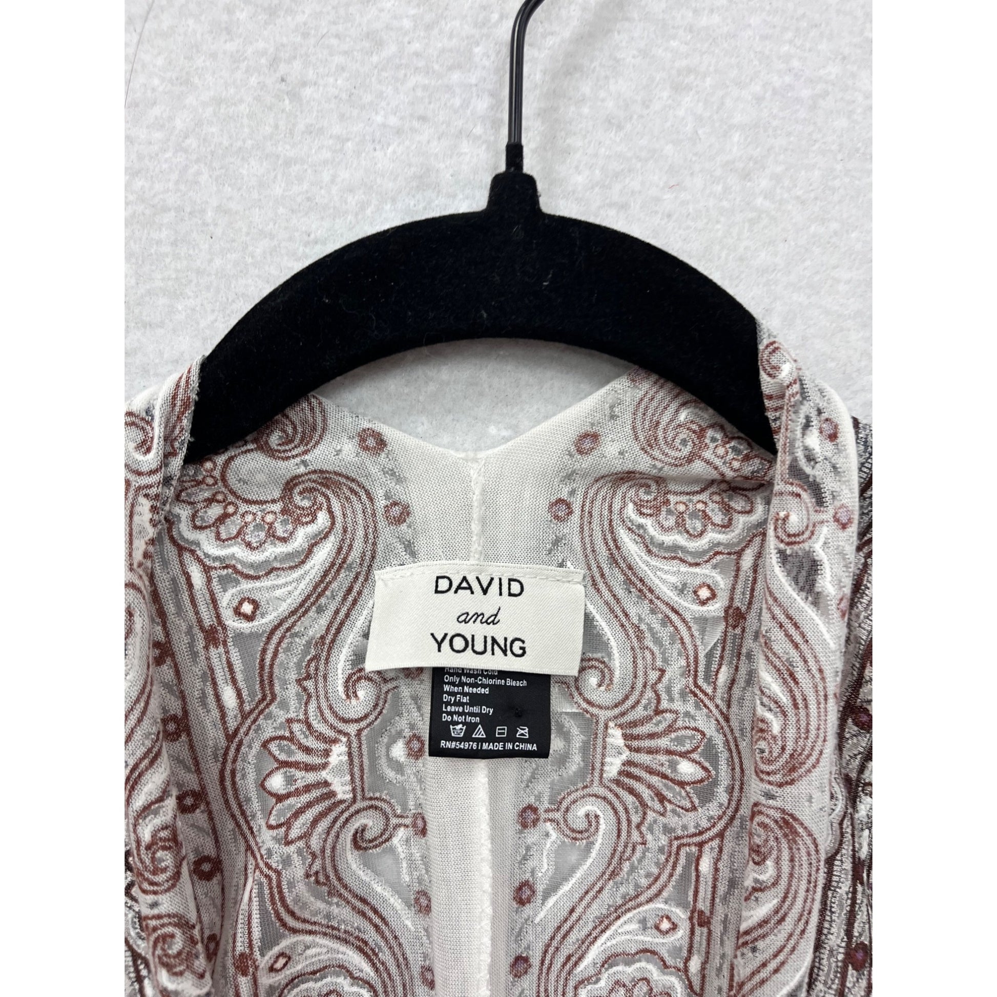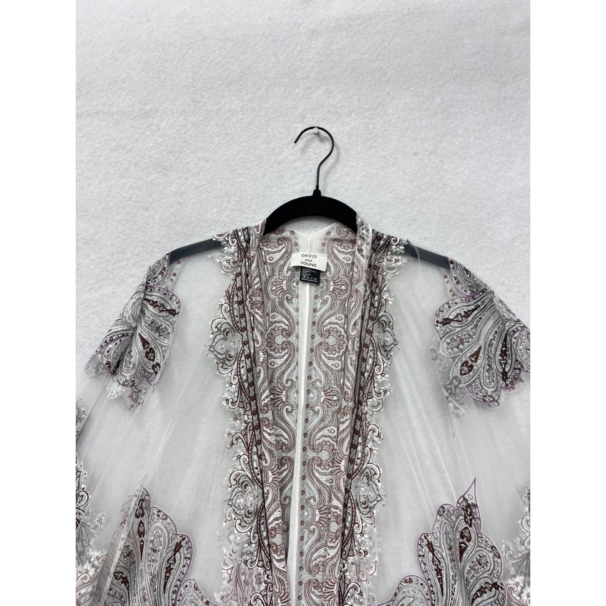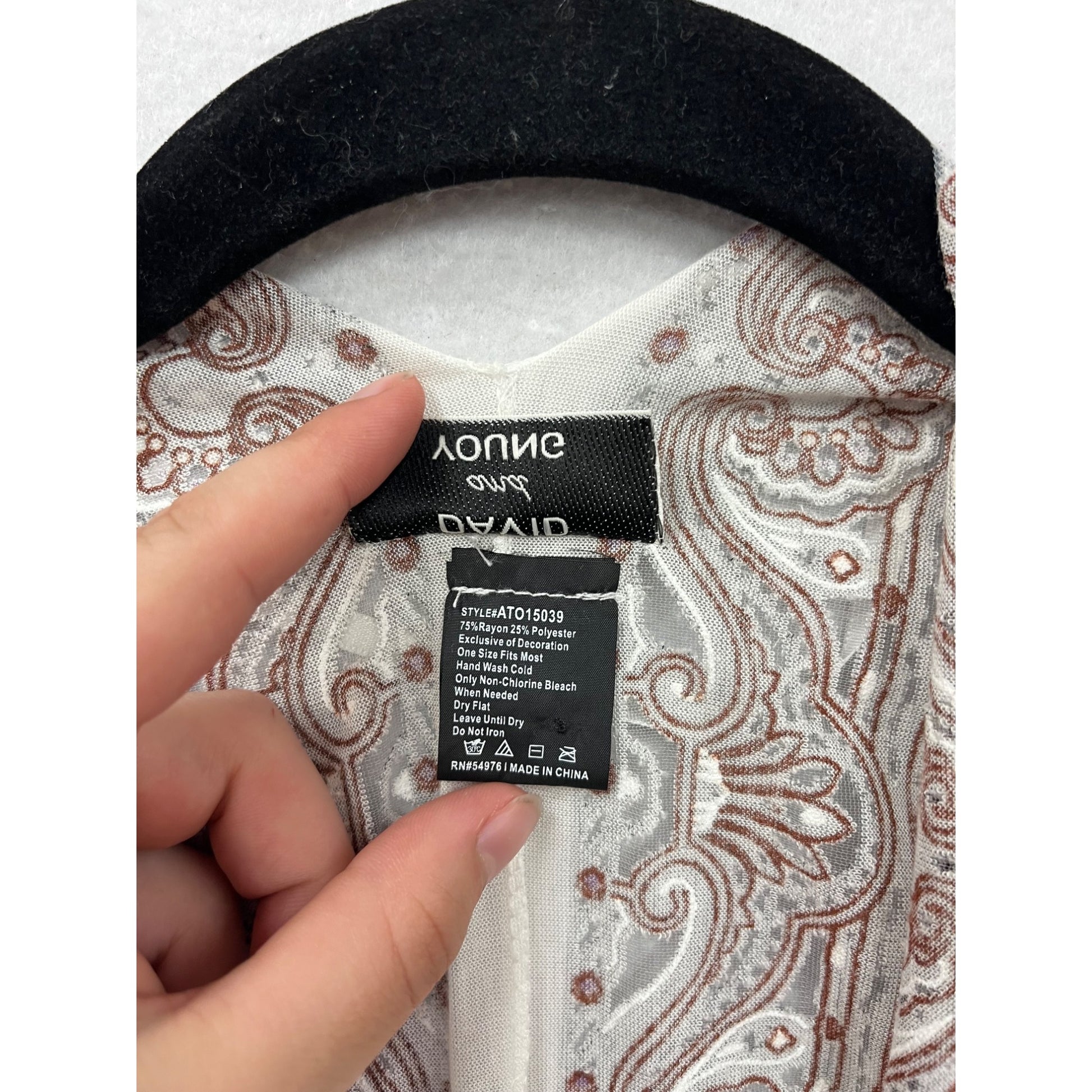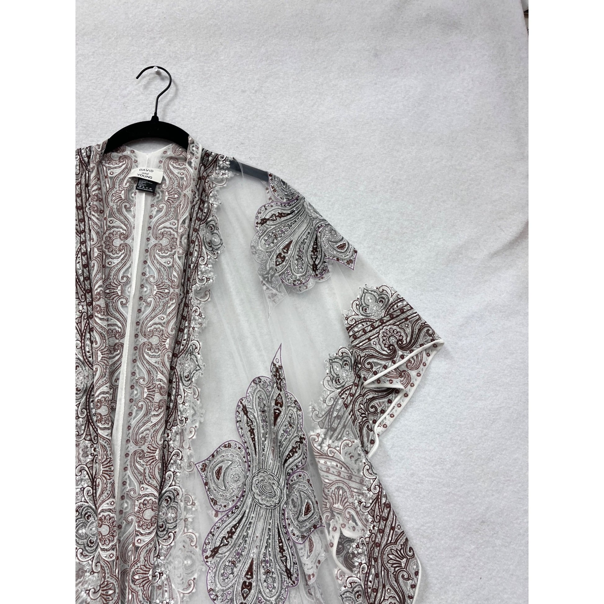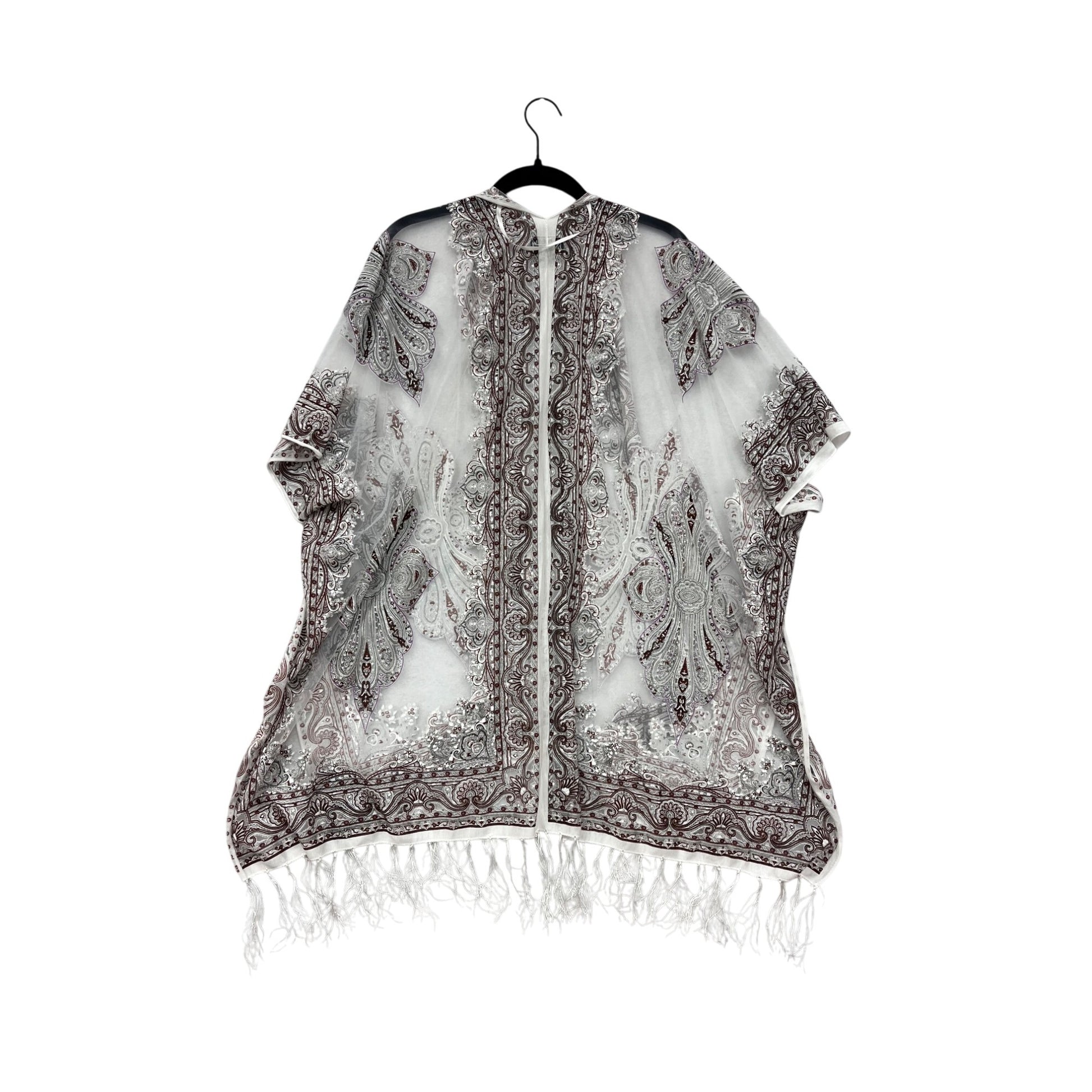 Paisley Sheer Fringe Cardigan OS White & Burgundy By David And Young #8767