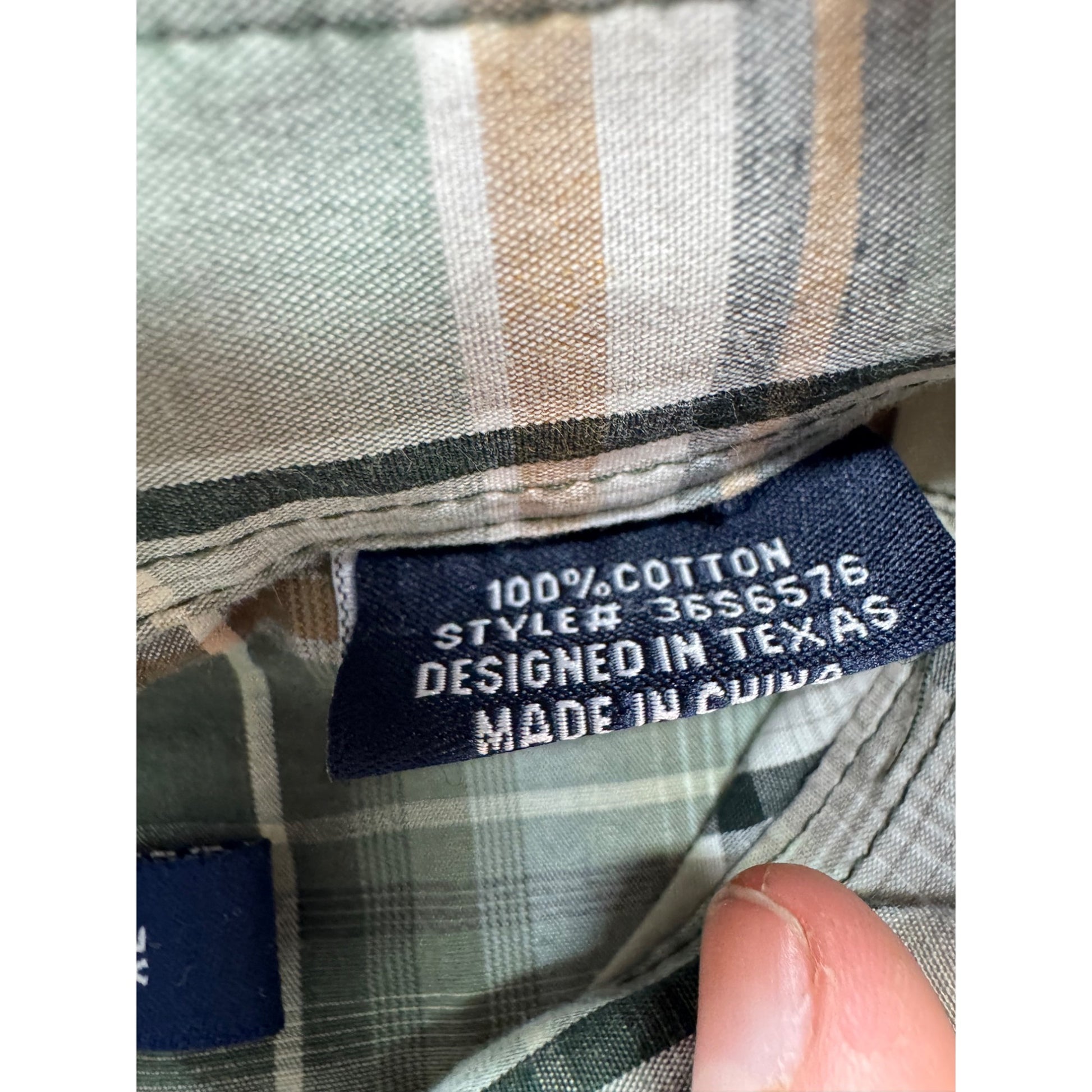 Panhandle Slim Long Sleeve Plaid Shirt X-Large Green & Brown Cotton #7983