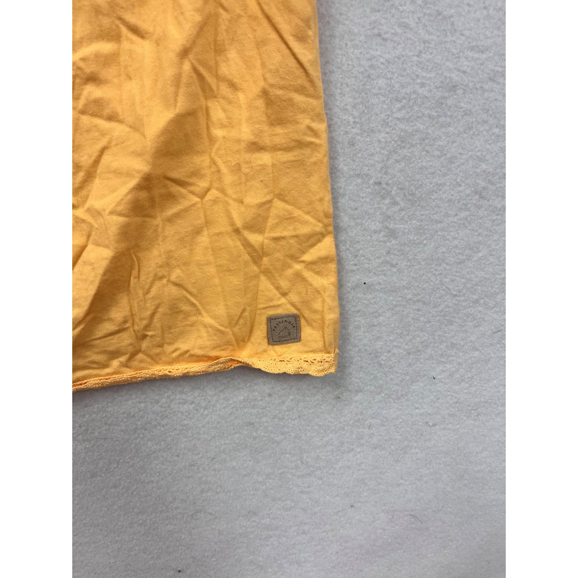 This lightweight yellow cotton top with intricate crochet detailing offers elegance and comfort. Adjustable straps ensure a tailored fit for versatile wear.