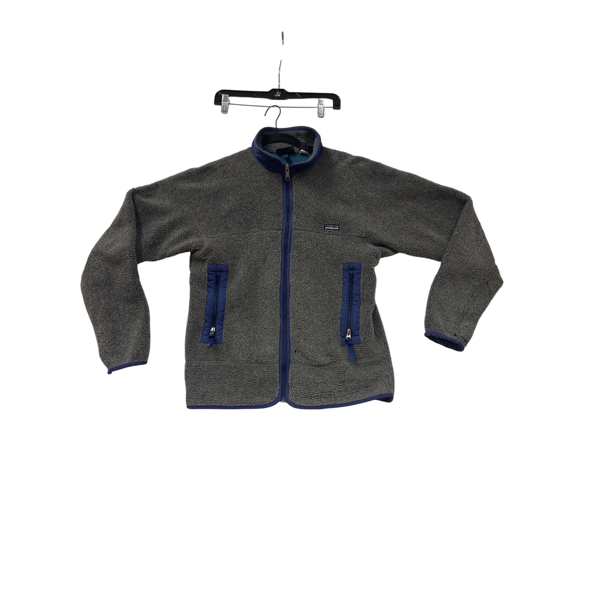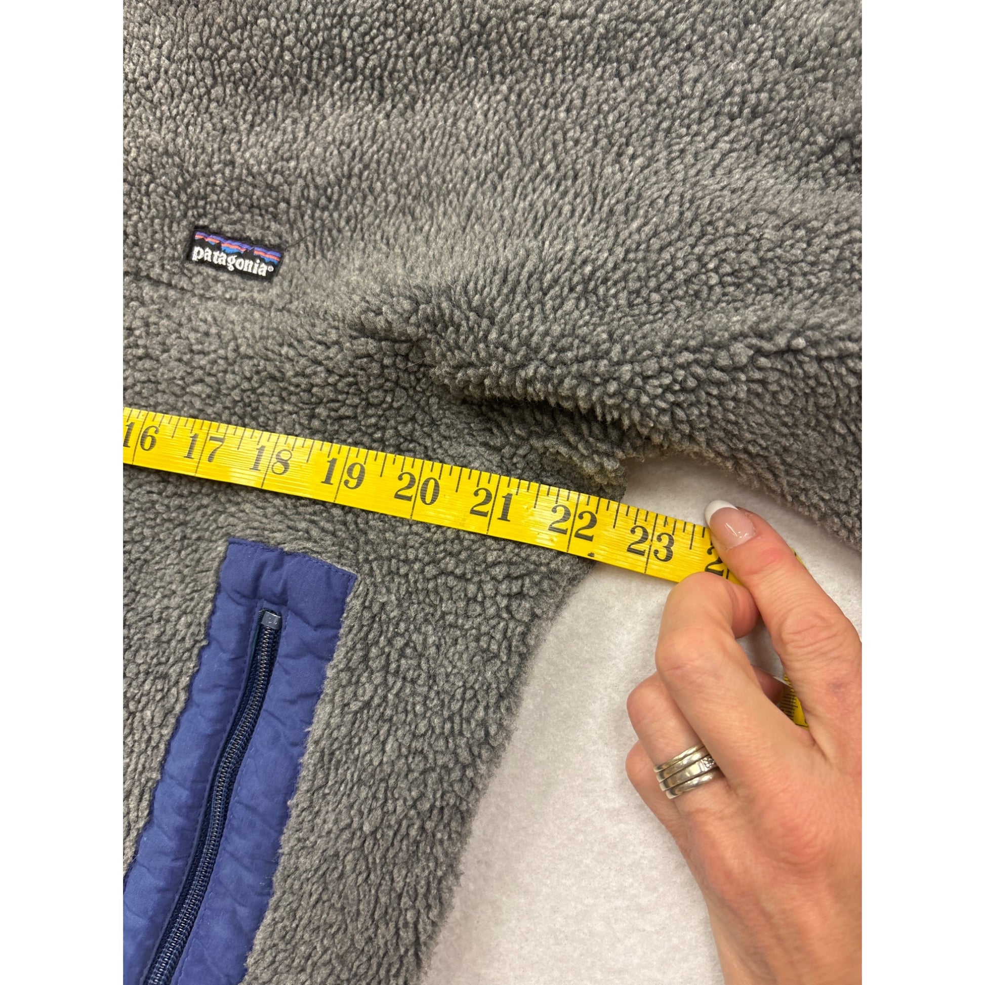 Patagonia Gray Full-Zip Sherpa Fleece Jacket With Blue Accents & Zippered Pockets Mens L Warm & Durable Outdoor Wear #6980