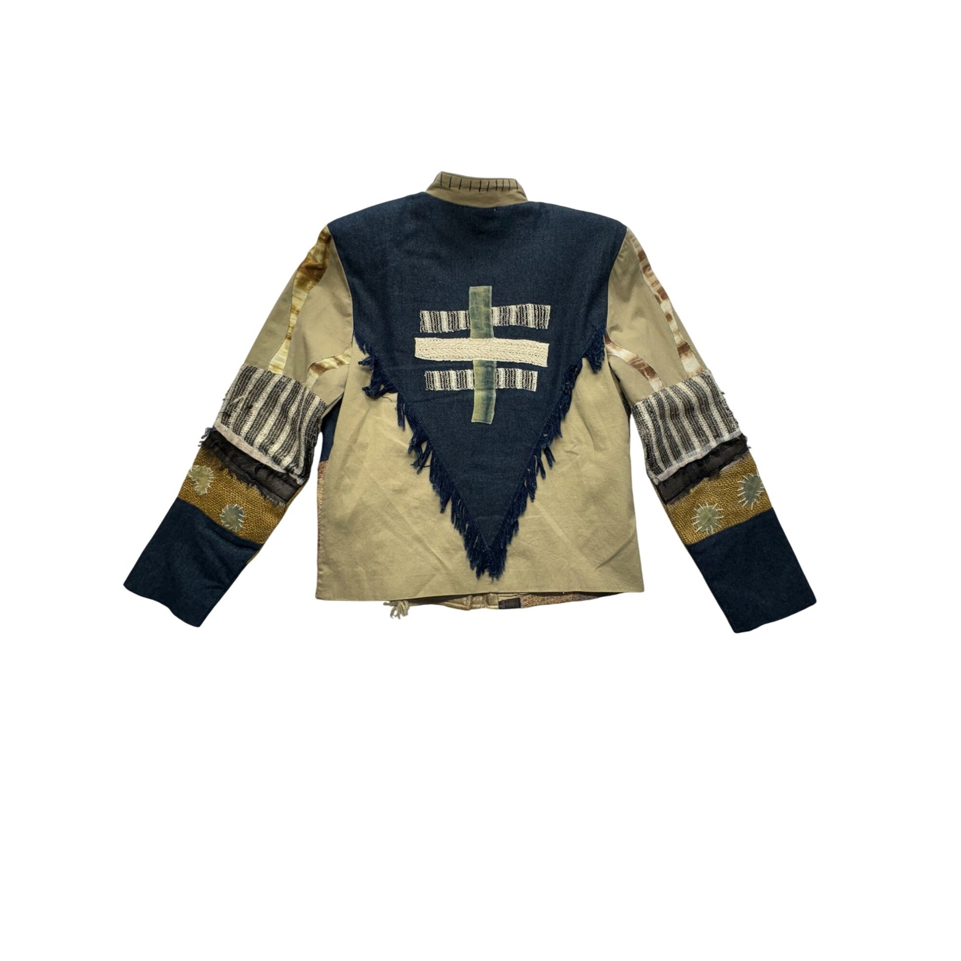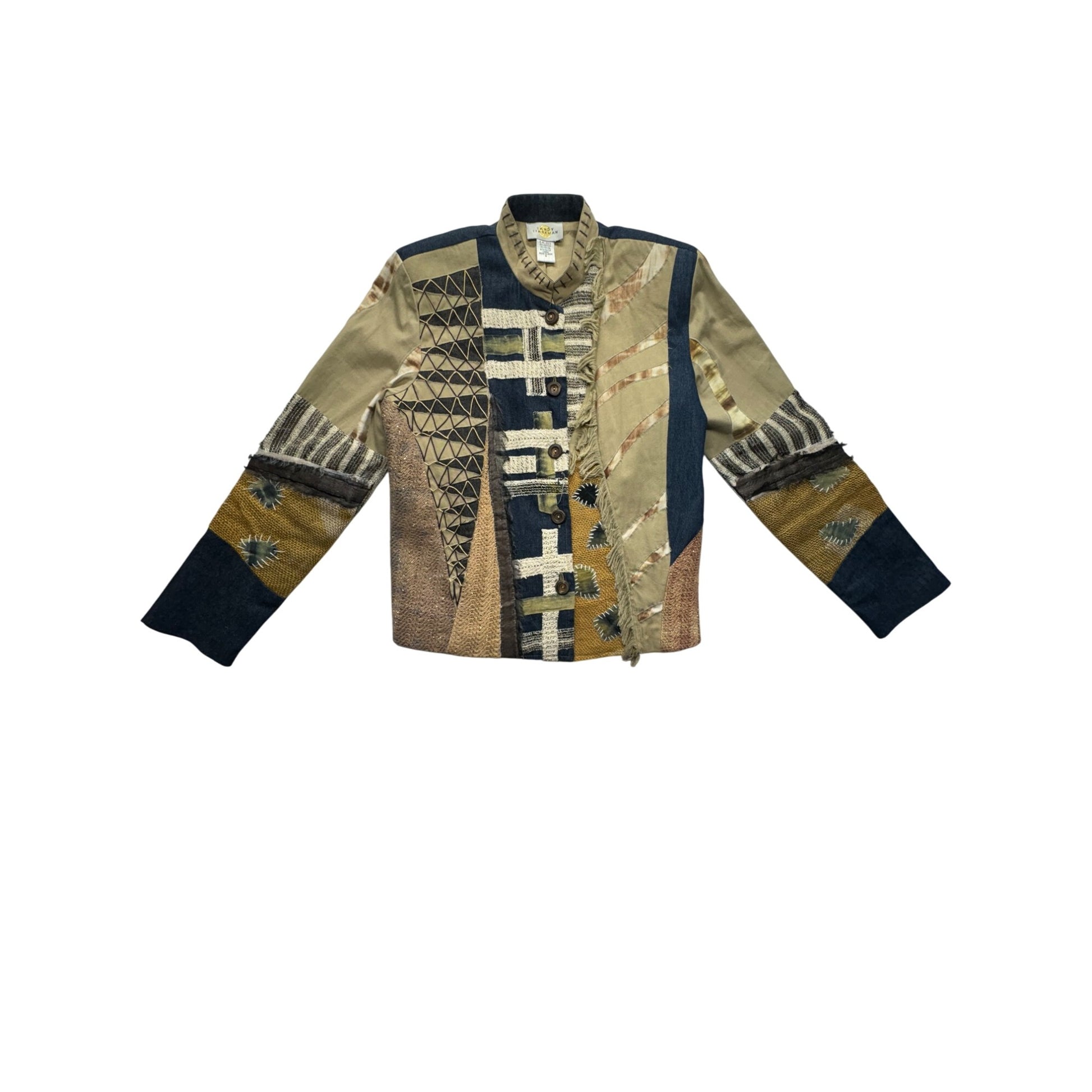 This patchwork jacket combines intricate craftsmanship with a blend of textures. Its unique design and premium materials ensure both style and comfort.