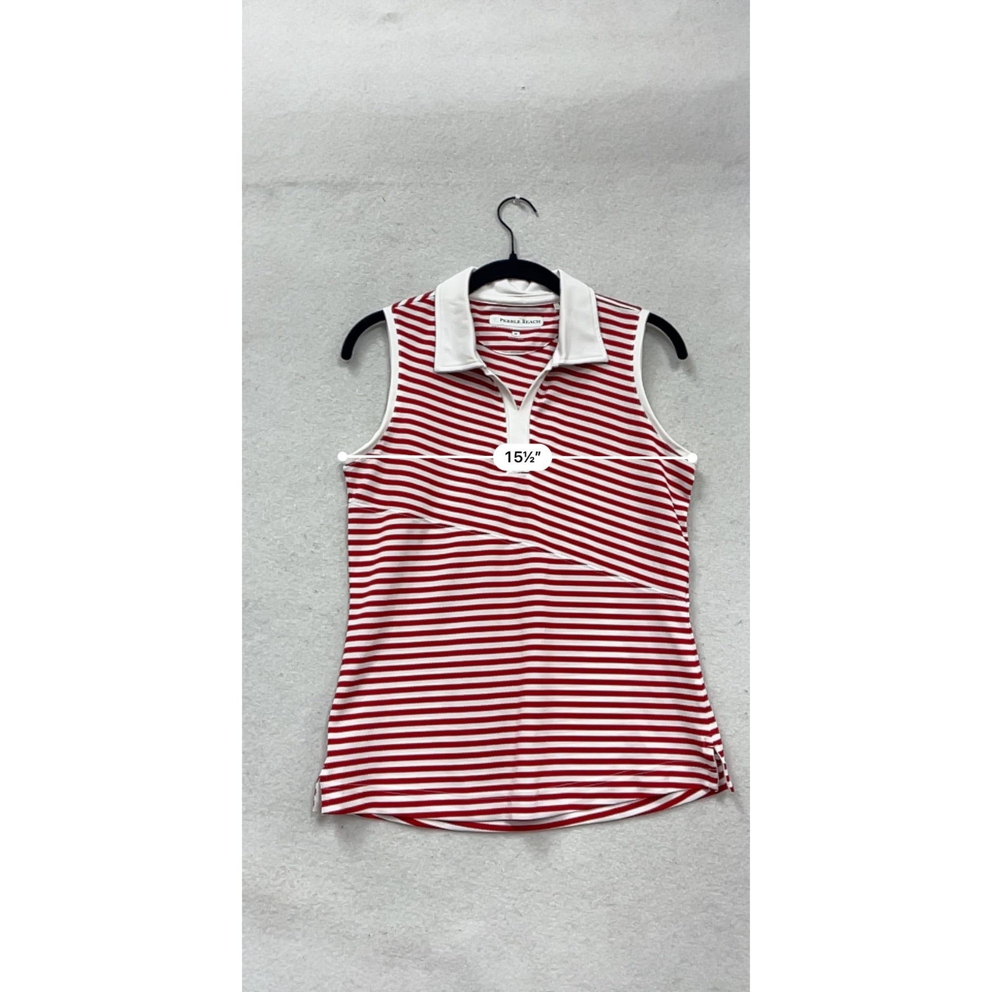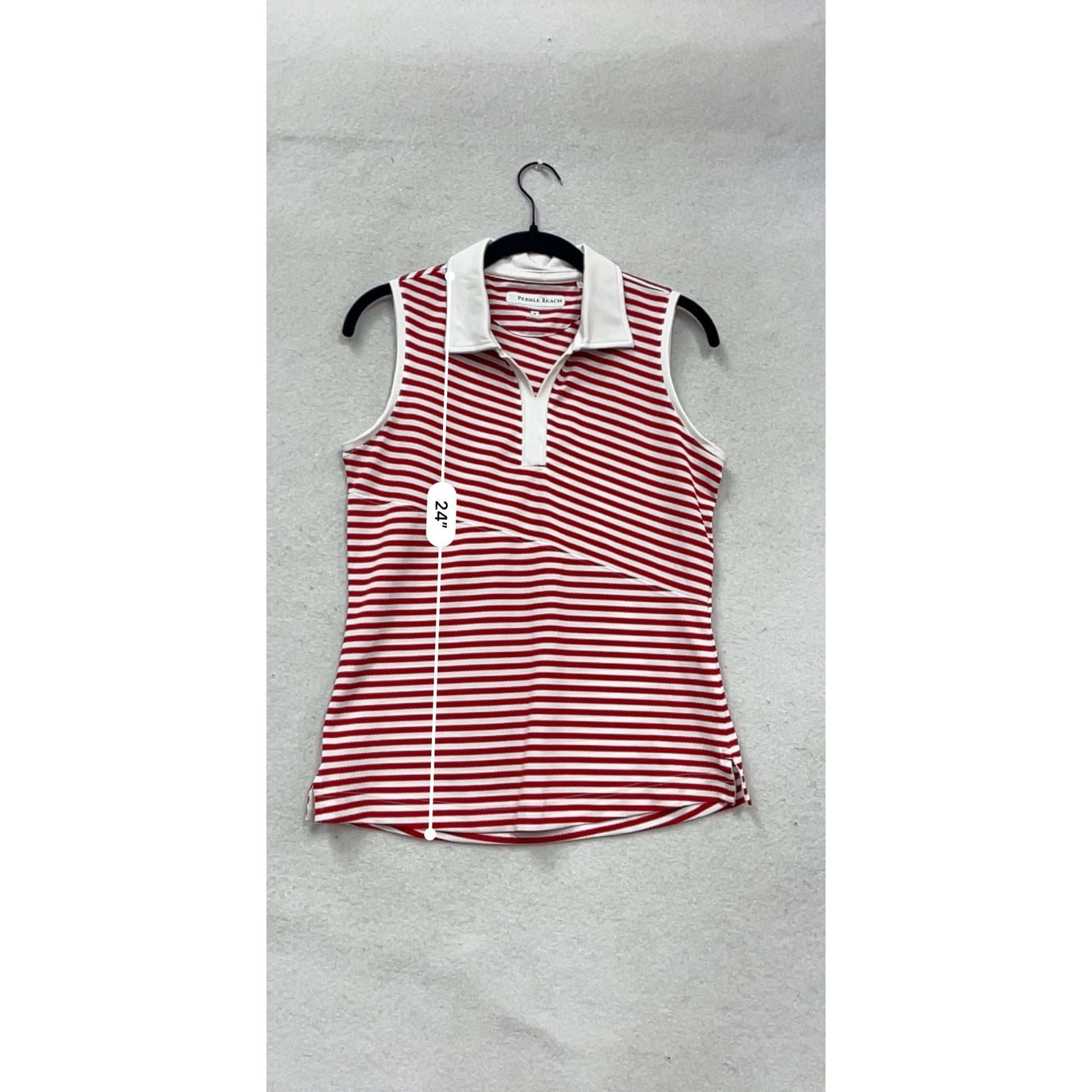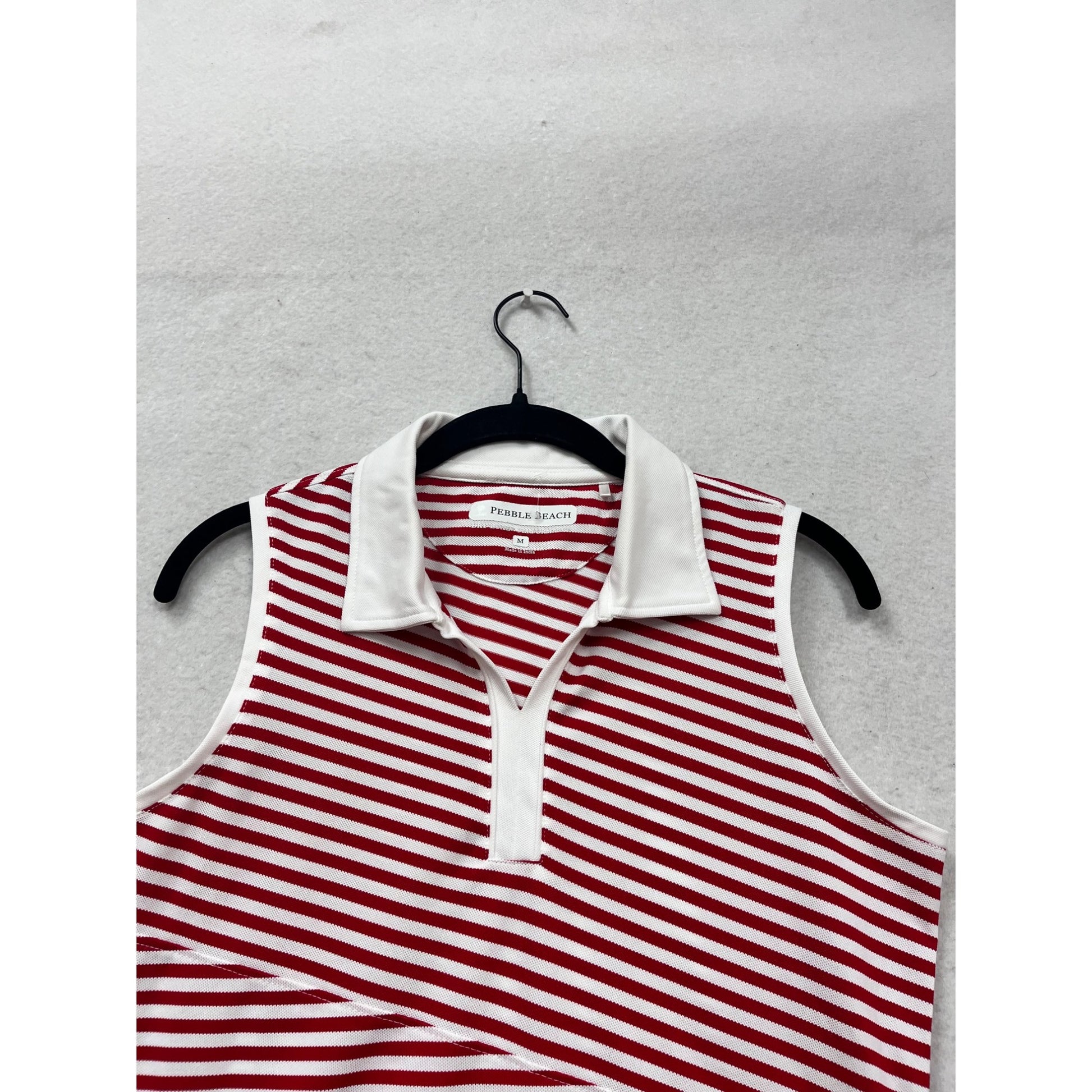 Pebble Beach Red & White Striped Sleeveless Polo Shirt M #337A