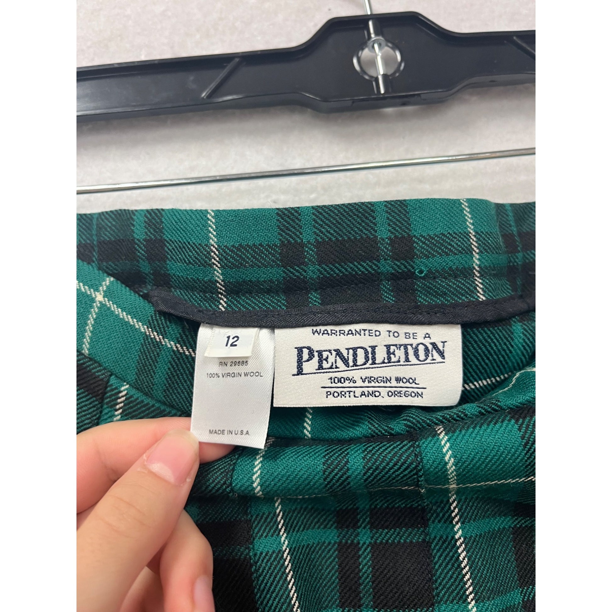 Pendleton Green Plaid Wool Skirt Size 12 #673A