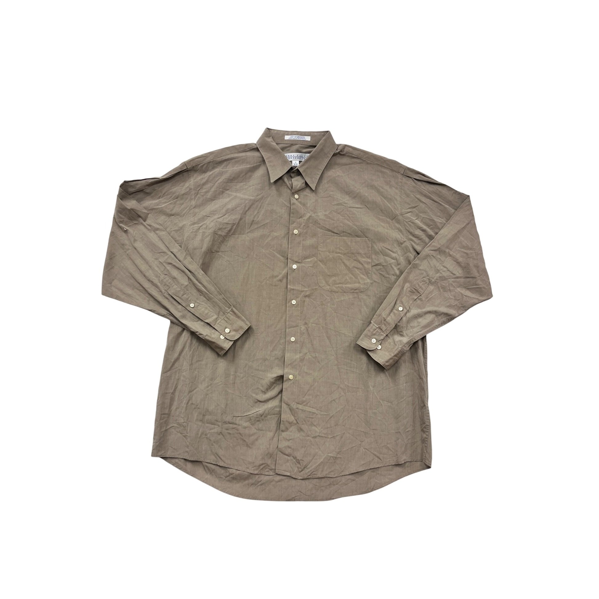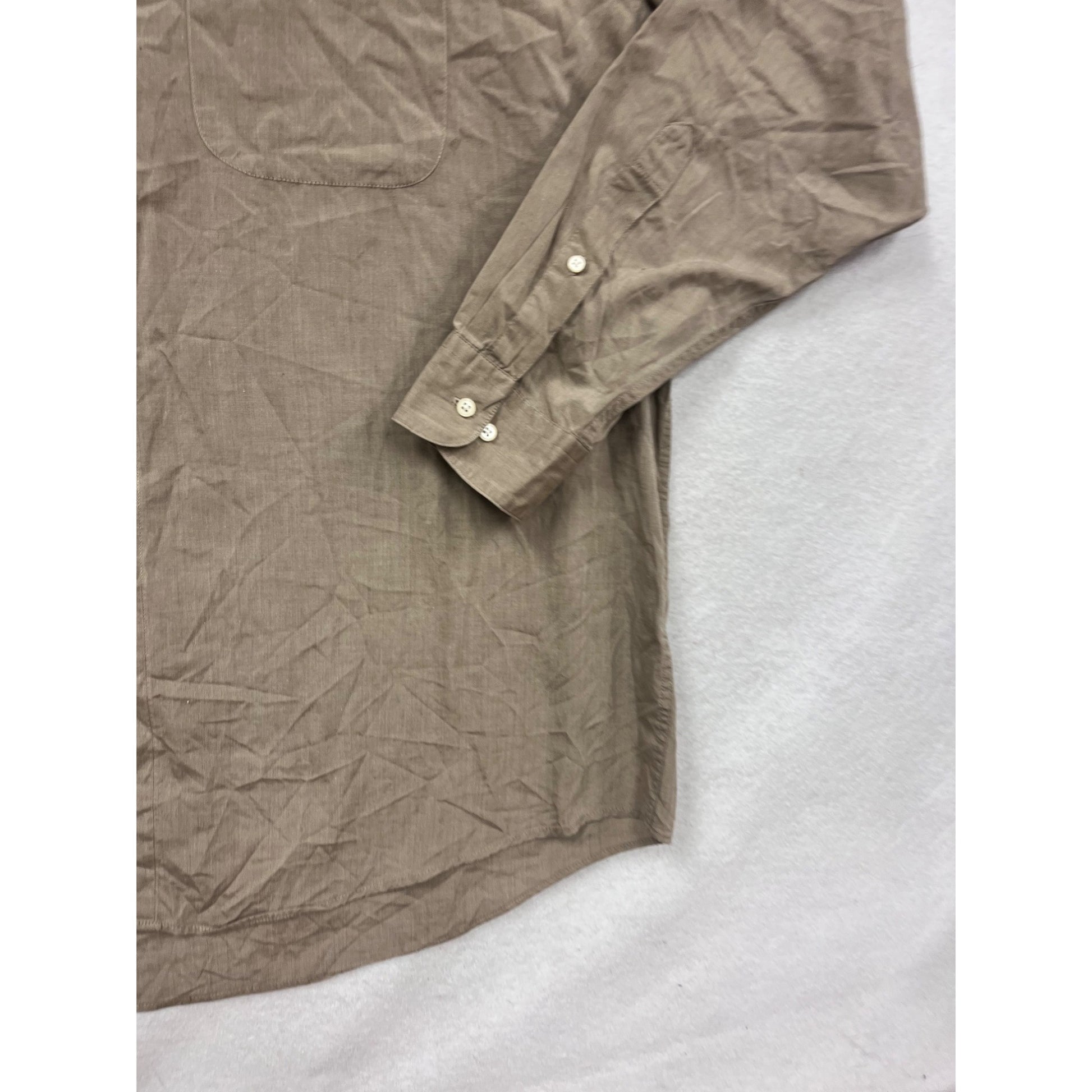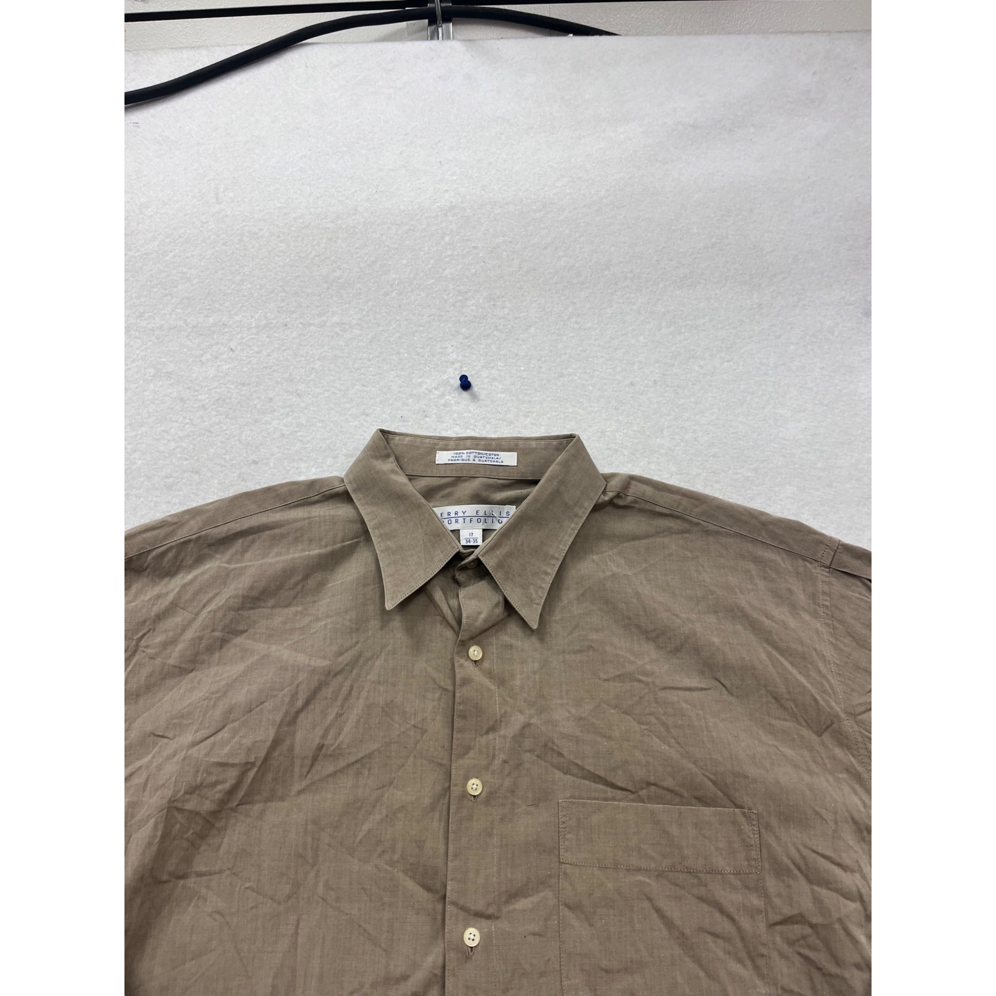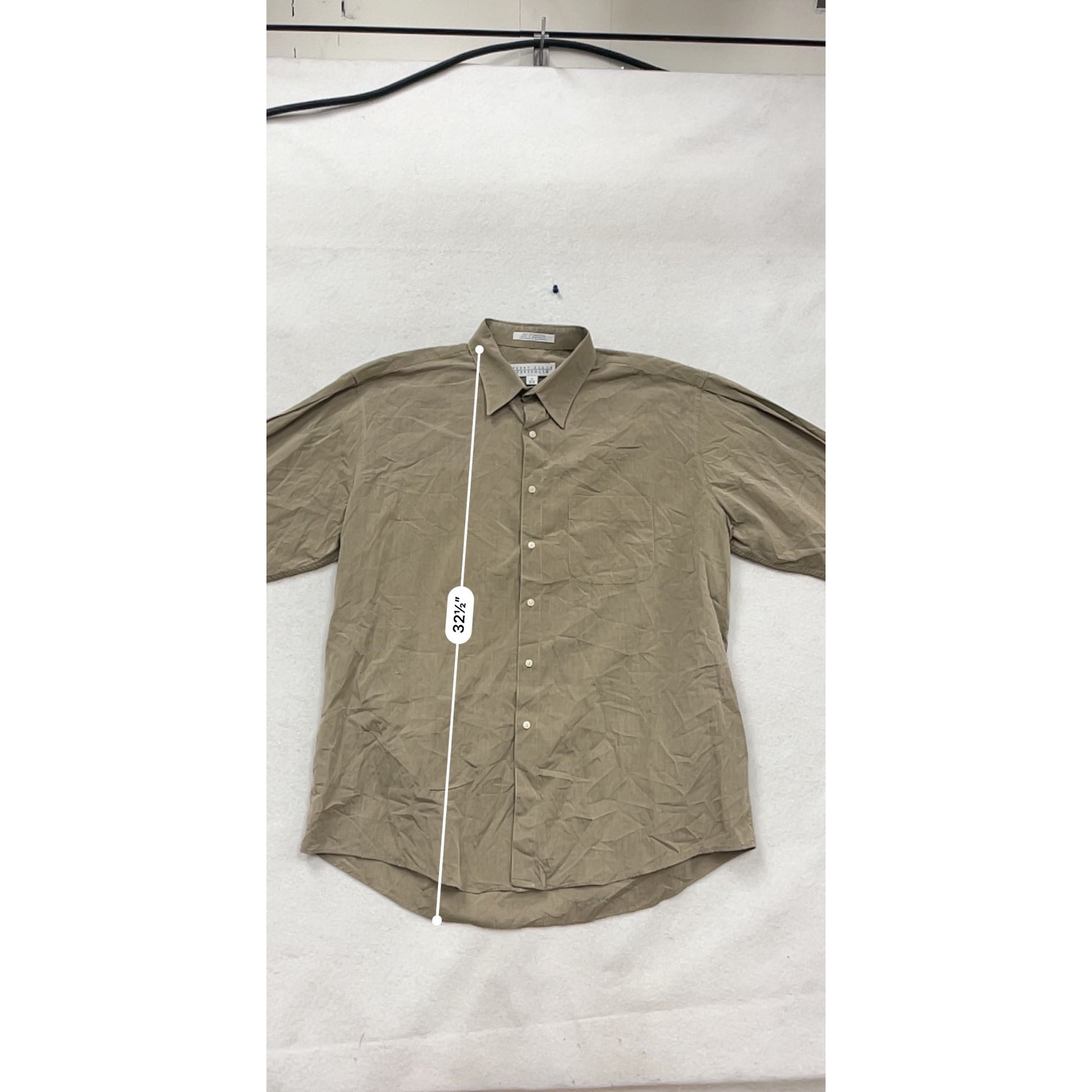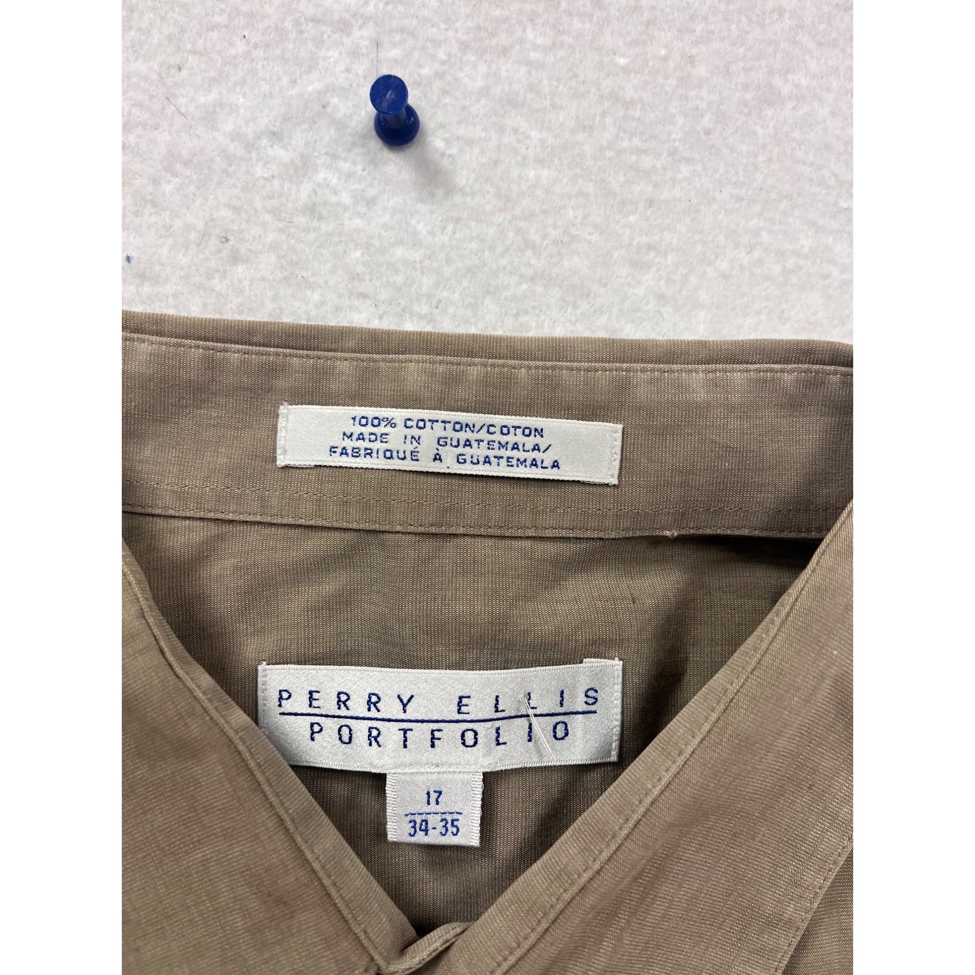 Perry Ellis Portfolio Button-Up Shirt 17 34-35 Cotton Taupe #846A