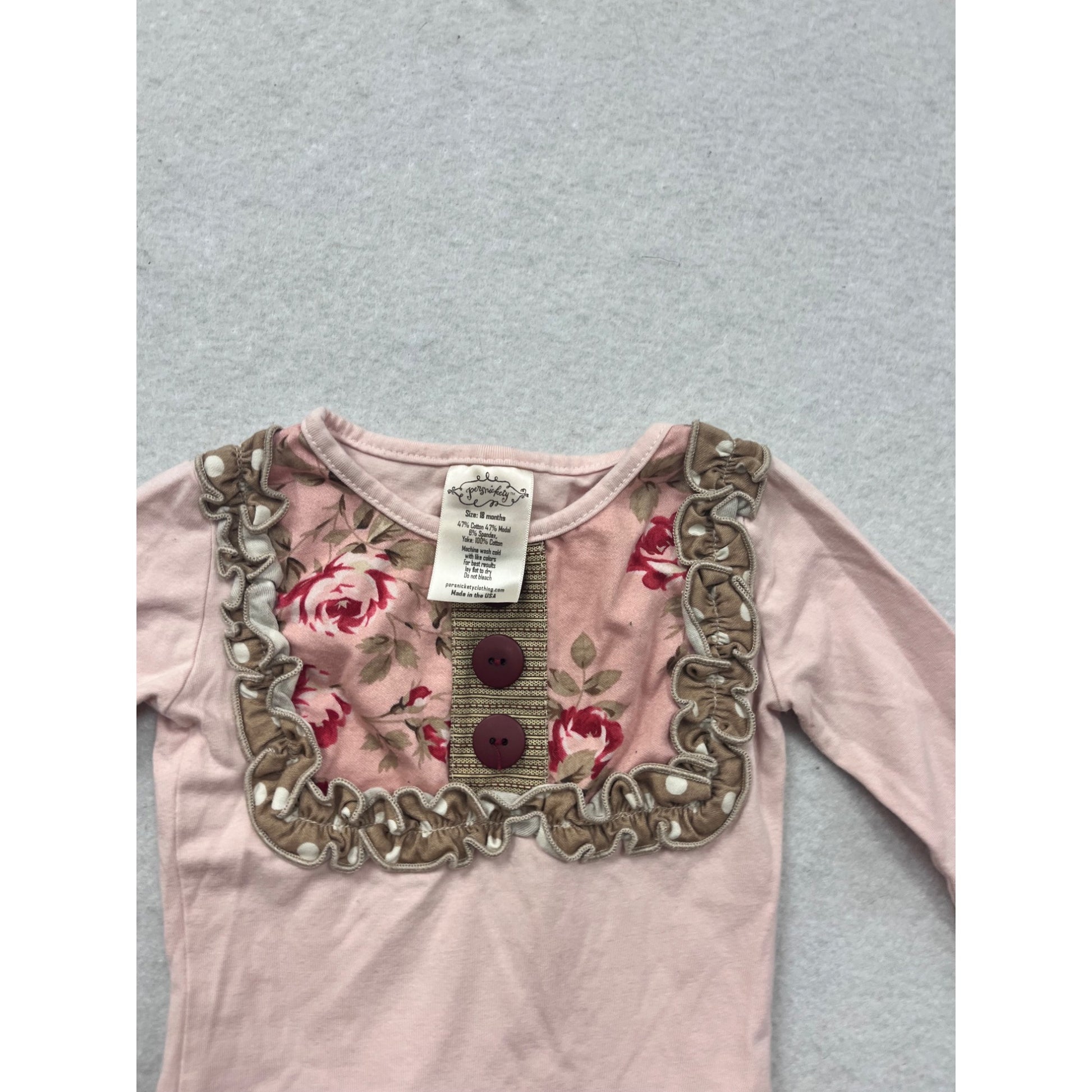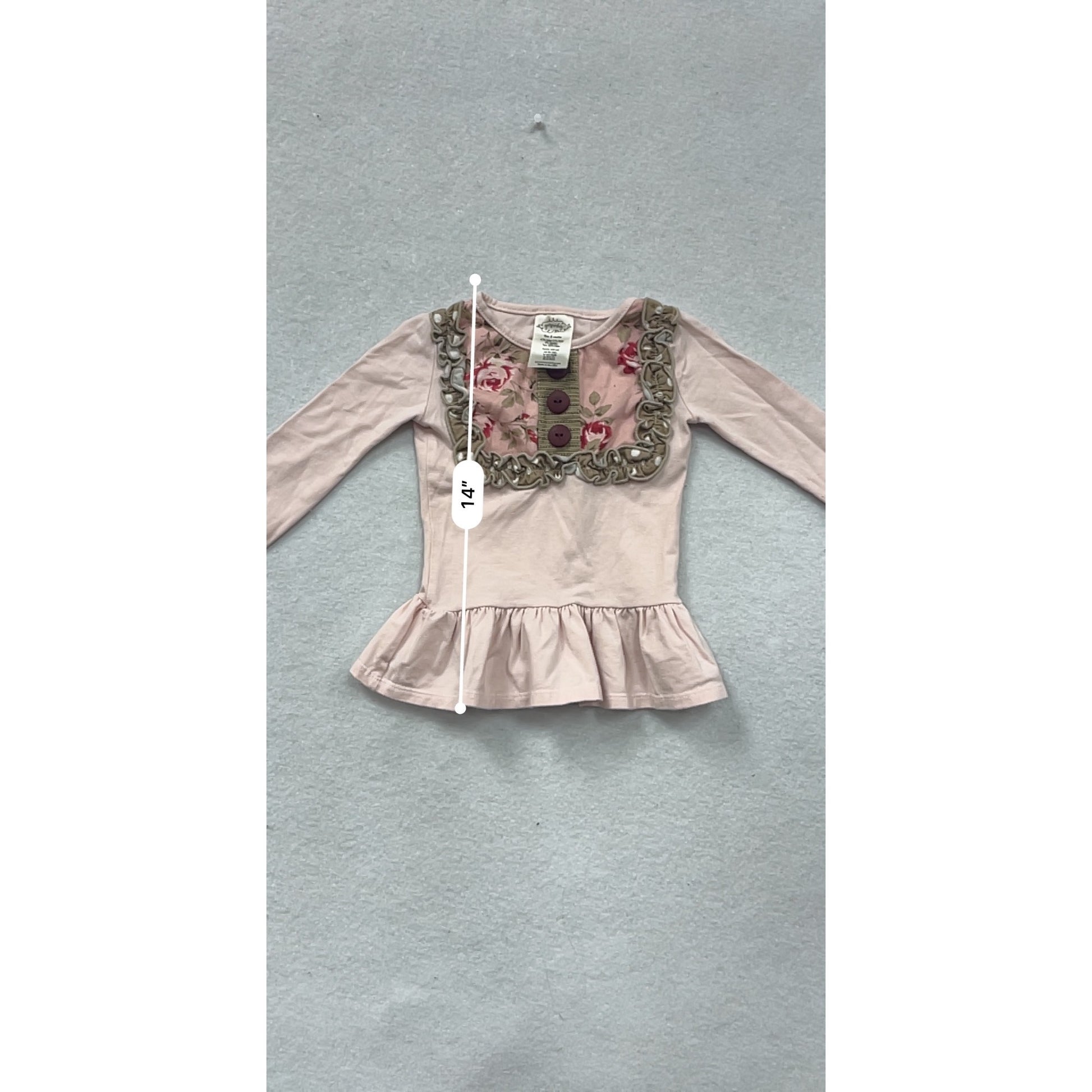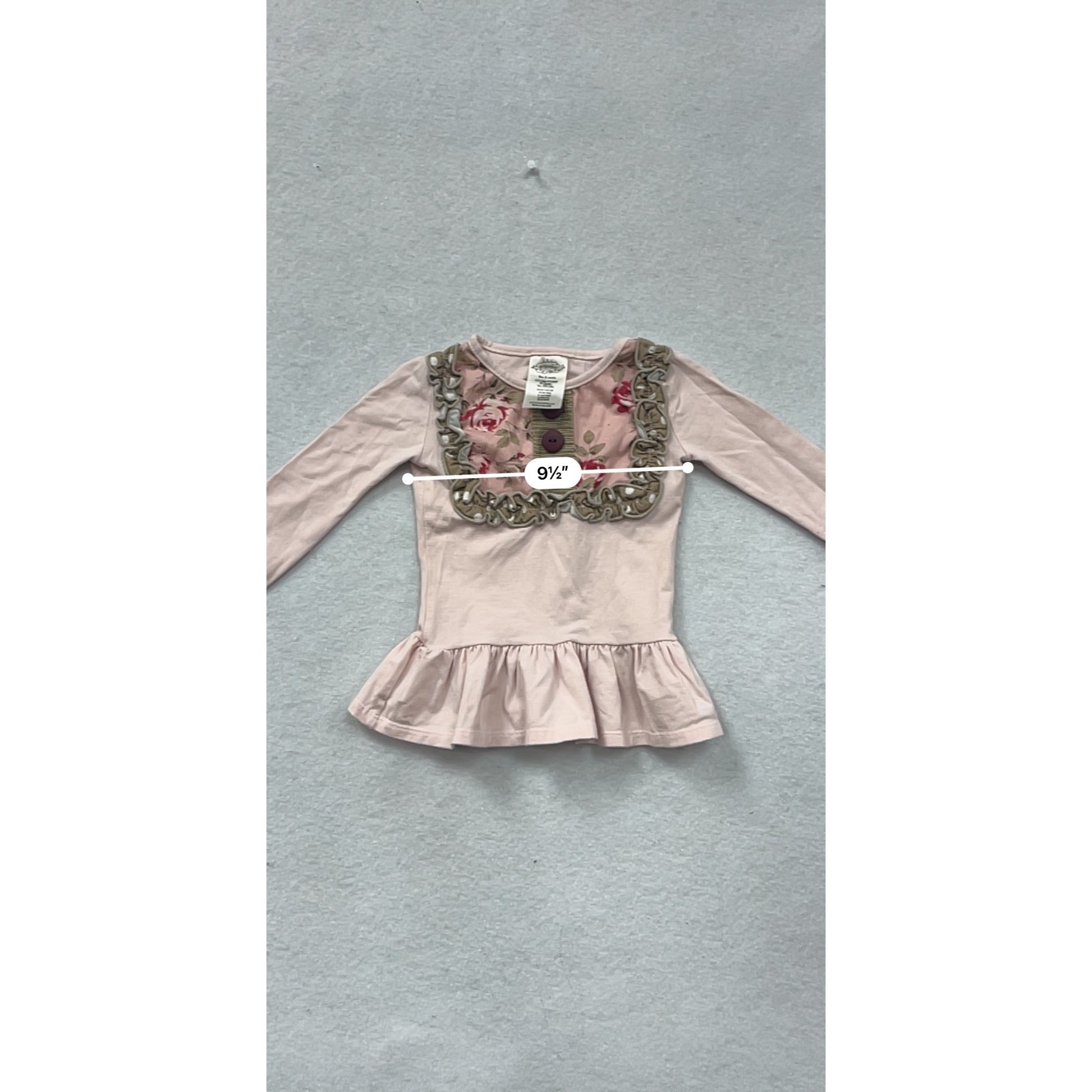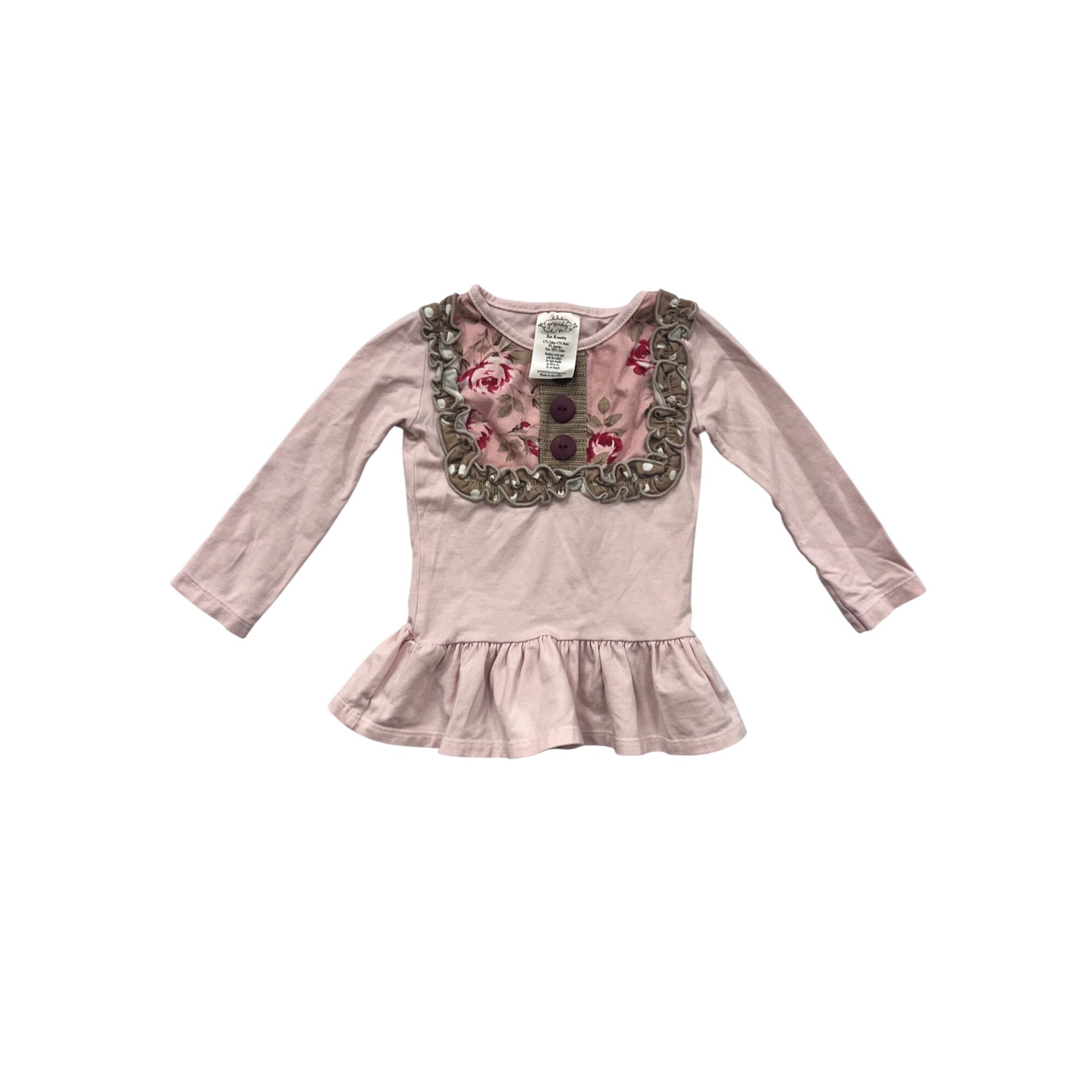 Persnickety Baby Ruffled Peplum Long-Sleeve Top With Floral Detail & Buttons #8601
