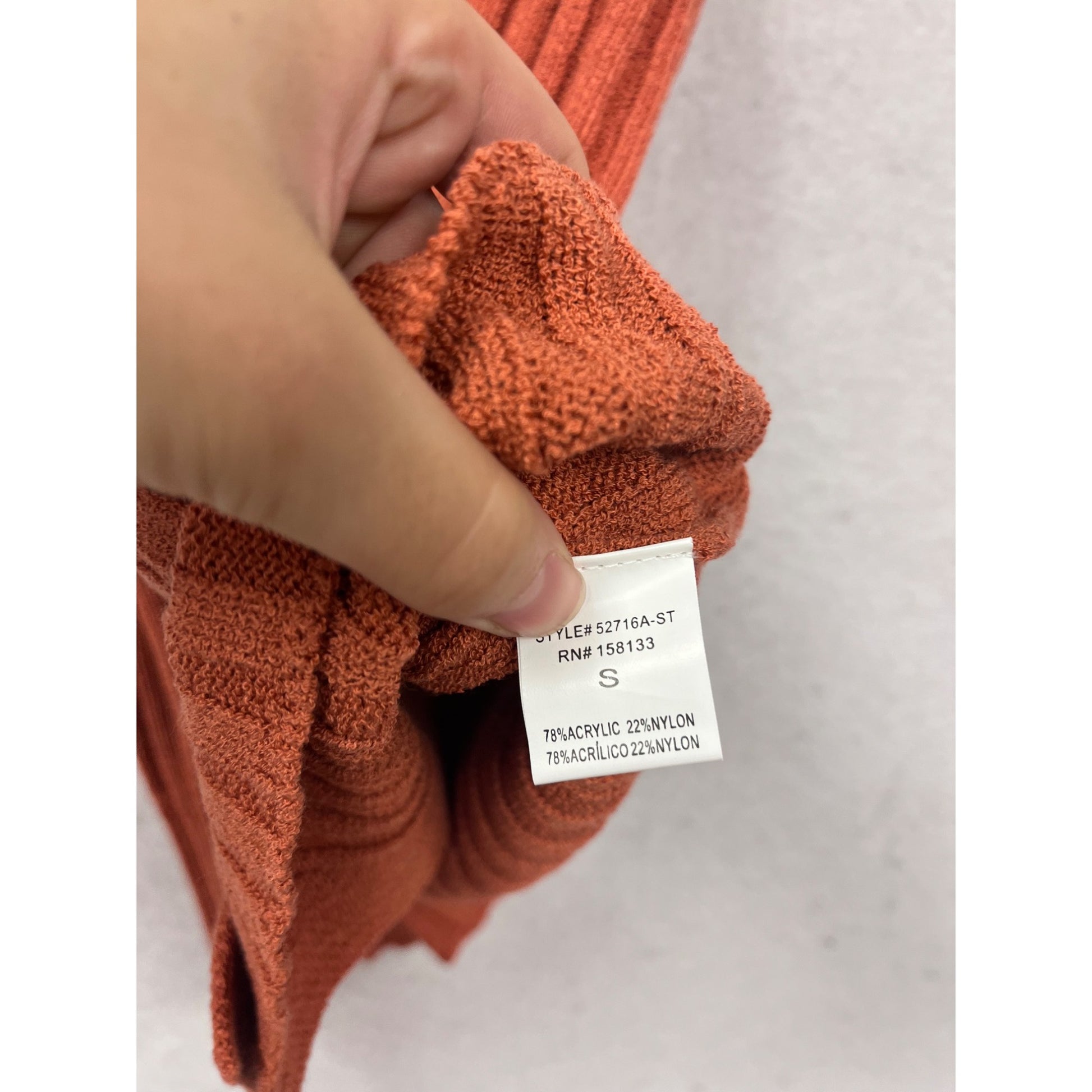 This Pink Clover tank top features a classic ribbed knit design complemented by a button-front detail. Its soft, stretchy fabric ensures a comfortable fit, making it suitable for various casual settings. With a rich terracotta shade, it adds a touch of warmth to any outfit.