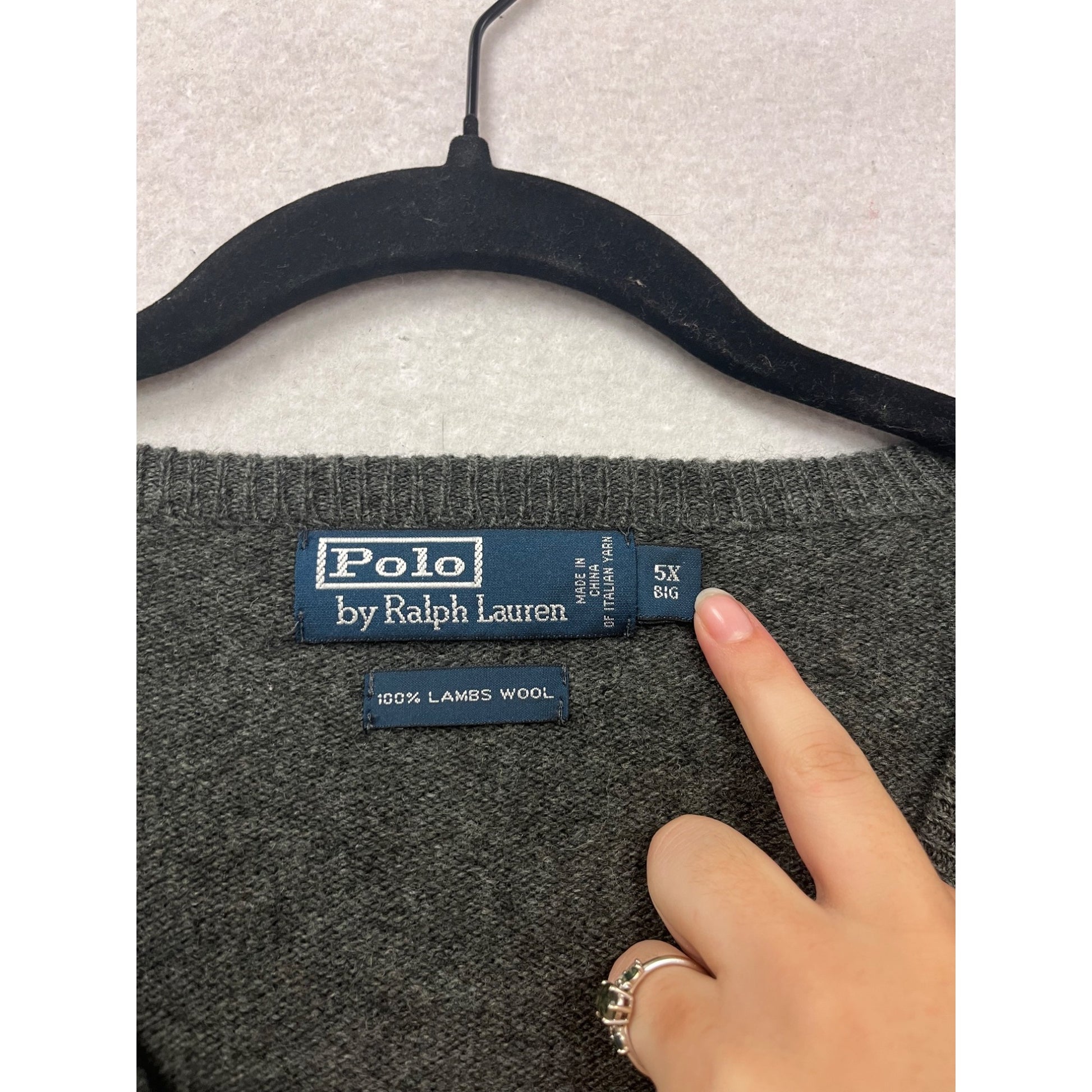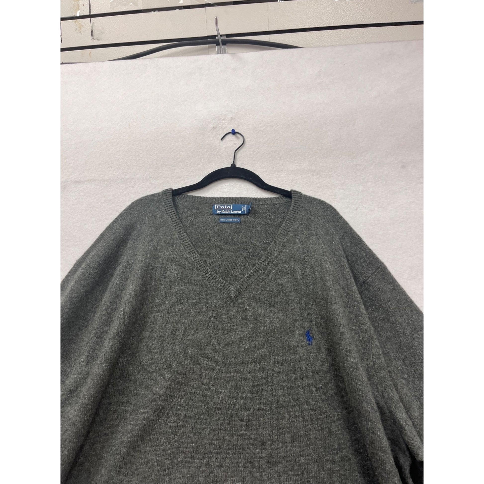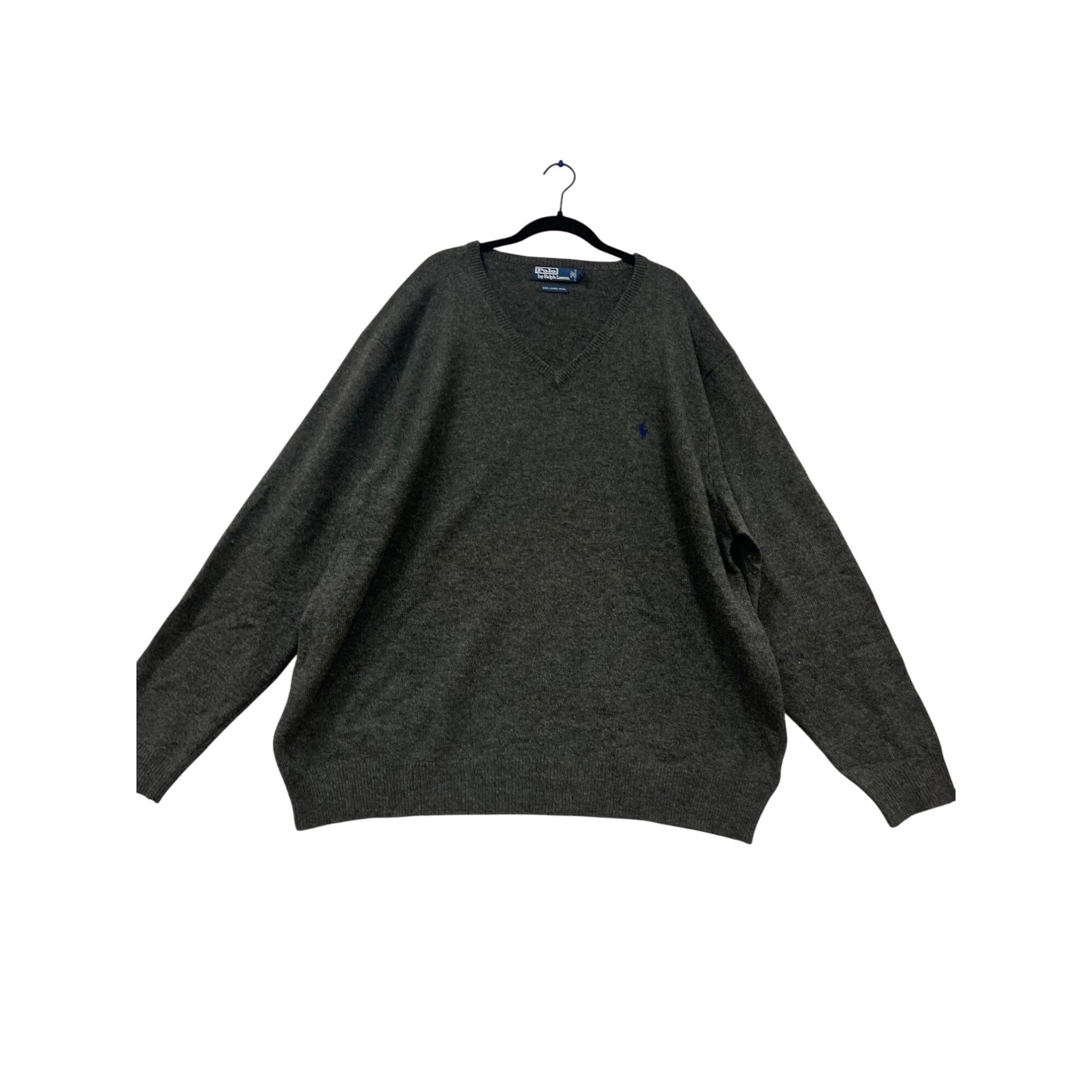 Embrace the Y2K vibe with this Polo Ralph Lauren V-neck sweater. Crafted from 100% lambswool, it offers warmth and comfort for those chilly days. The charcoal grey shade adds a sleek touch to your look, while the 5X size ensures a relaxed fit.