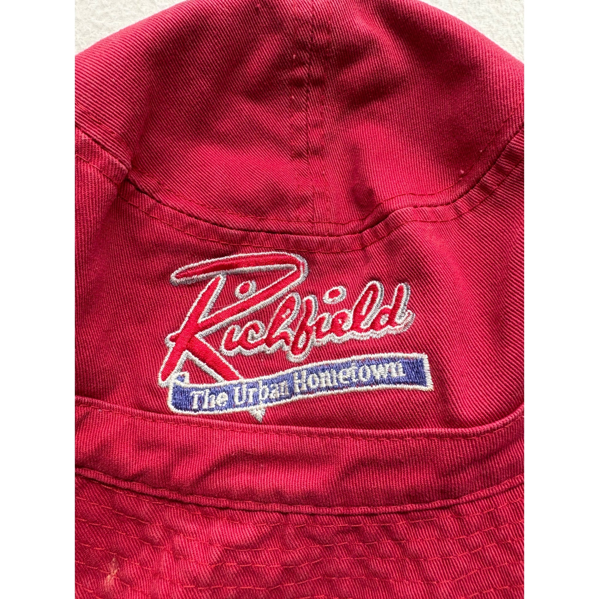 This vibrant red bucket hat features the embroidered "Richfield" logo and offers a stylish, laid-back vibe. Comfortable cotton material and ideal for casual outings.