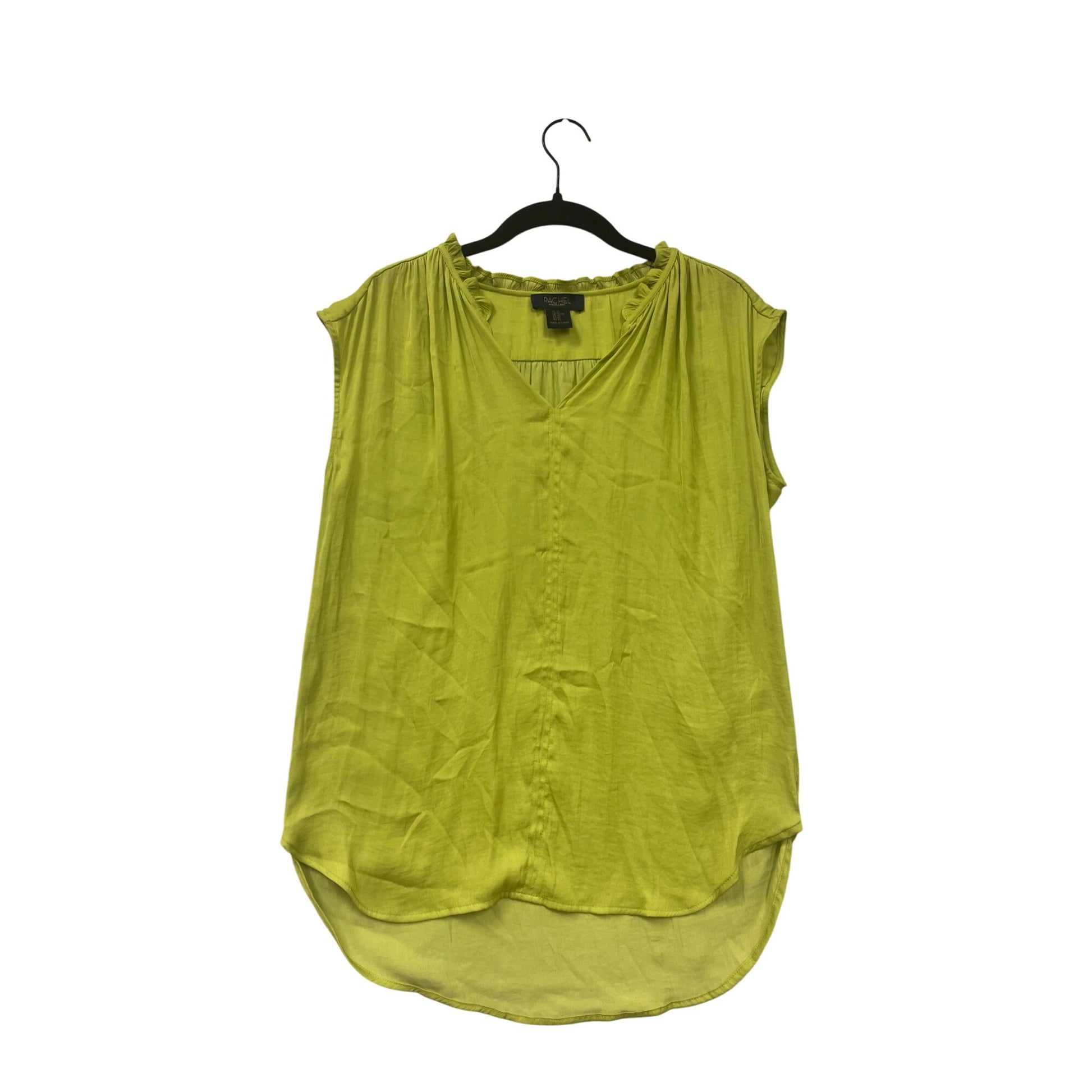 Rachel Lime Green Sleeveless Blouse With V-Neck & Ruffle Trim Womens XS #6822
