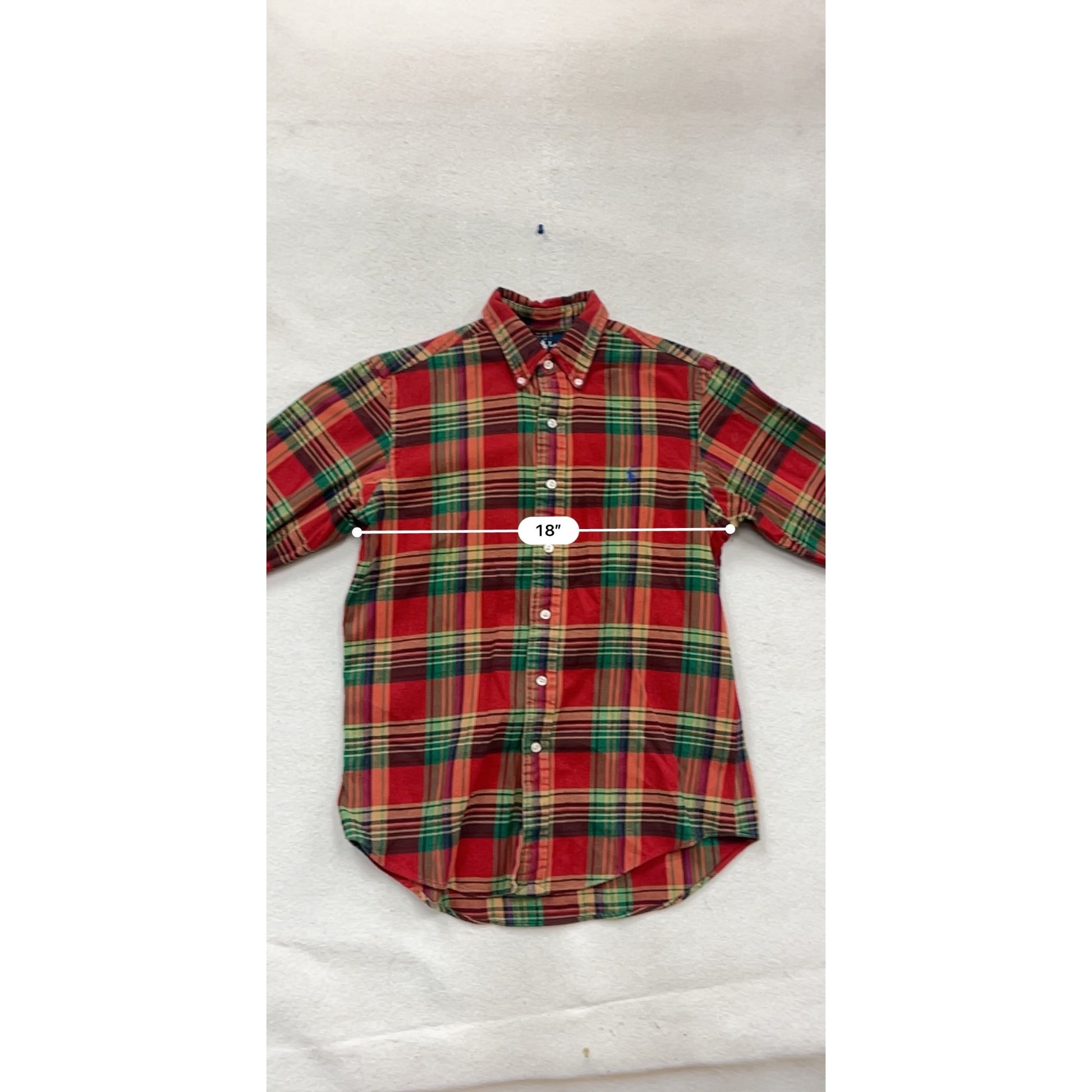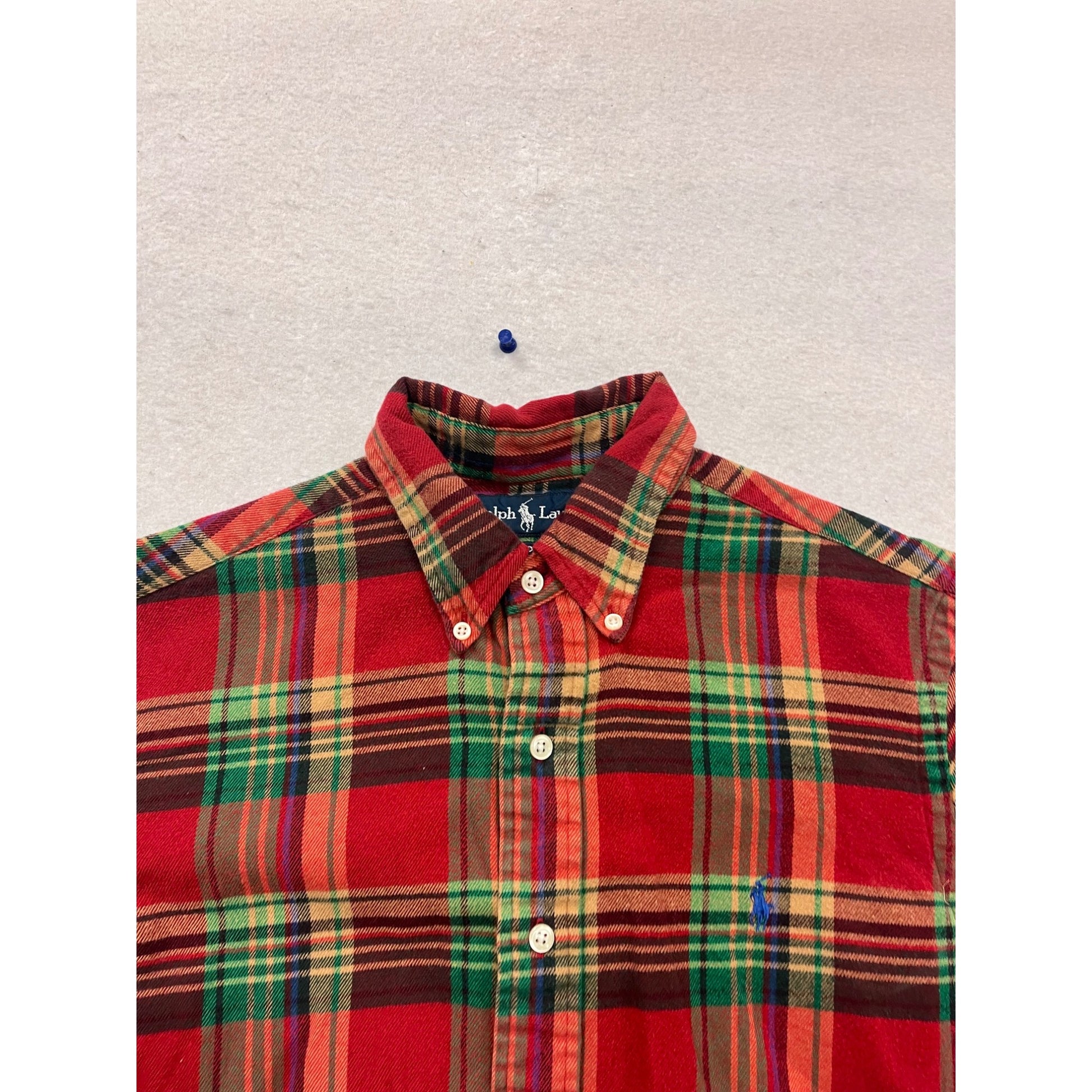 Ralph Lauren Red Plaid Flannel Button-Down Casual Shirt M #933A