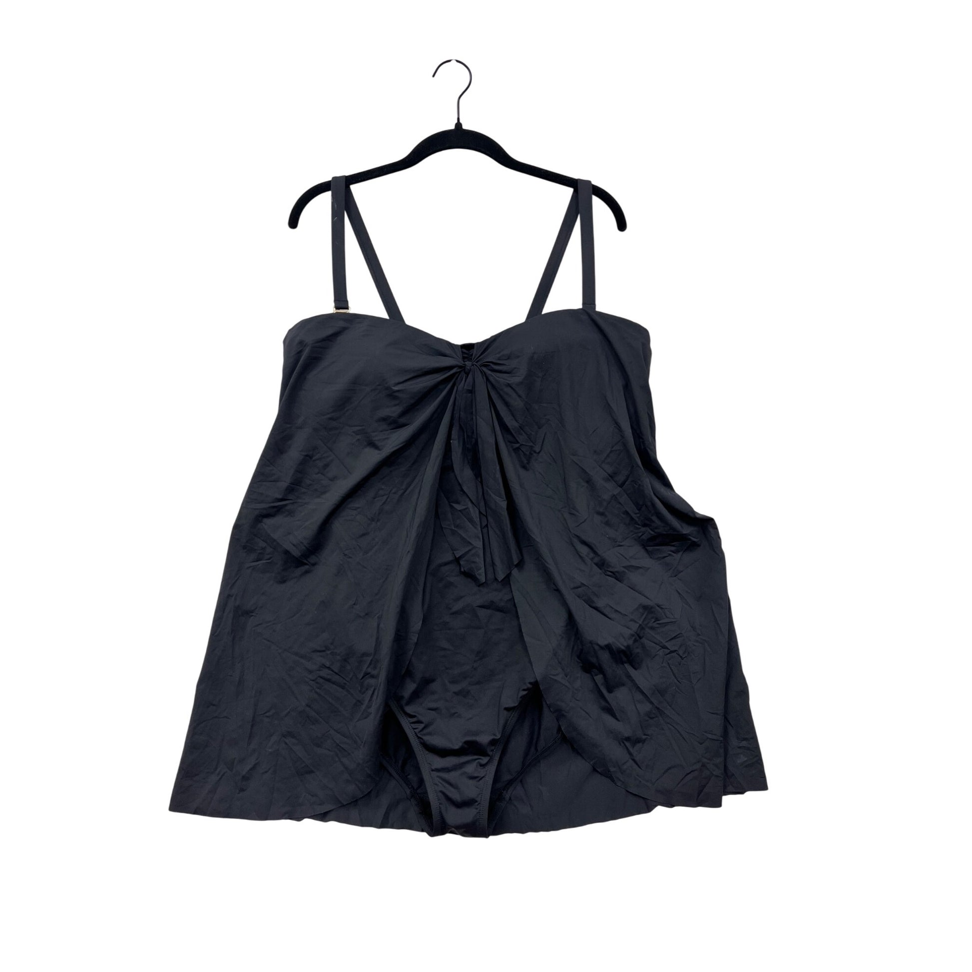 This black swim dress combines a flattering silhouette with practical features for comfortable wear. Adjustable straps and built-in bottoms enhance the fit.
