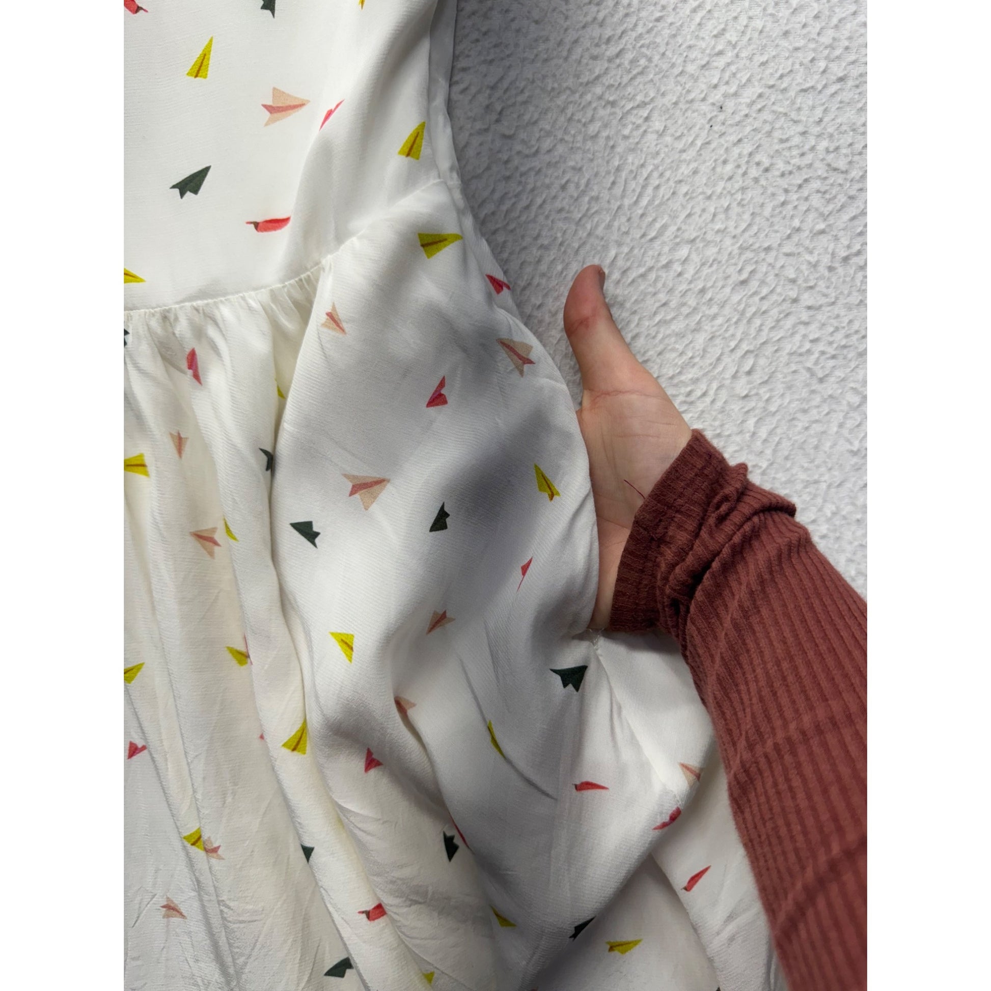 This elegant Rebecca Minkoff dress features a vibrant multicolor print on a classic white base, perfect for adding a splash of color to your wardrobe. The flattering V-neck design and flowy silhouette make it versatile for various settings. Made with quality polyester, it ensures comfort and durability.