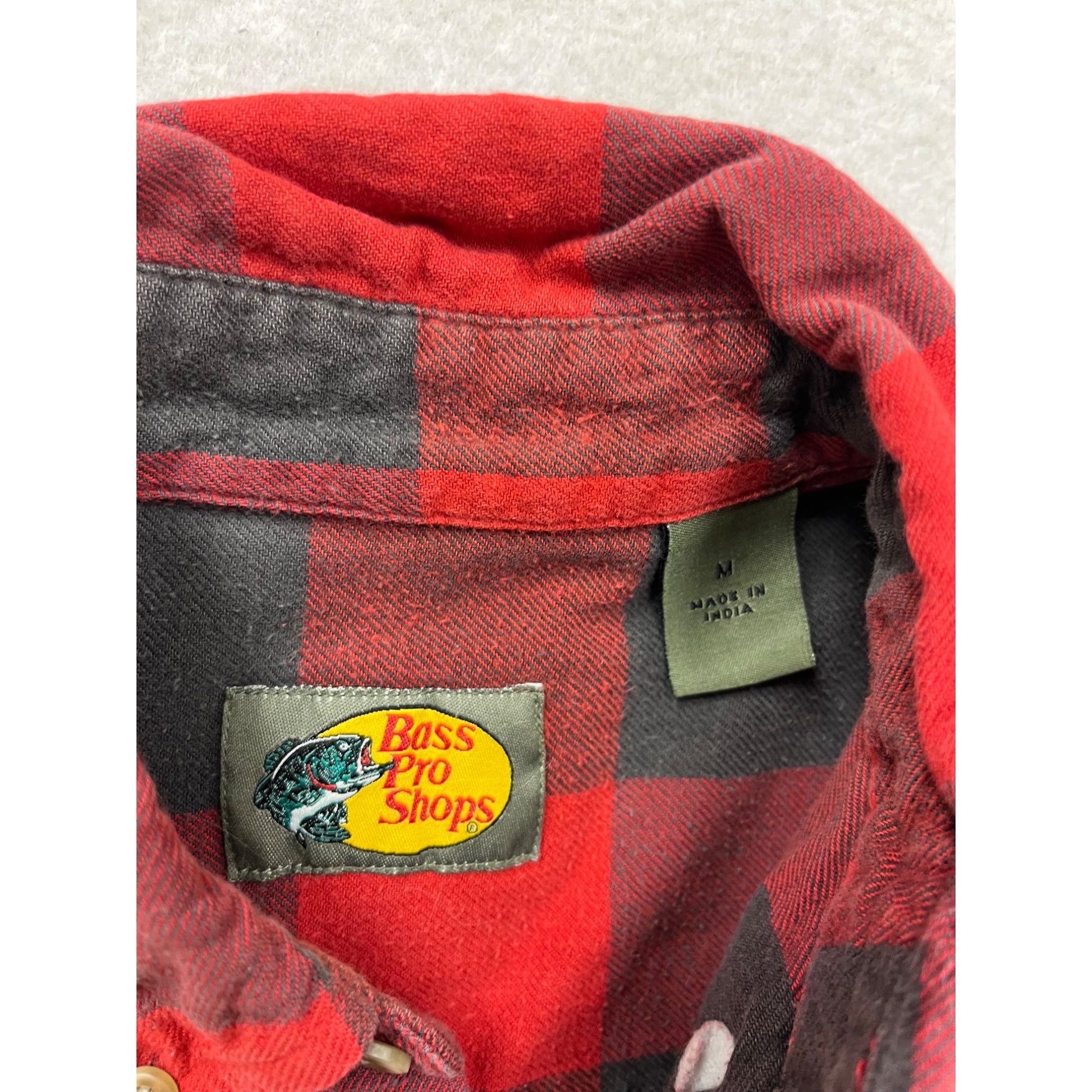 Red & Black Buffalo Plaid Button-Up Shirt By Bass Pro Shops Long Sleeve #8780