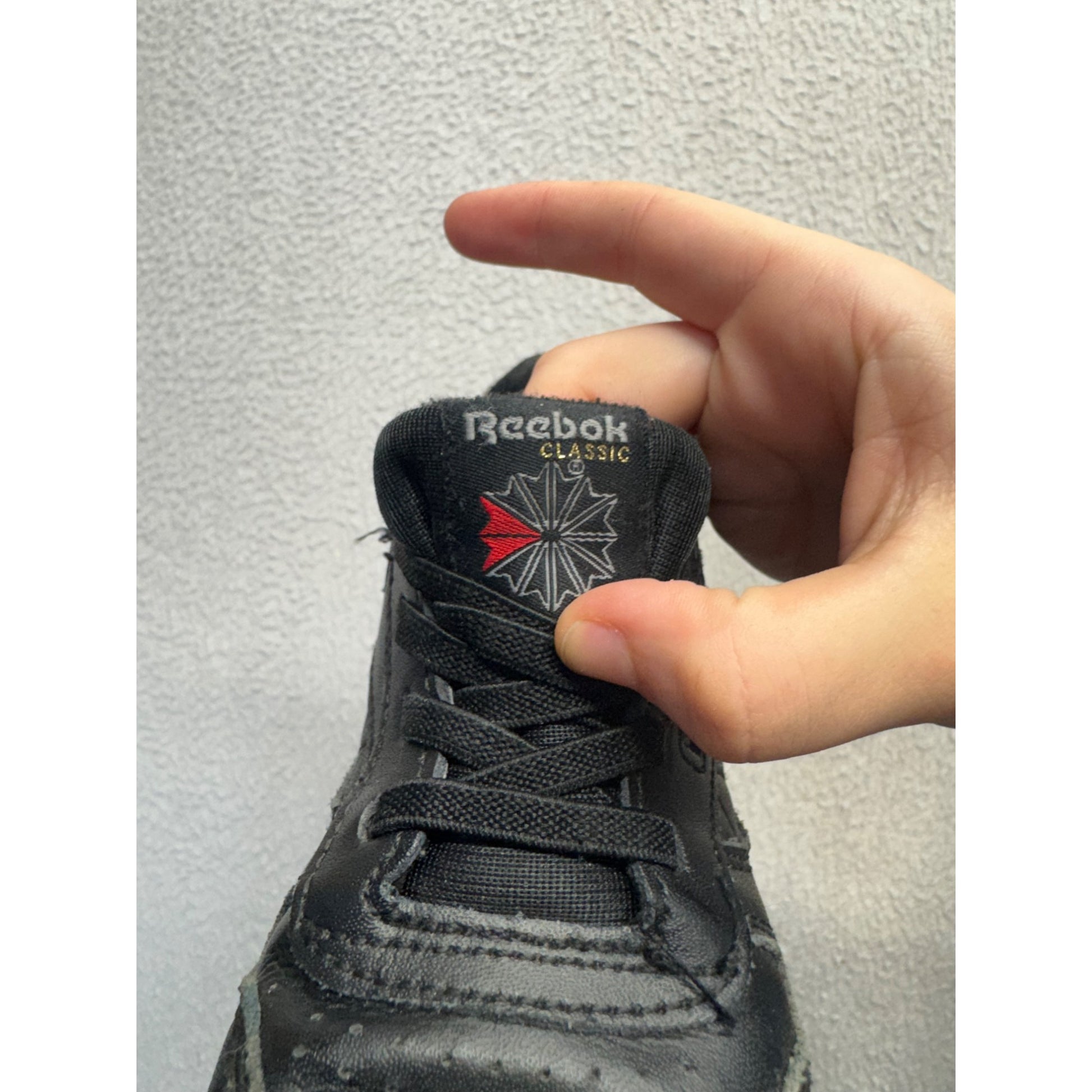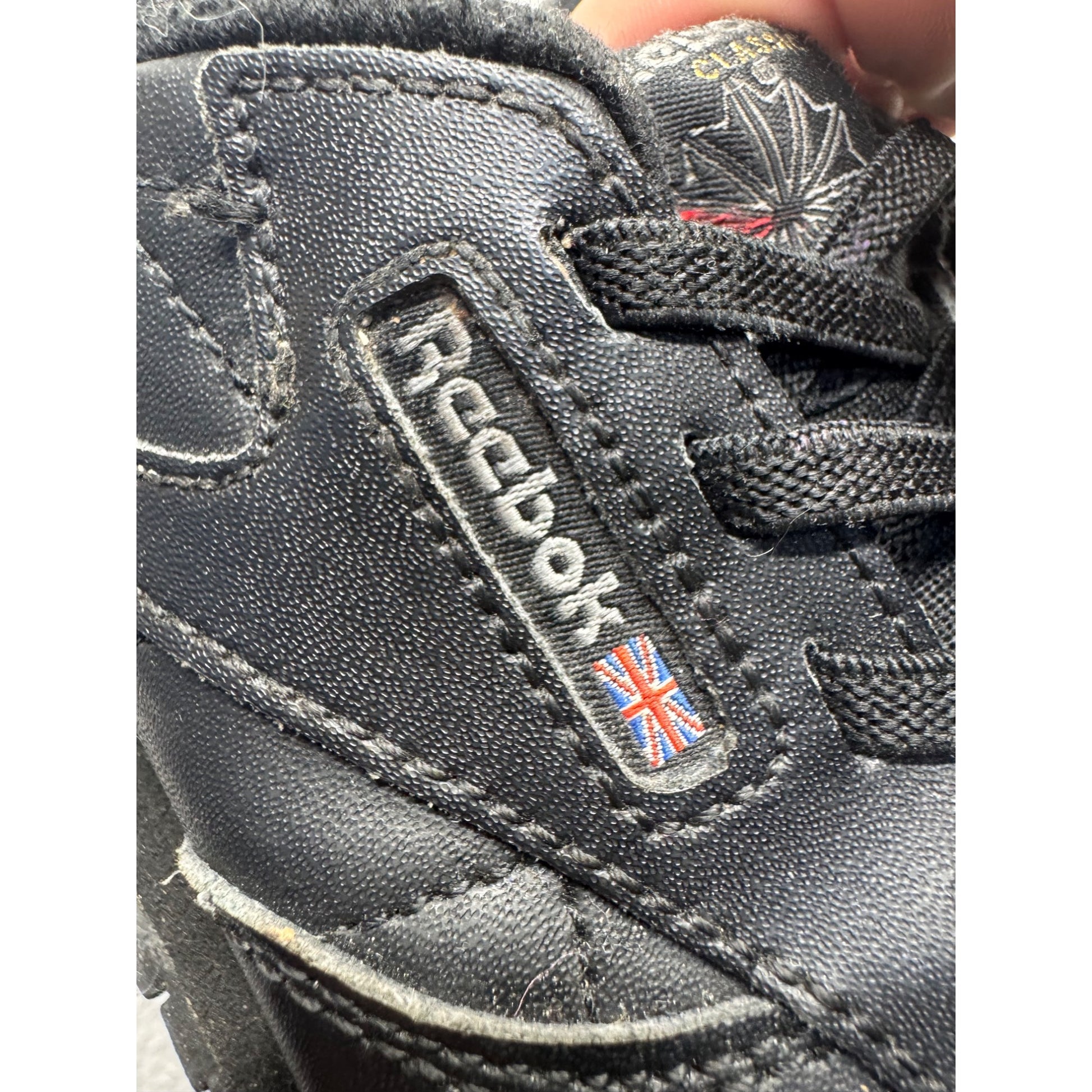 Crafted for durability and comfort, these Reebok Classic sneakers feature a sleek black leather design with robust soles, ideal for everyday wear.
