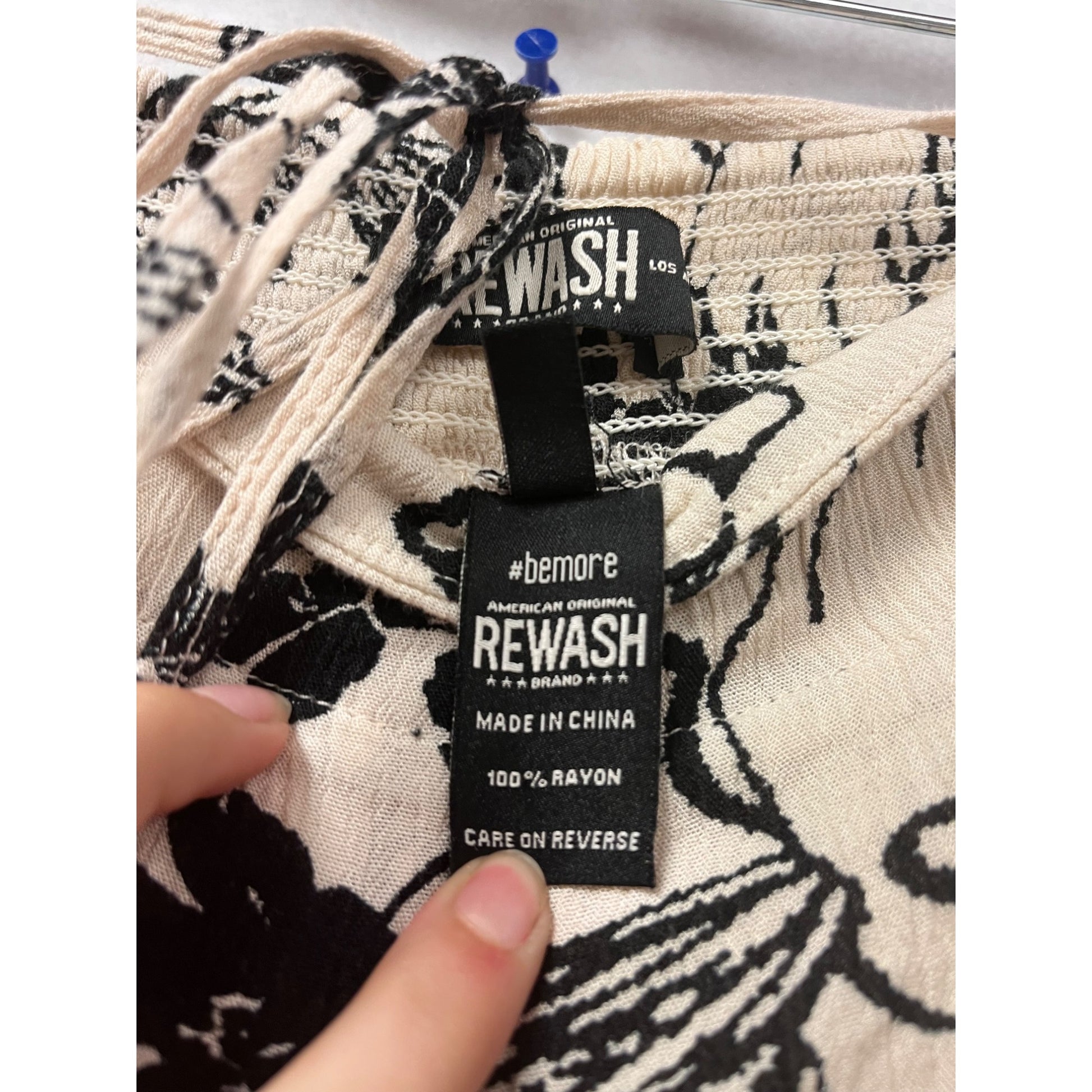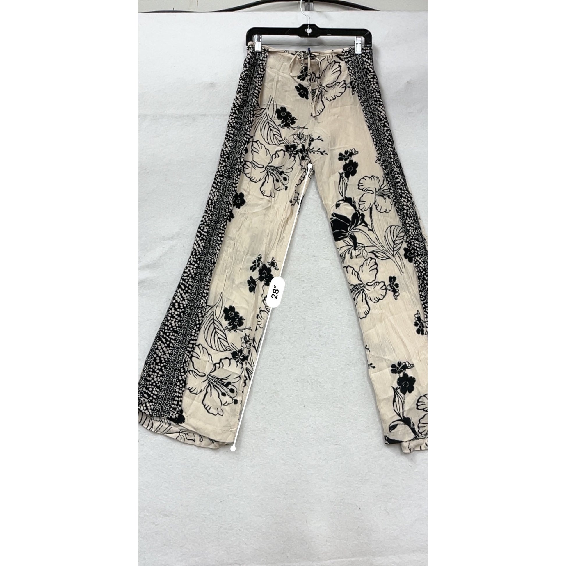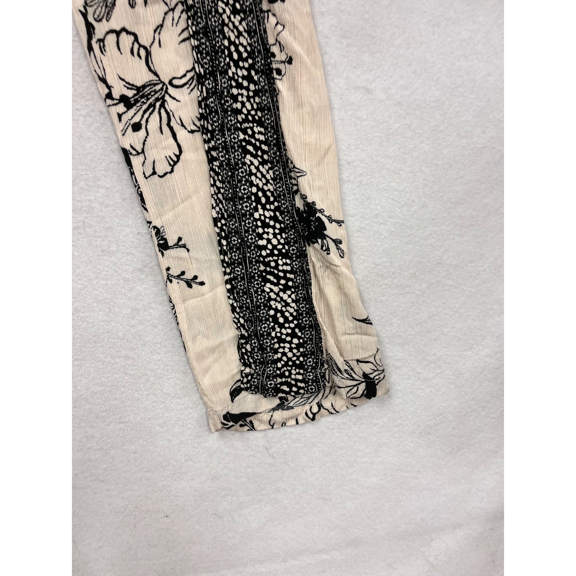 These stylish pants by Rewash, crafted from 100% rayon, feature a striking floral pattern in shades of black on a beige background. Designed for comfort and elegance, they are ideal for a professional yet casual look, offering a relaxed fit and versatile style for various settings.