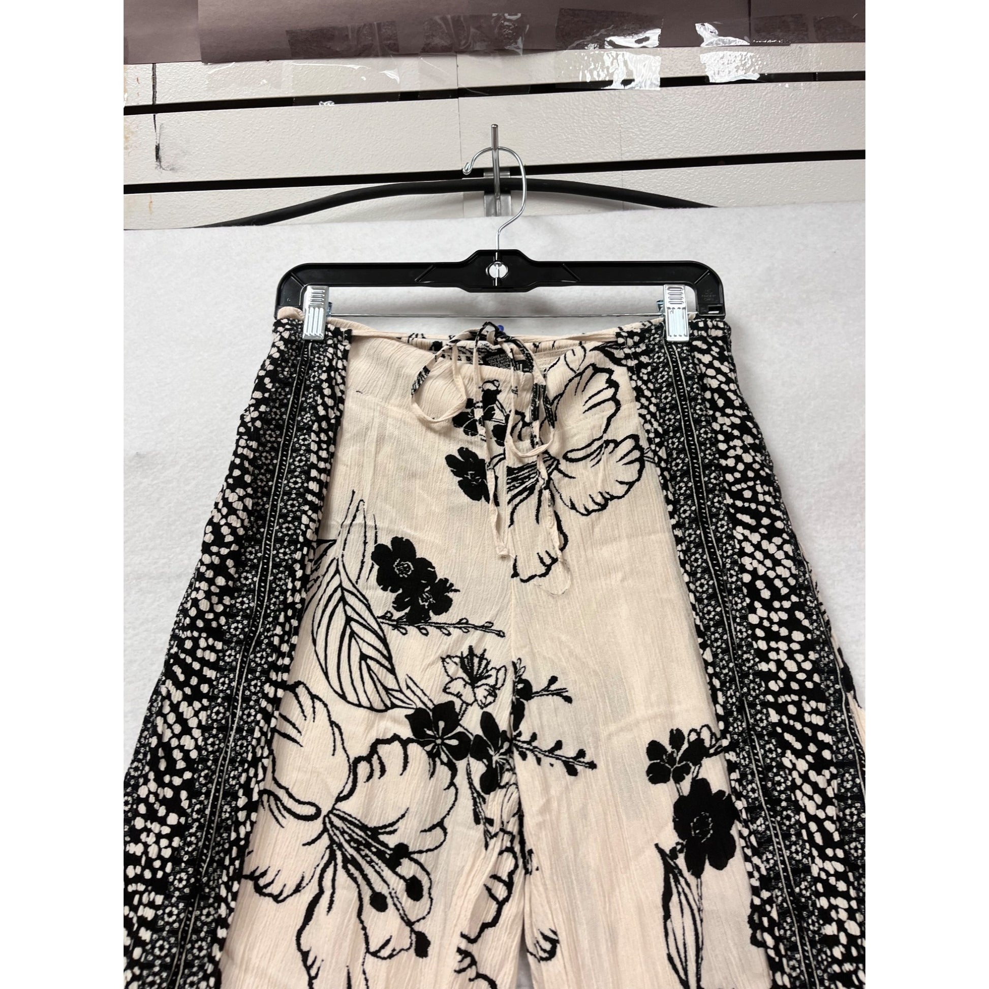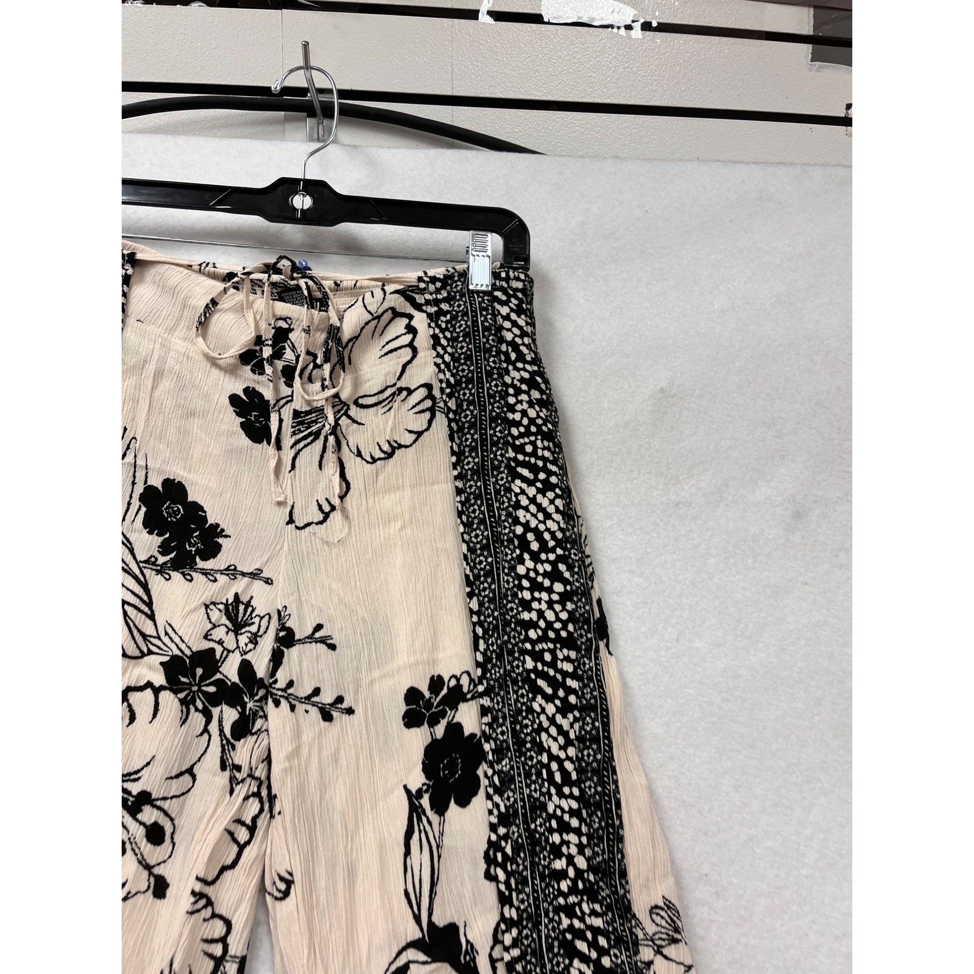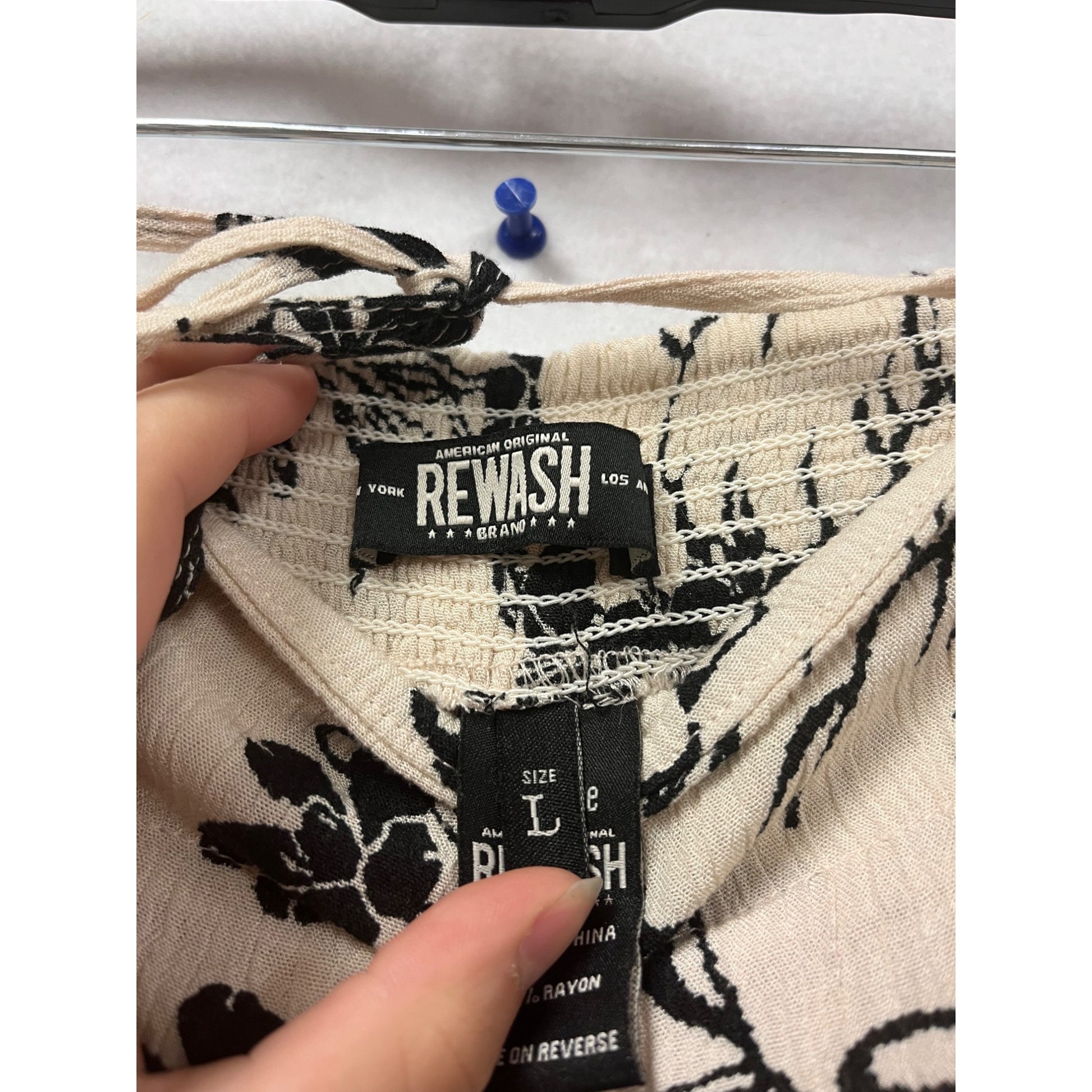 These stylish pants by Rewash, crafted from 100% rayon, feature a striking floral pattern in shades of black on a beige background. Designed for comfort and elegance, they are ideal for a professional yet casual look, offering a relaxed fit and versatile style for various settings.
