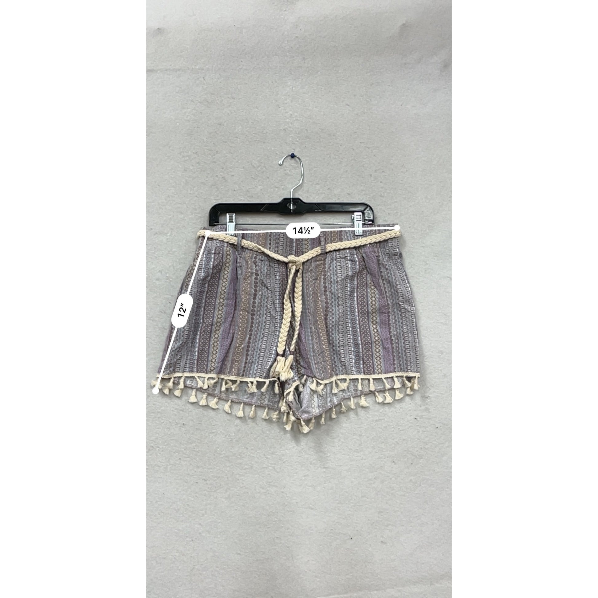 Rewash XL Linen/Rayon Tassel Hem Striped Shorts #680A