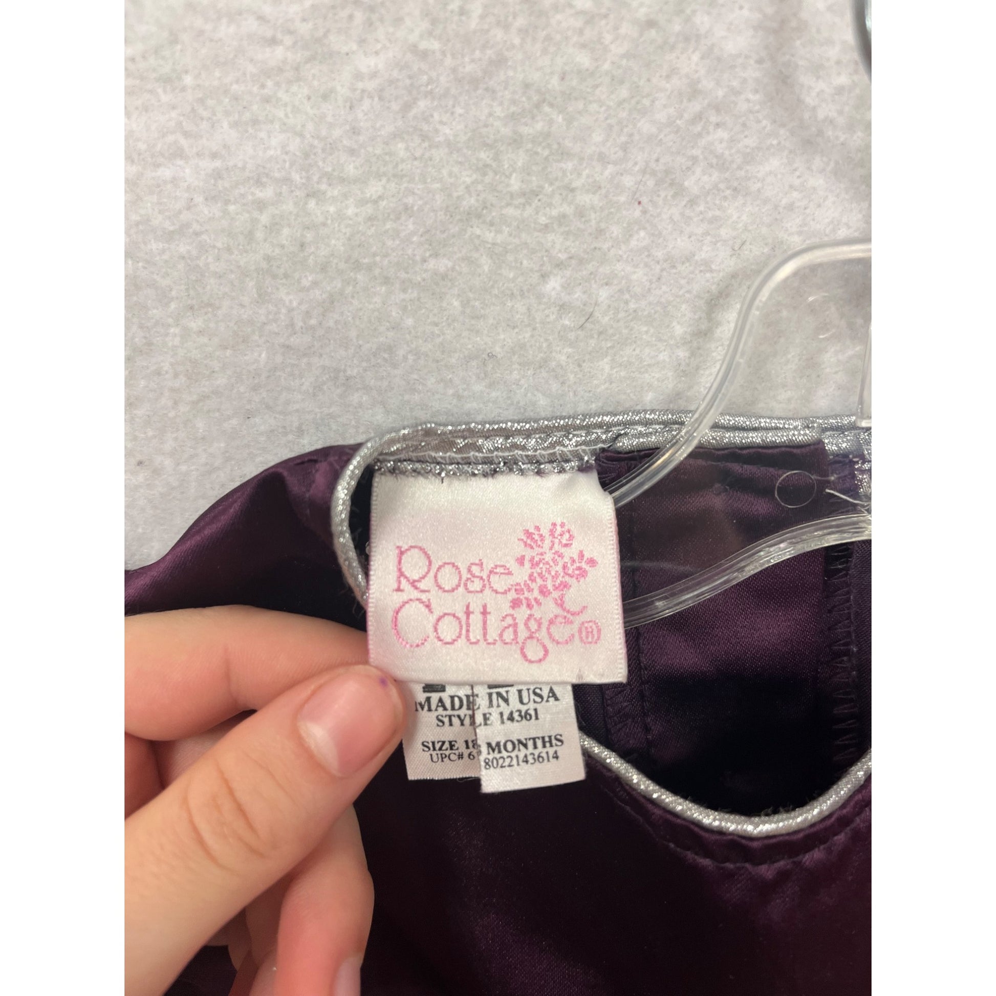 Rose Cottage Satin & Lace Dress With Silver Trim & Bow #8671