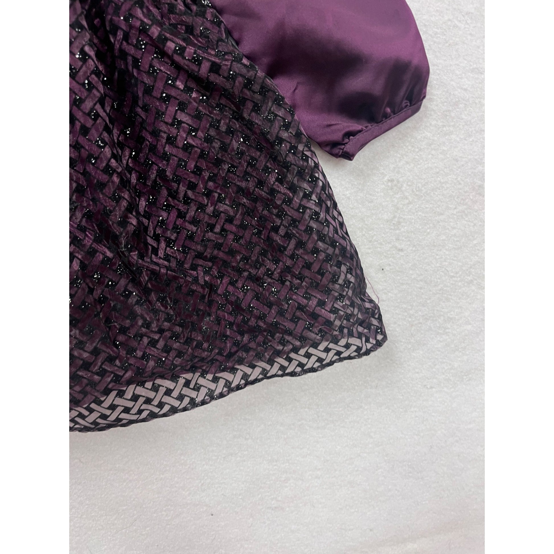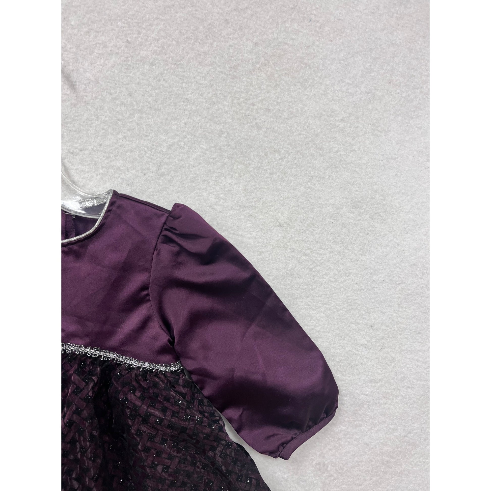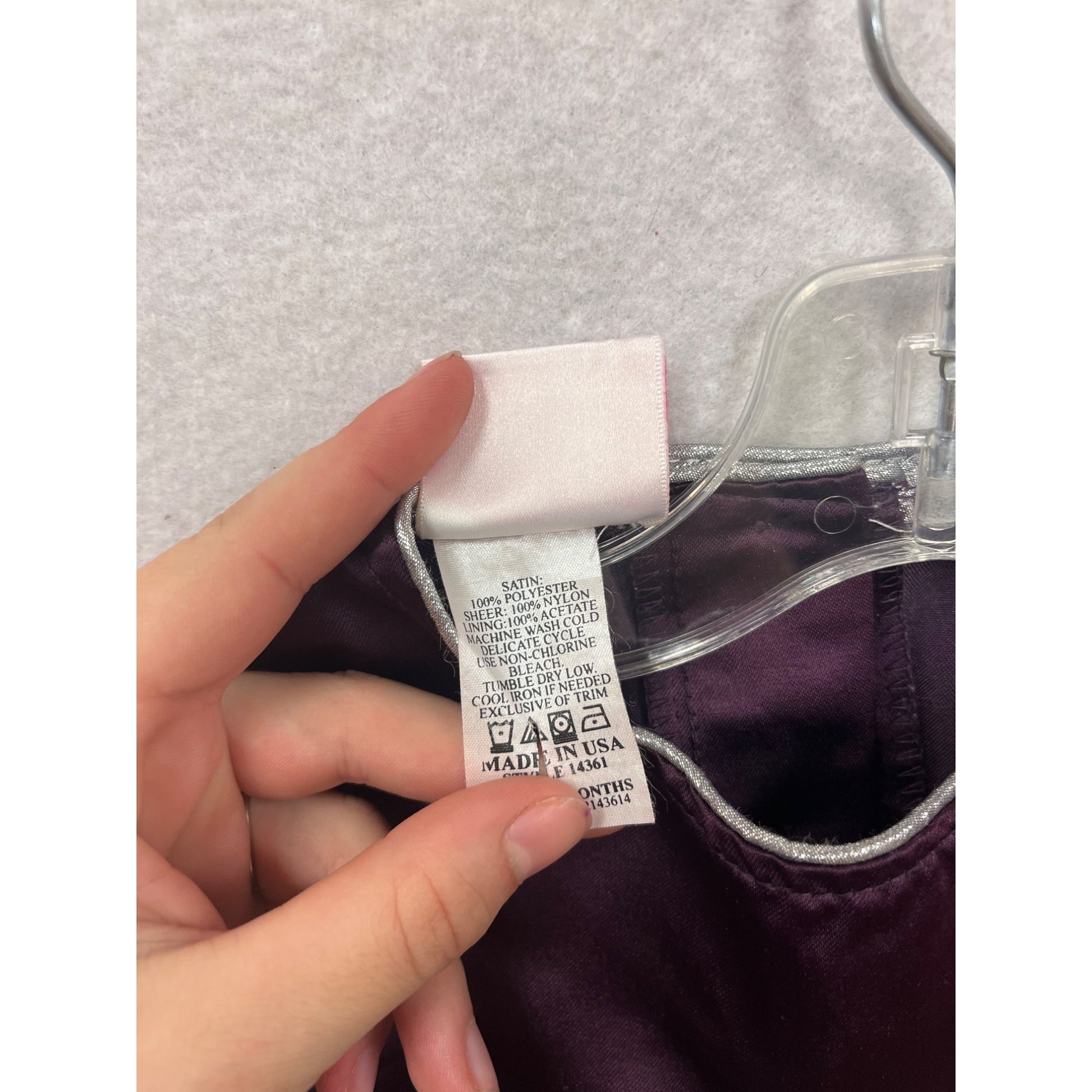 This elegant dress features a satin bodice, sparkling lace overlay, and silver trim detailing. Ideal for formal gatherings and special occasions.