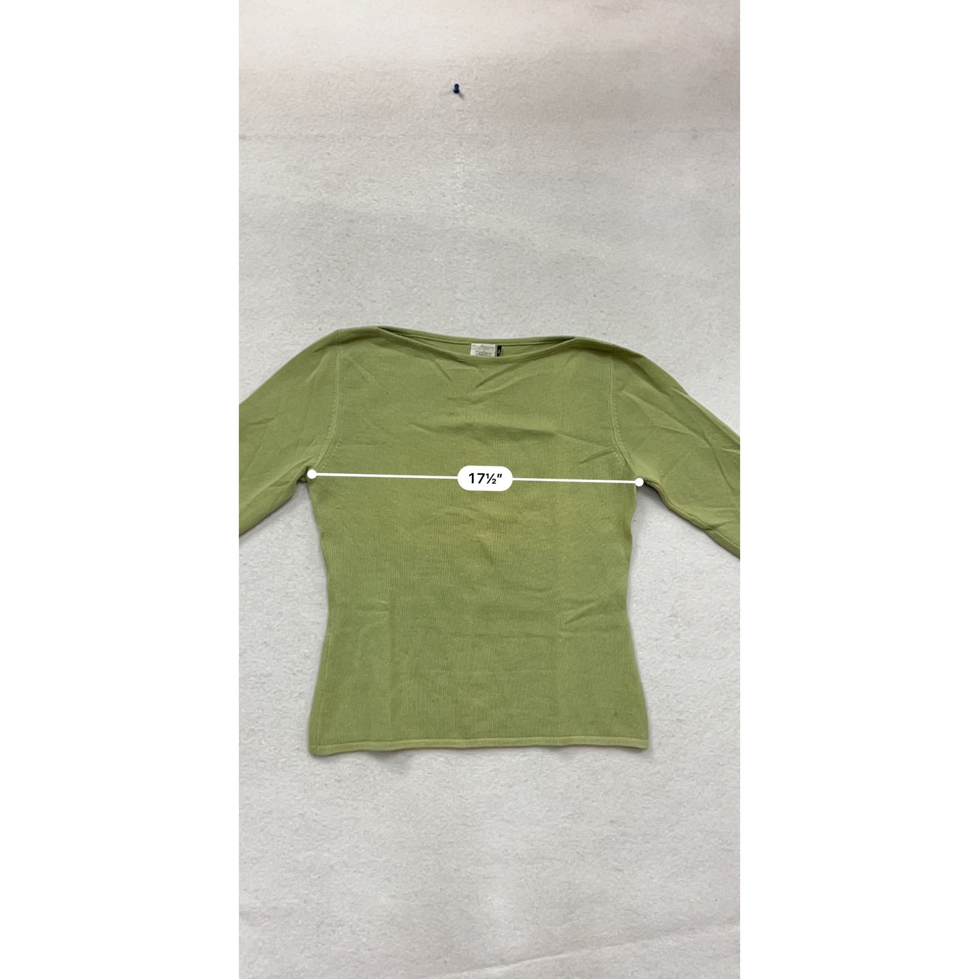 Sage Green Cashmere Long Sleeve Boat Neck Top By Cashmere Valley #941A
