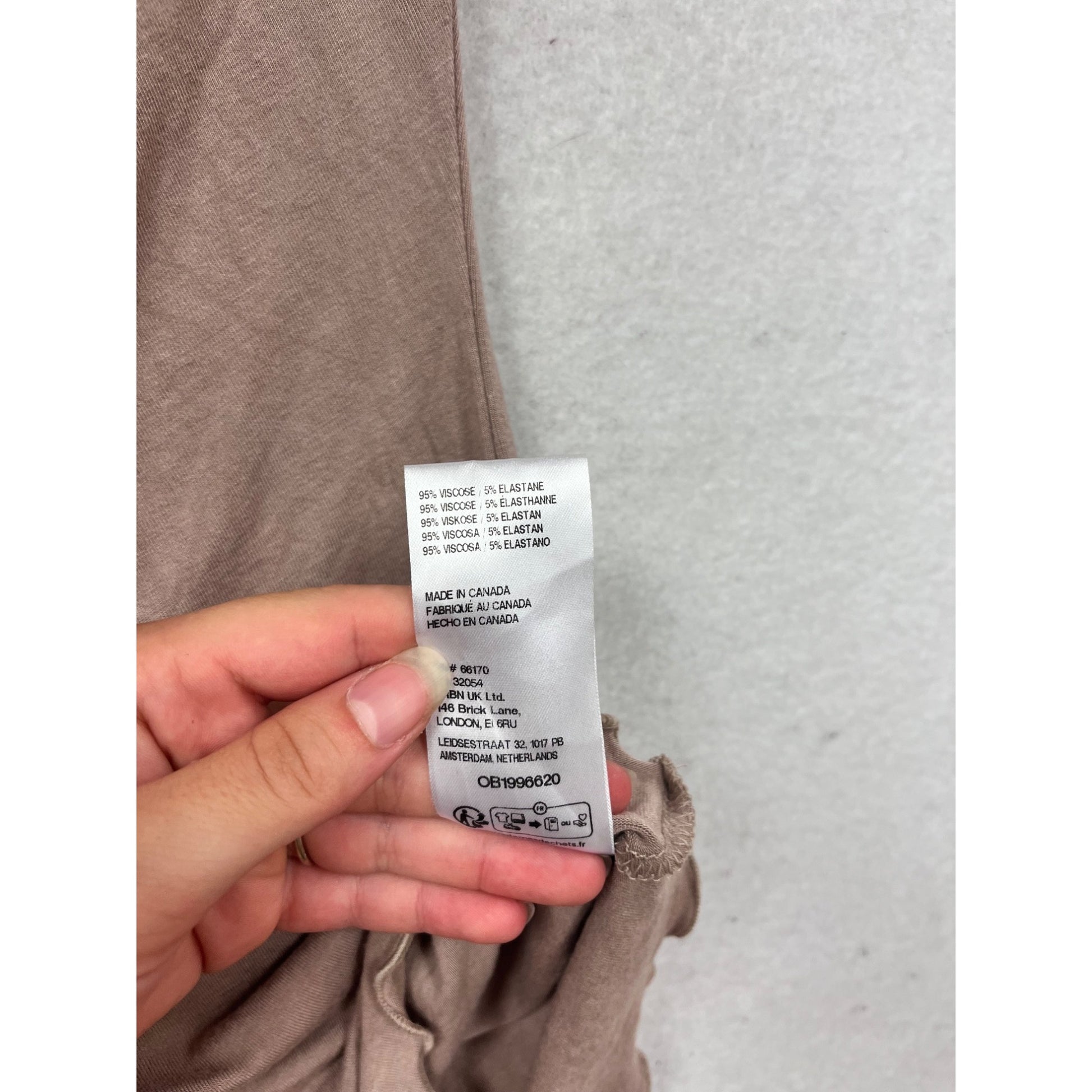 This asymmetrical drape top from Silence + Noise offers a unique silhouette with its elegant design. Crafted from a soft viscose blend, it provides comfort and style. The neutral taupe hue is versatile, making it suitable for various occasions. Ideal for those seeking a chic, contemporary look.