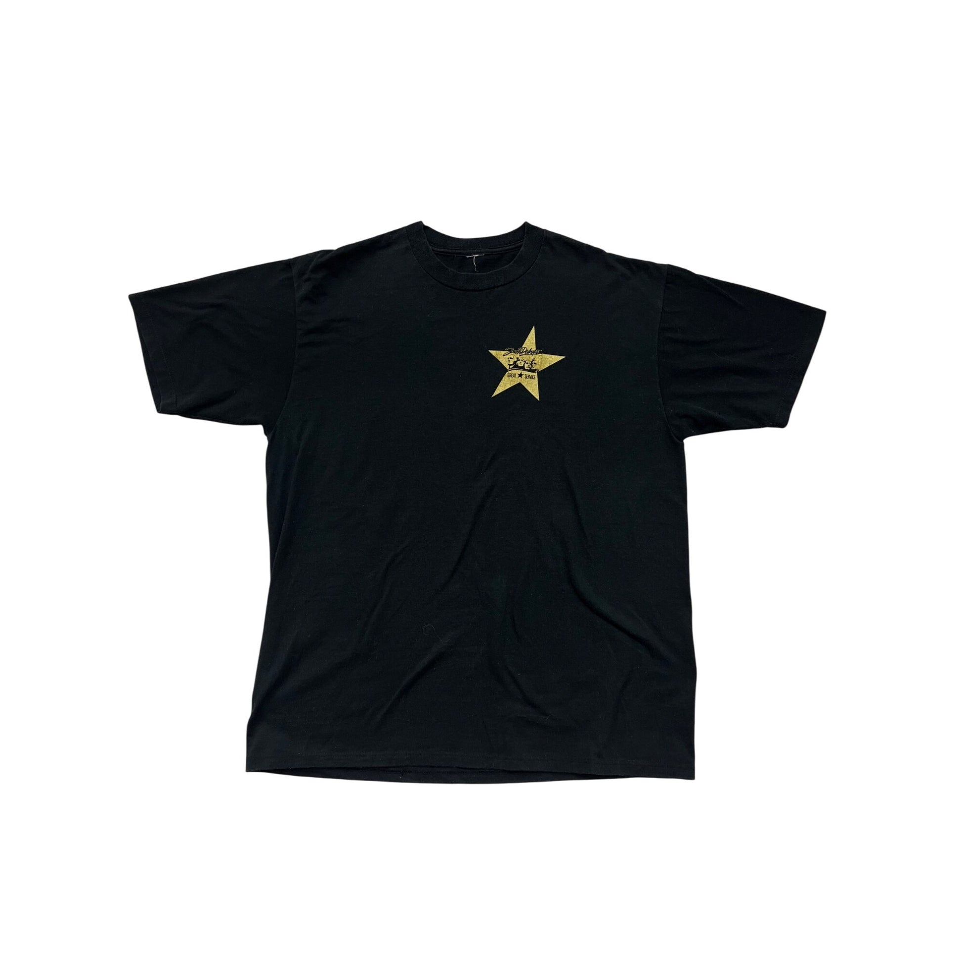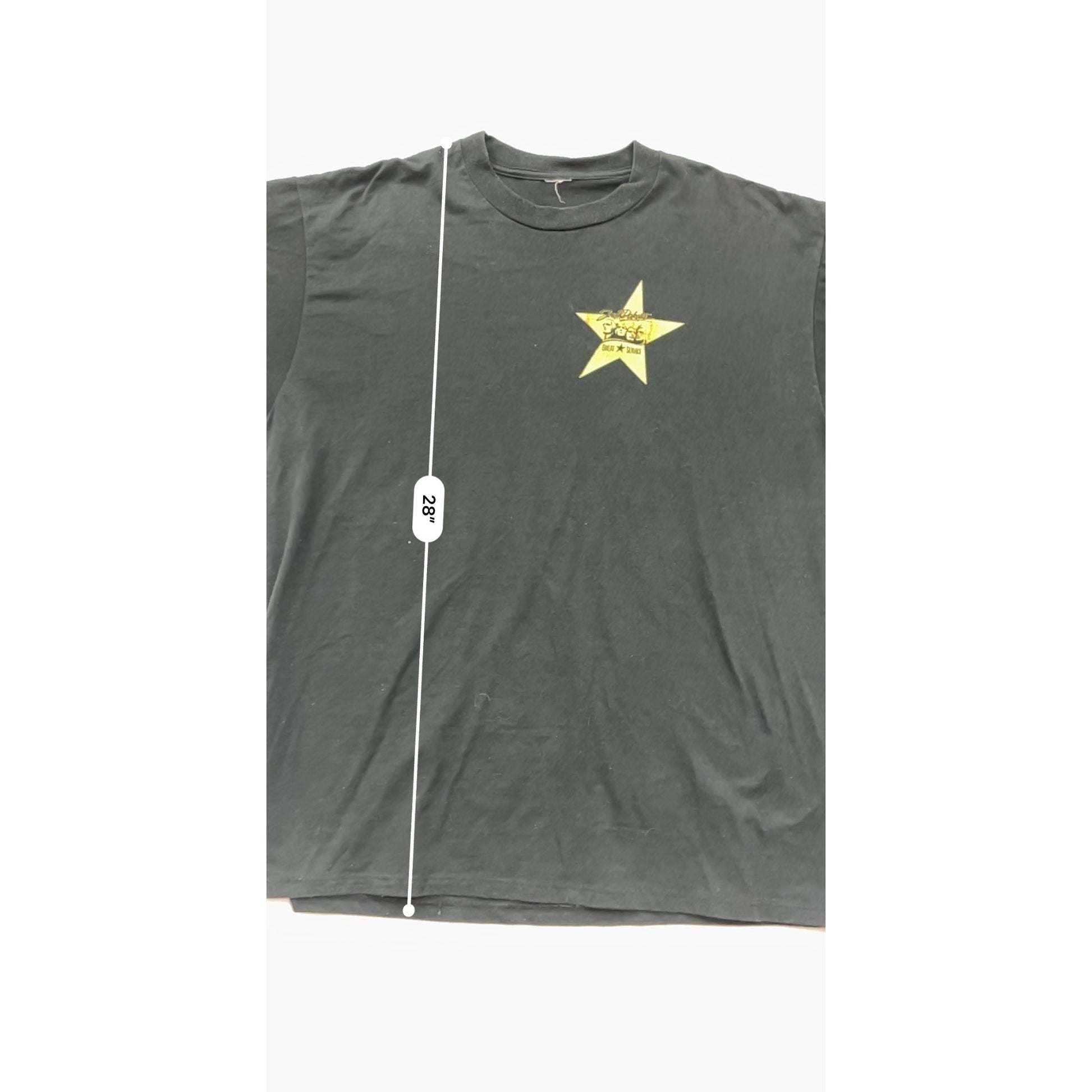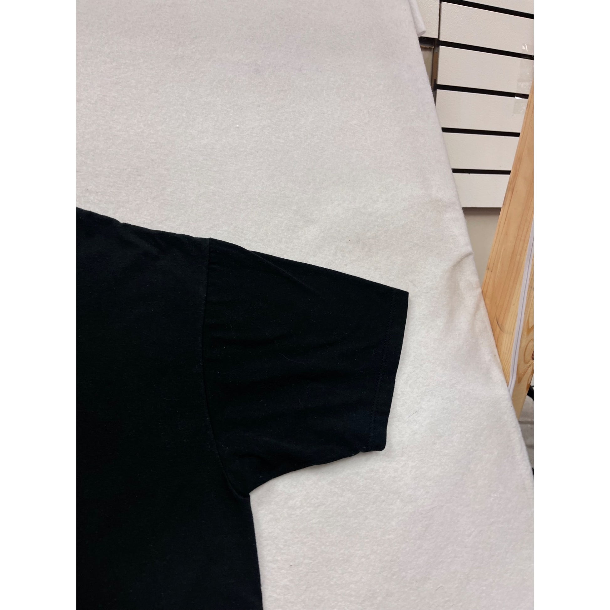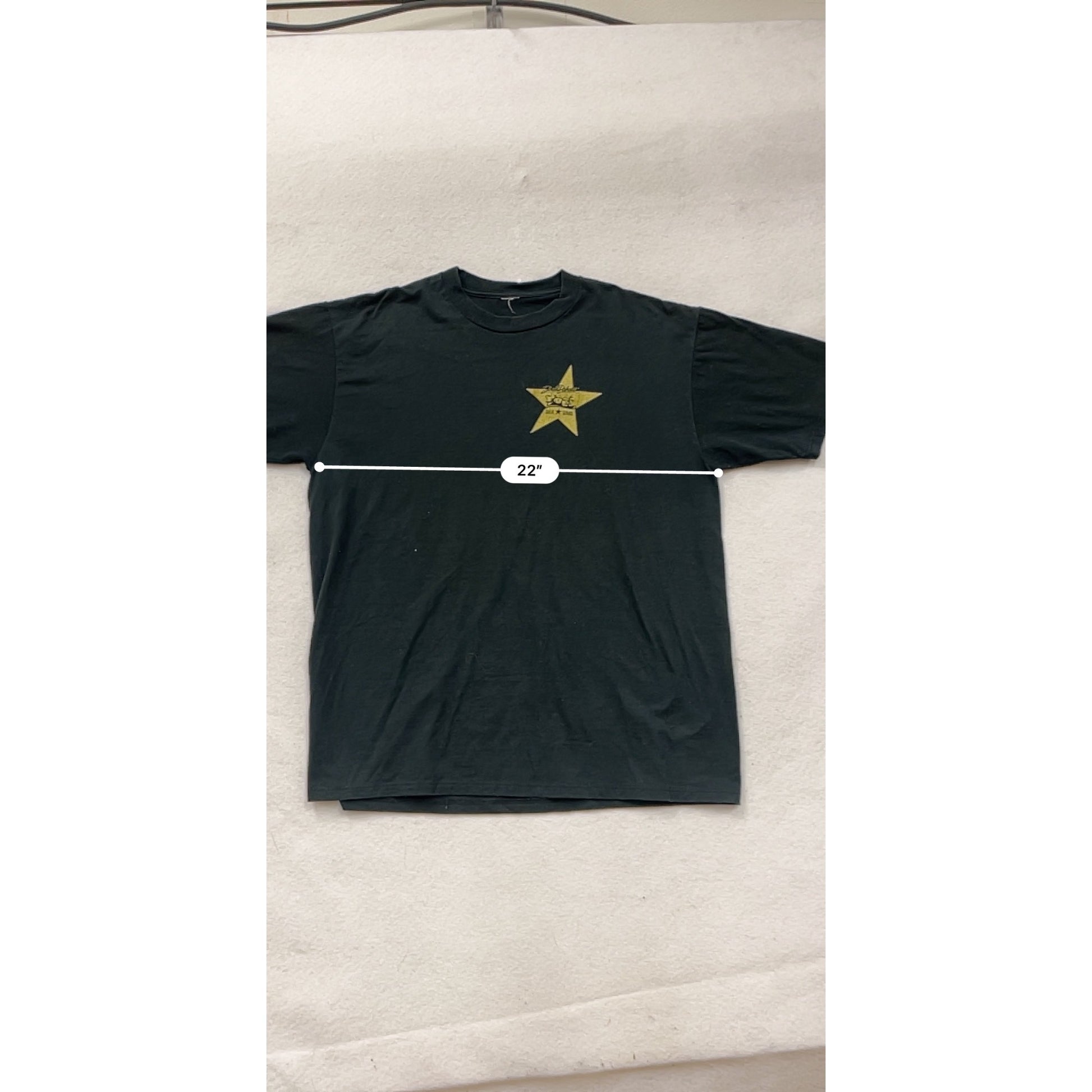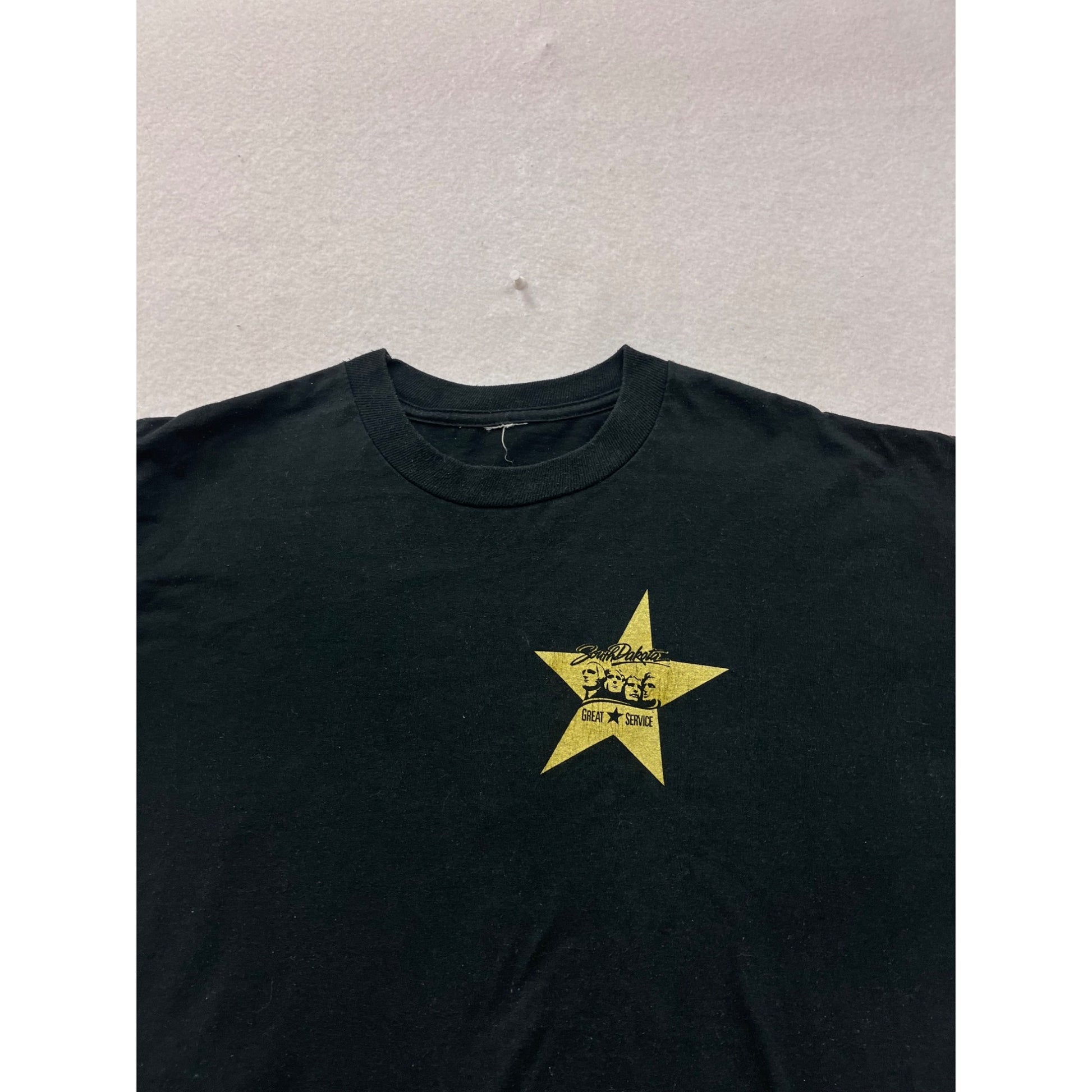 This t-shirt features a bold gold star and South Dakota Mt. Rushmore graphic. Its versatile black fabric complements various casual wardrobes.