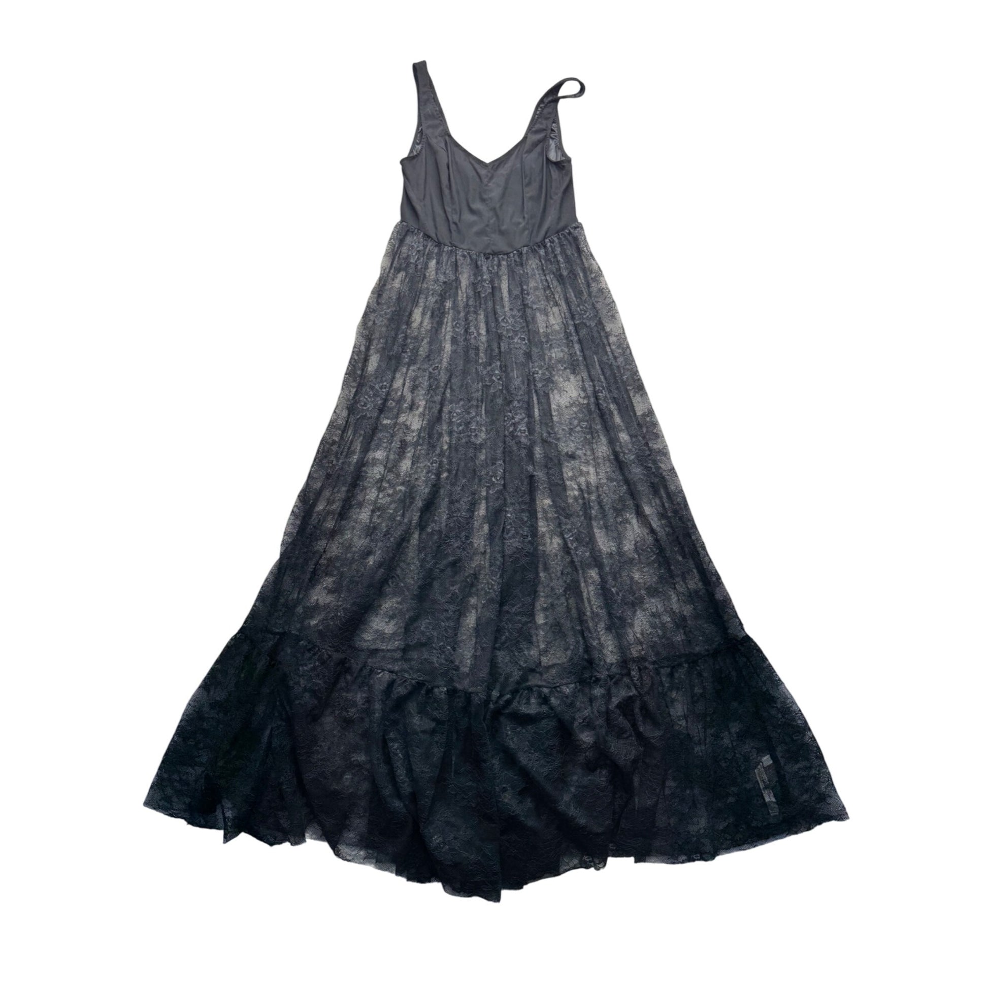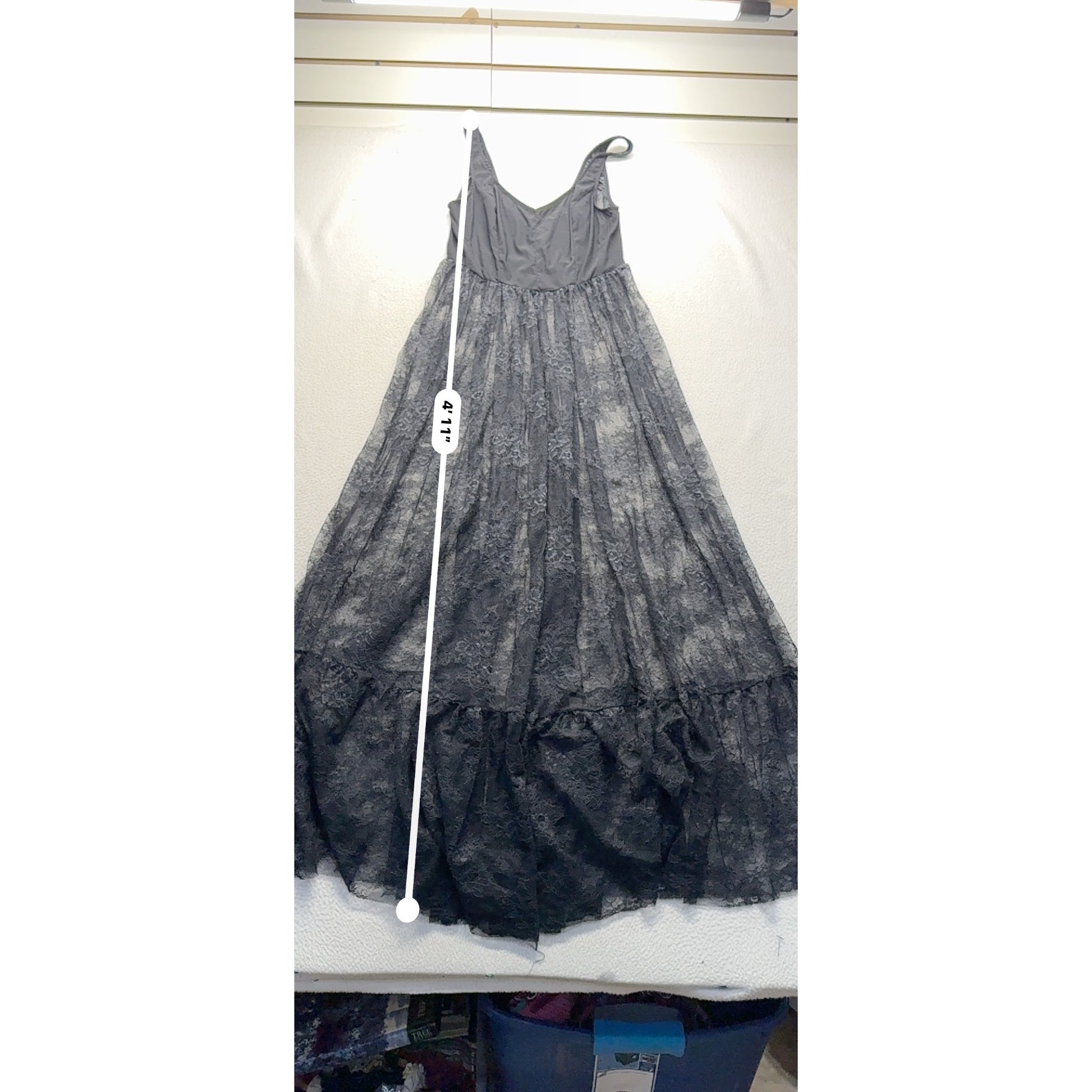 This elegant maxi dress features a sheer lace overlay, providing a sophisticated touch. The spaghetti straps and backless design offer a modern, stylish look. Ideal for formal events, its lightweight material ensures comfort and ease of movement. The dress is designed with care instructions for longevity.