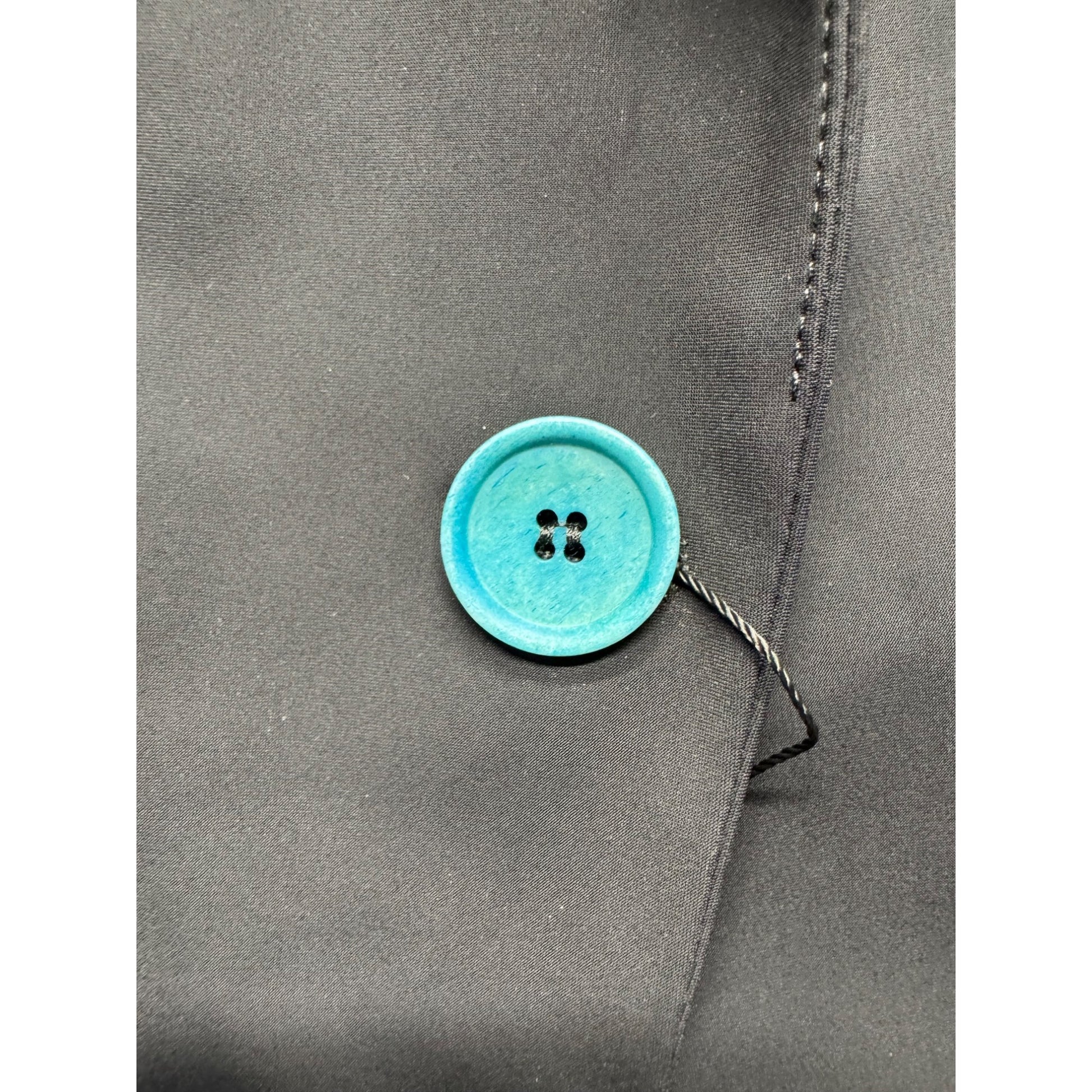 This blazer features a sleek black design with a standout teal button, ideal for professional environments. Its polyamide-elastan blend ensures comfort and durability.