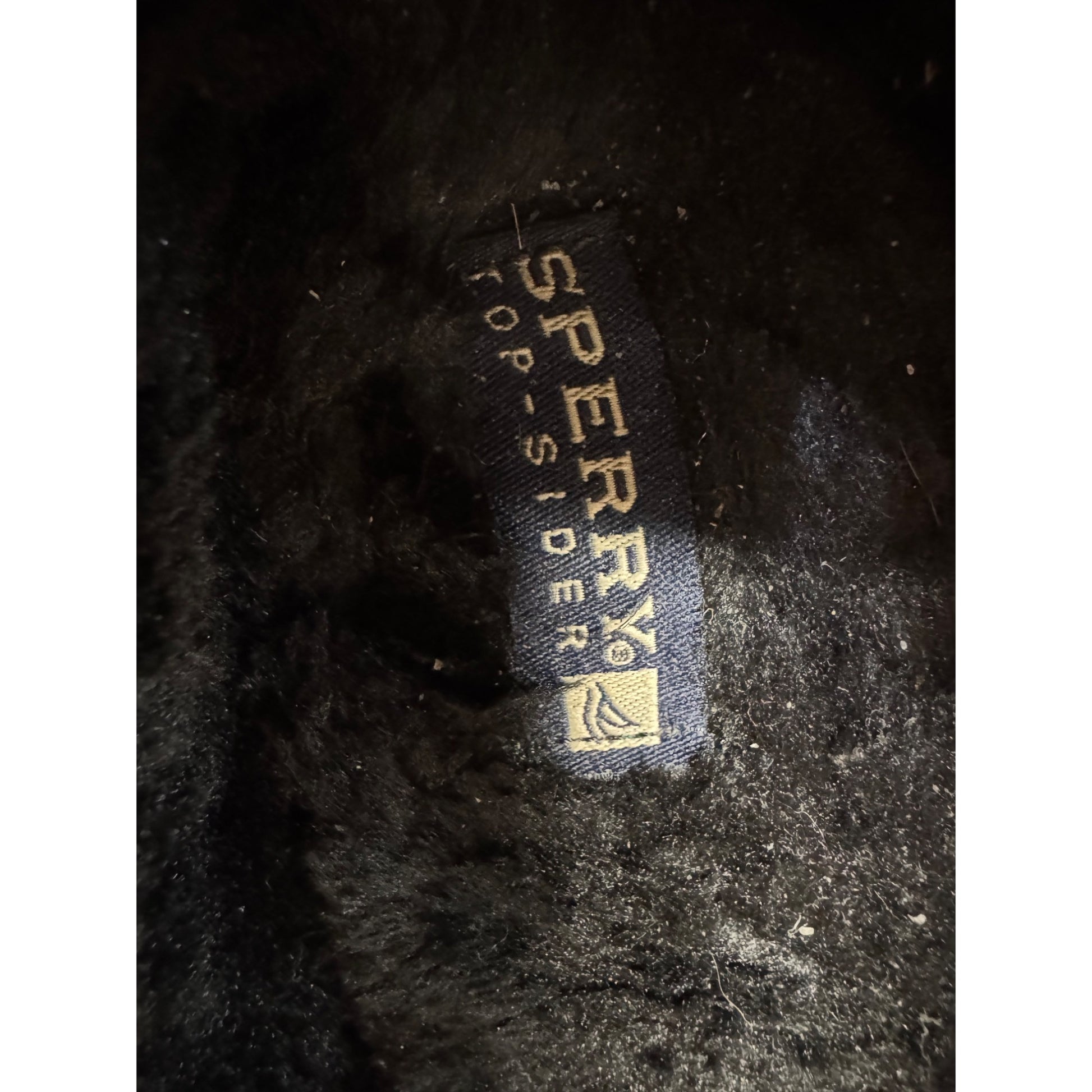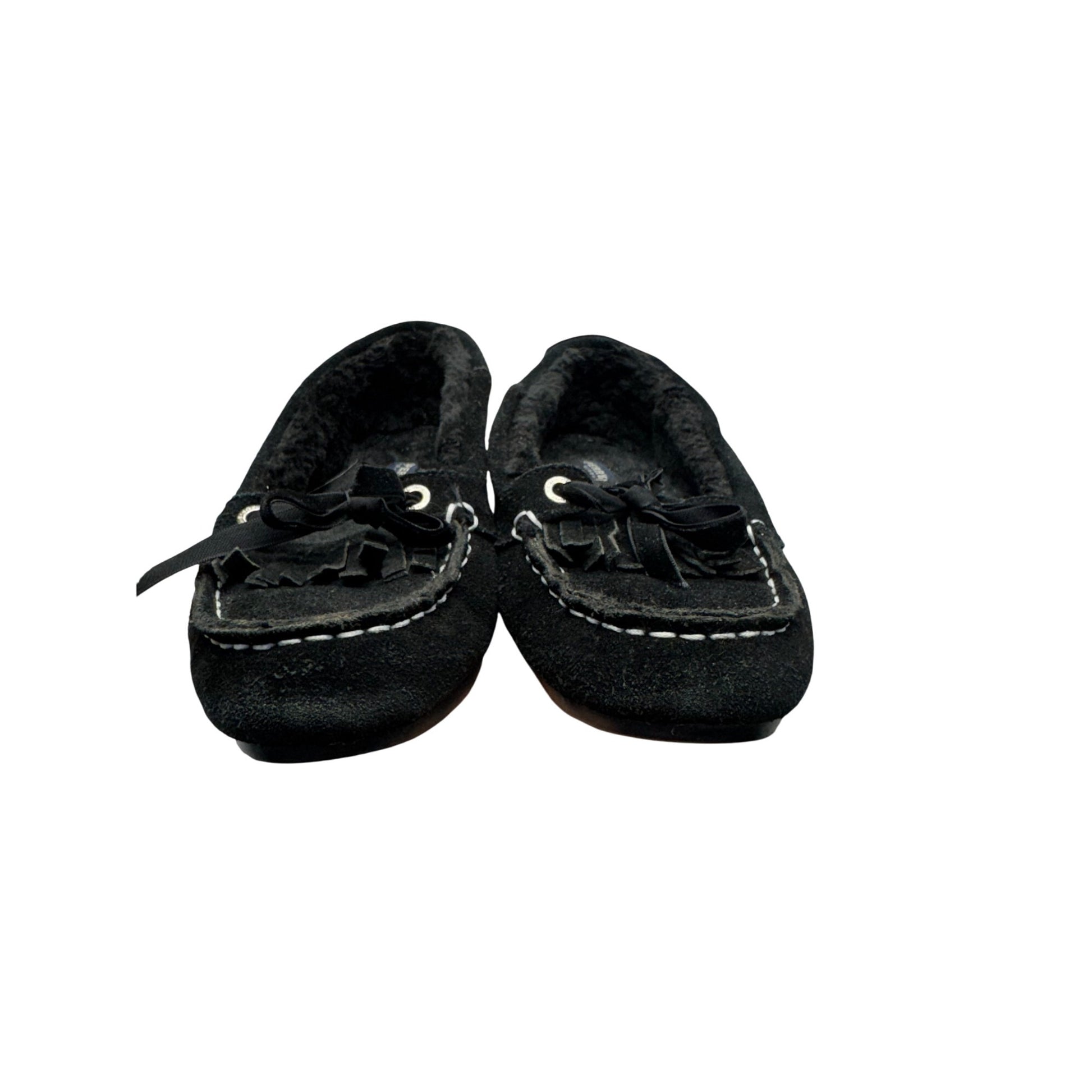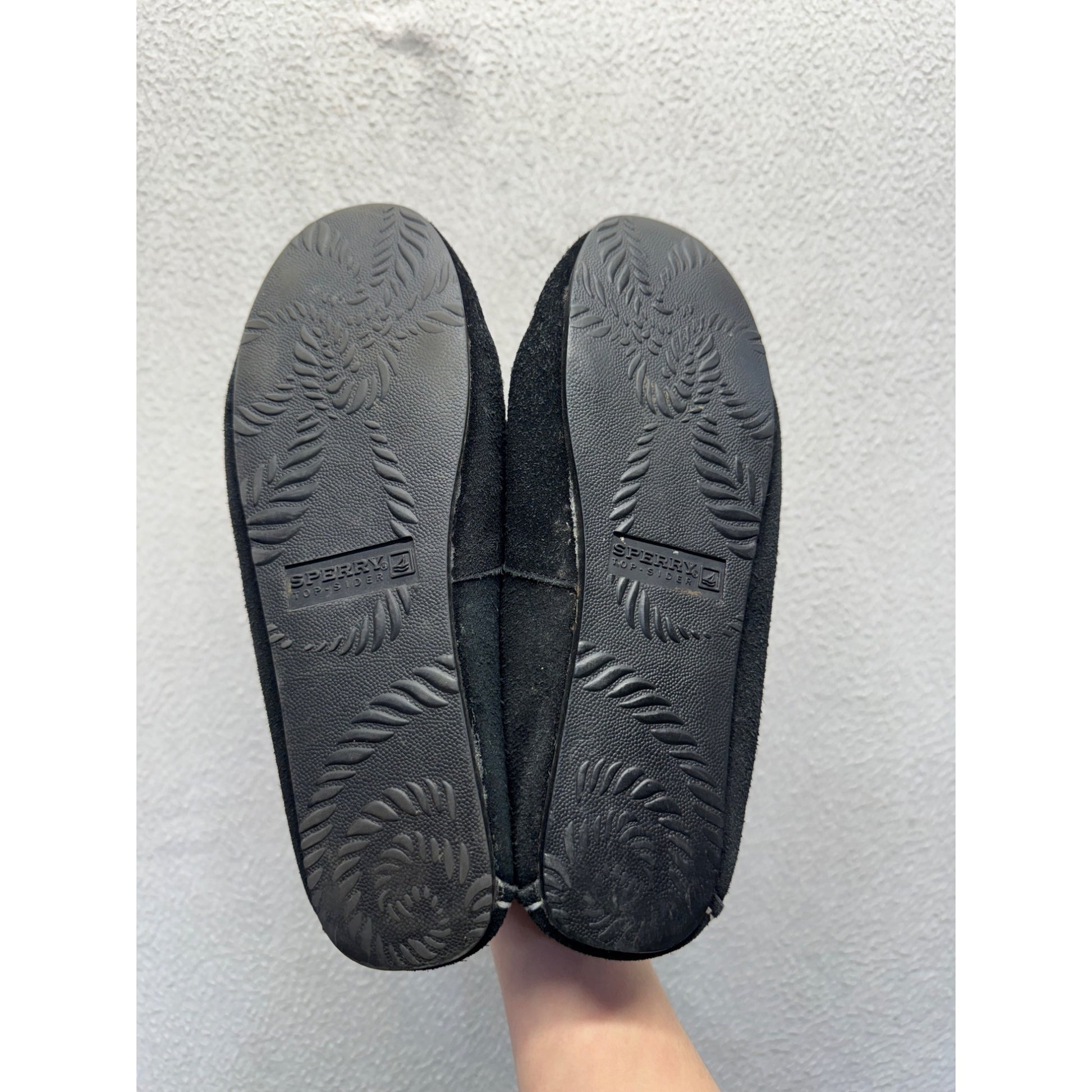 Sperry Womens Black Suede Moccasin Slippers W/ Faux Fur Lining Size 7 #9519