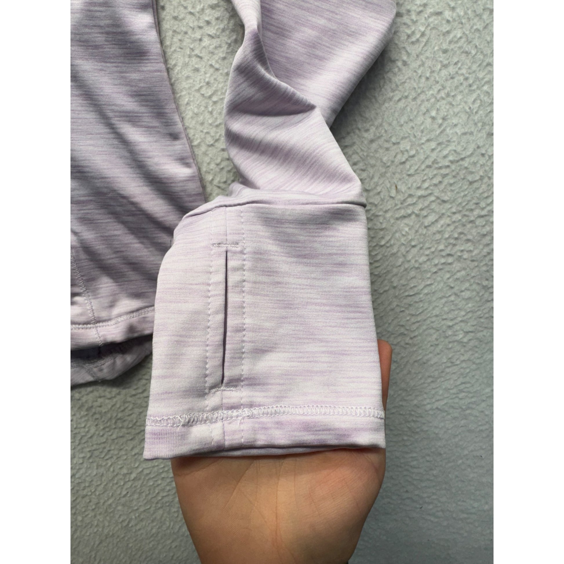 This lightweight jacket is a comfy yet stylish option for layering. The full-zip design and soft lavender shade make it versatile and easy to wear.