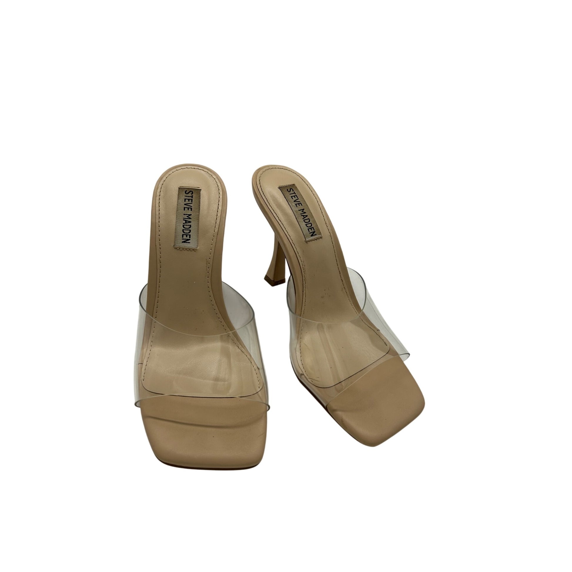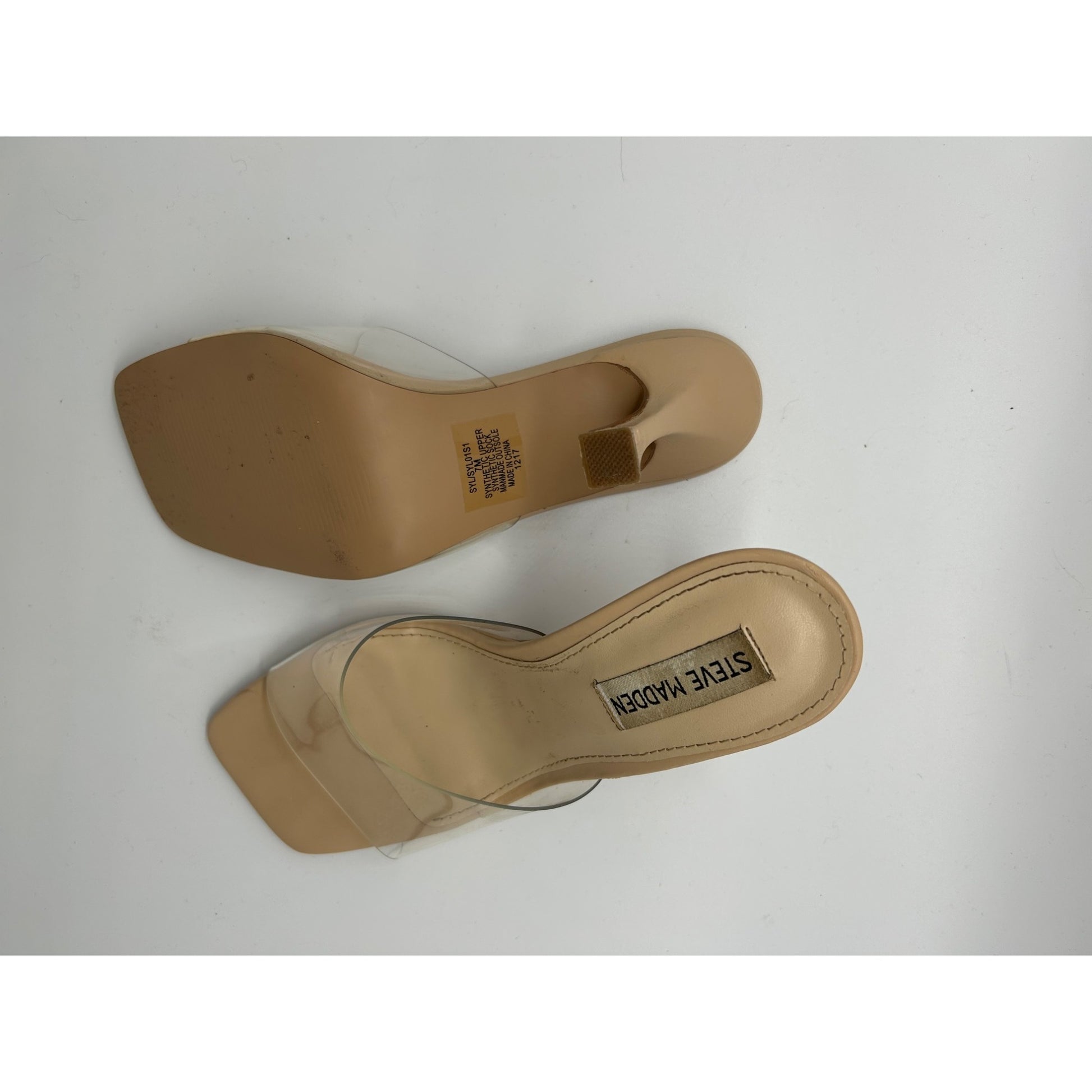 Steve Madden Clear Strap Square Toe Heeled Sandals Beige #6658