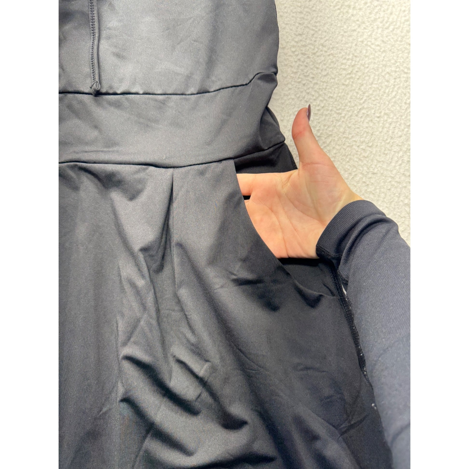 This strapless black dress from Velvet Rose offers a professional and polished look. Features a drawstring waist and functional pockets for added utility.