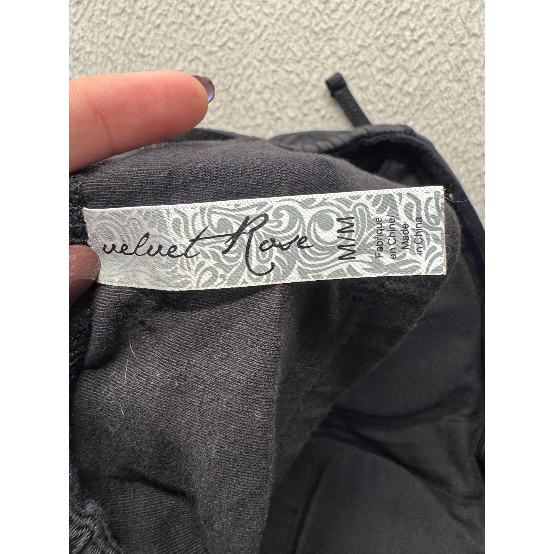 Strapless Black Velvet Rose Dress Pockets & Drawstring Waistline 259B