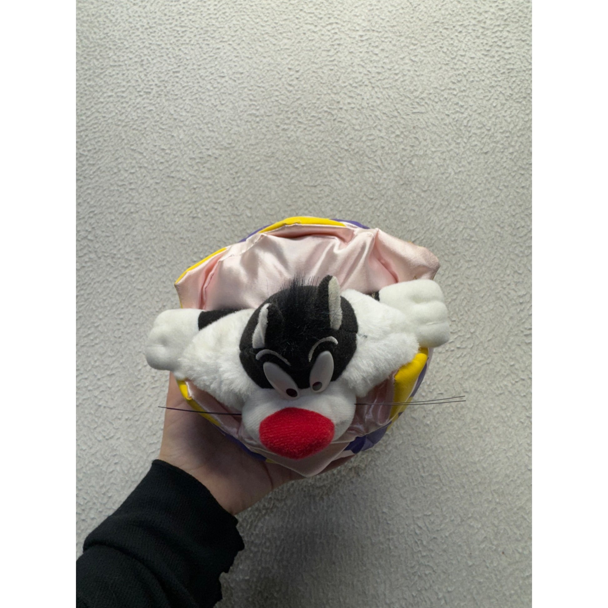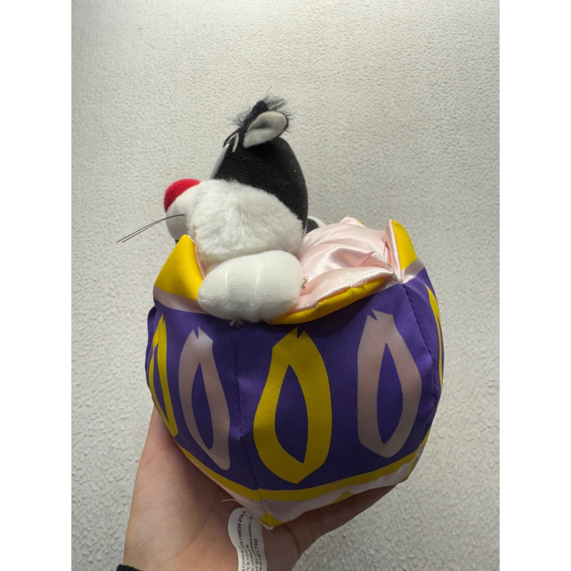 Once upon a time, nestled in a vibrant eggshell of purple and yellow, Sylvester the Cat awaited his next adventure. This Warner Bros gem from 1997 is a nostalgic treasure, bringing the mischief of the classic character to life. Soft, cuddly, and full of charm, Sylvester is ready to brighten any collection.