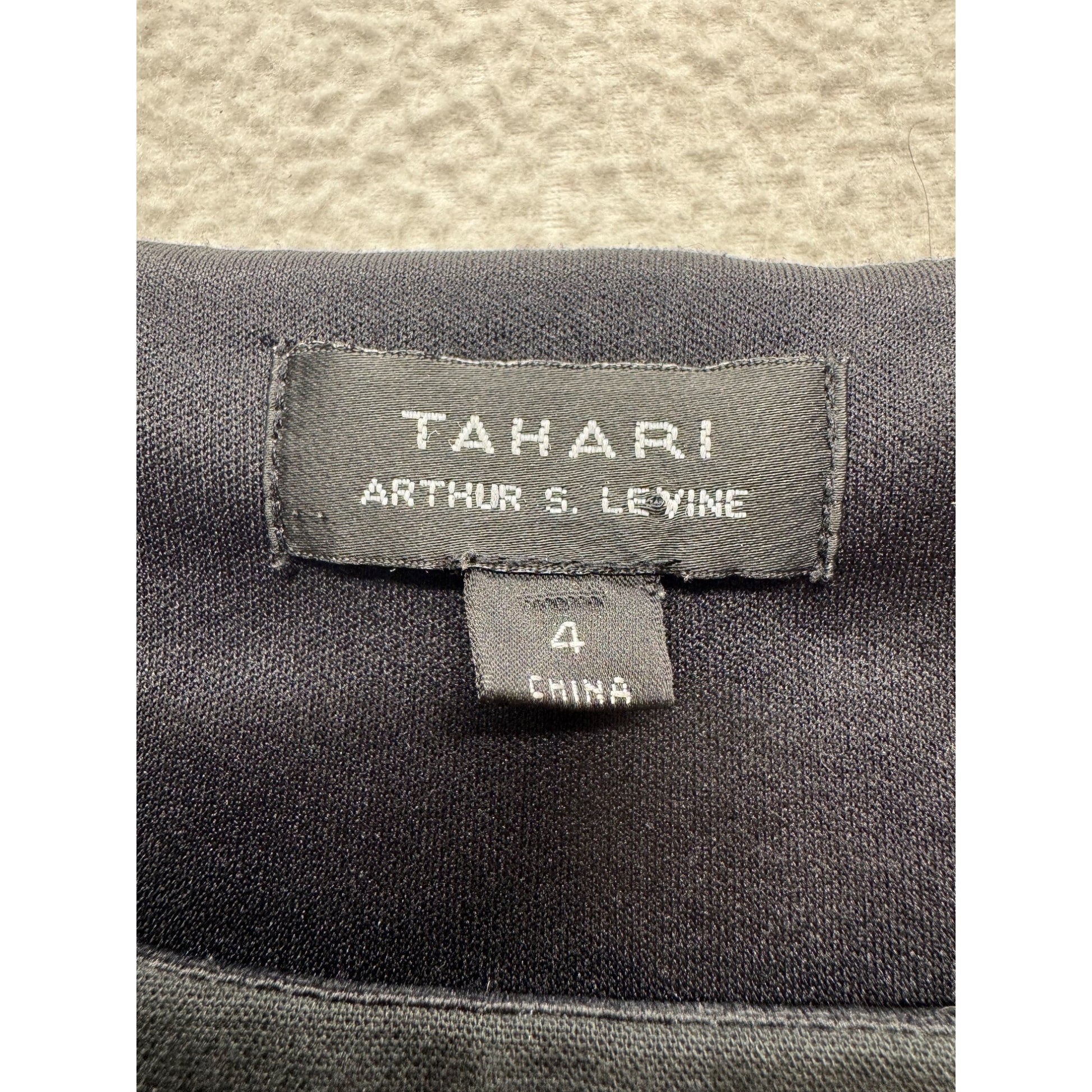 Tahari Arthur S. Levine Black Sheath Dress Textured Trim Size 4 #9143