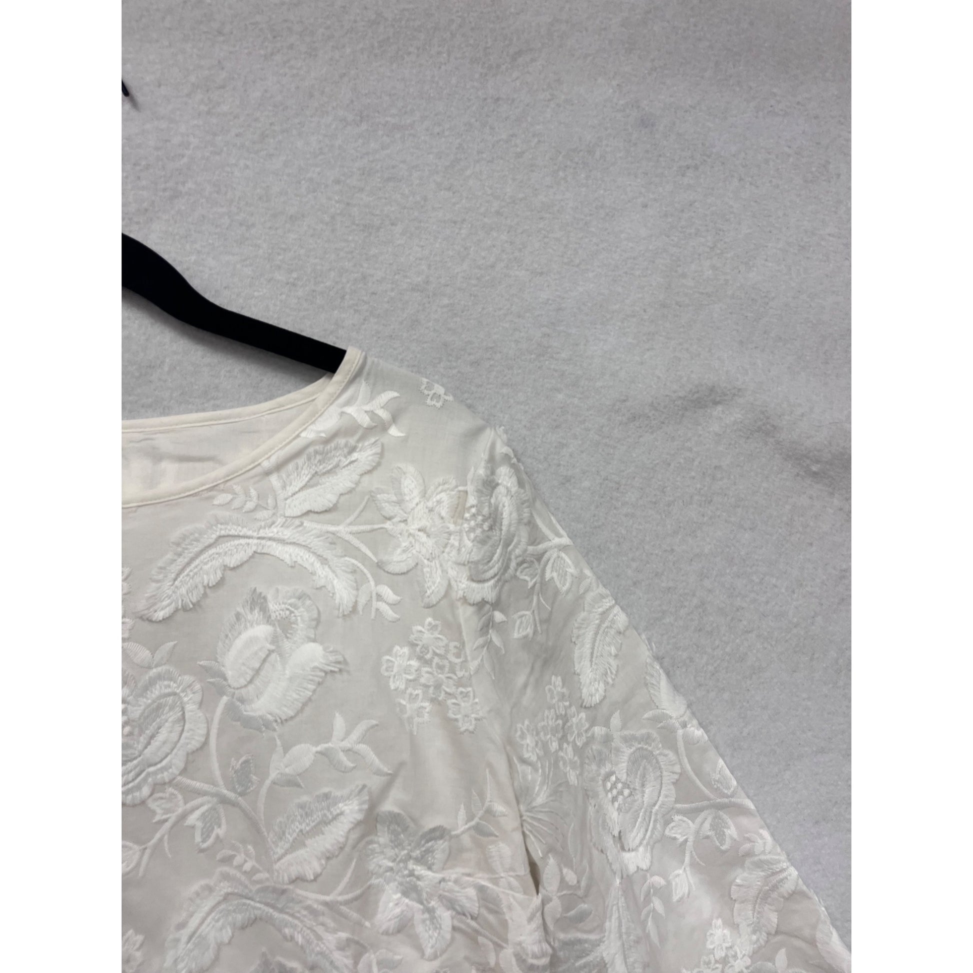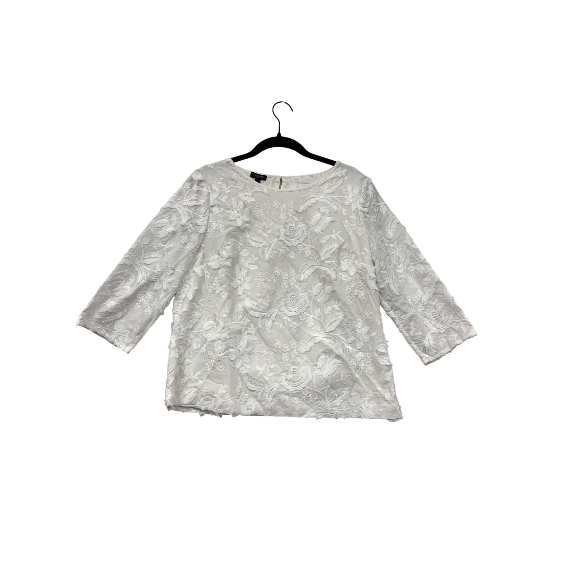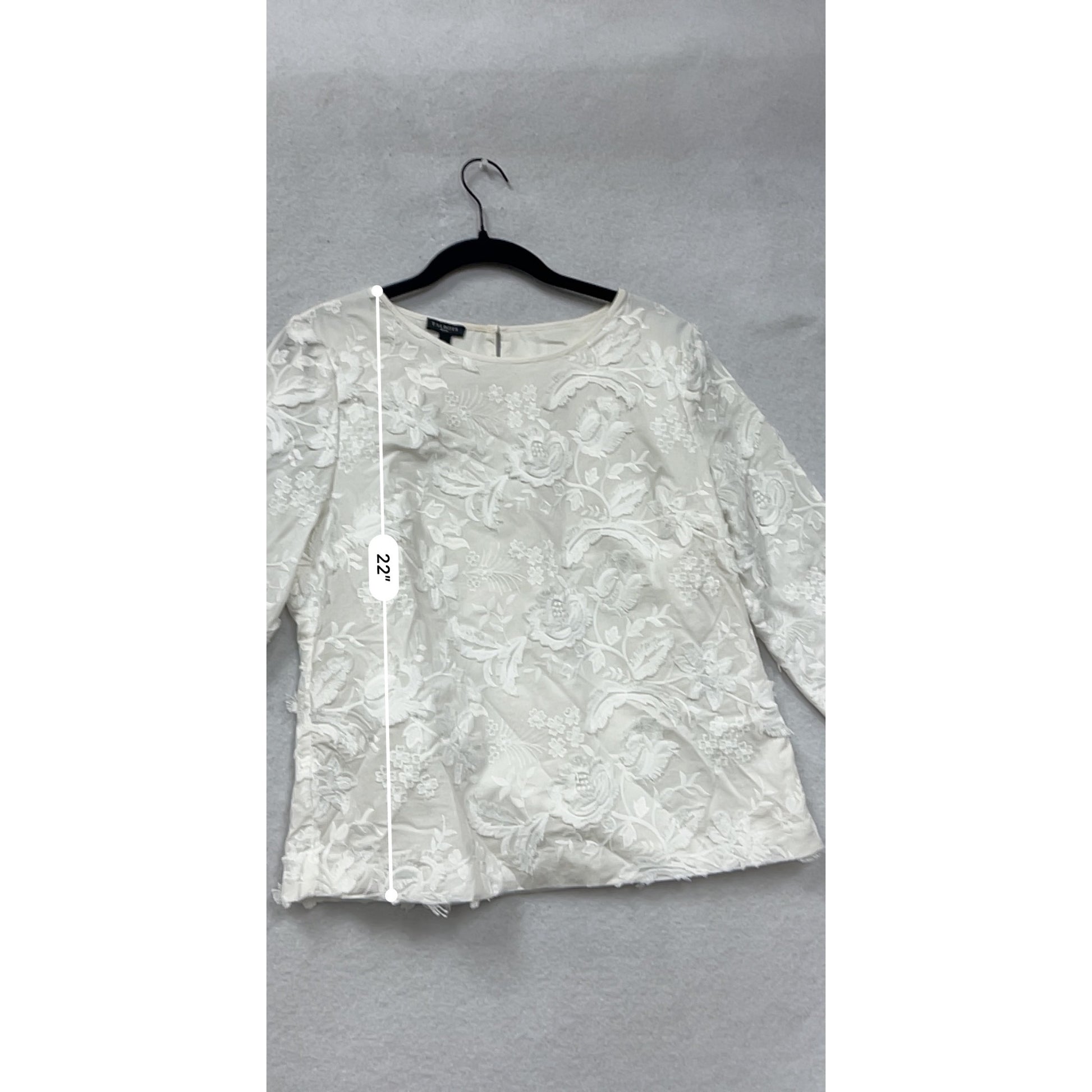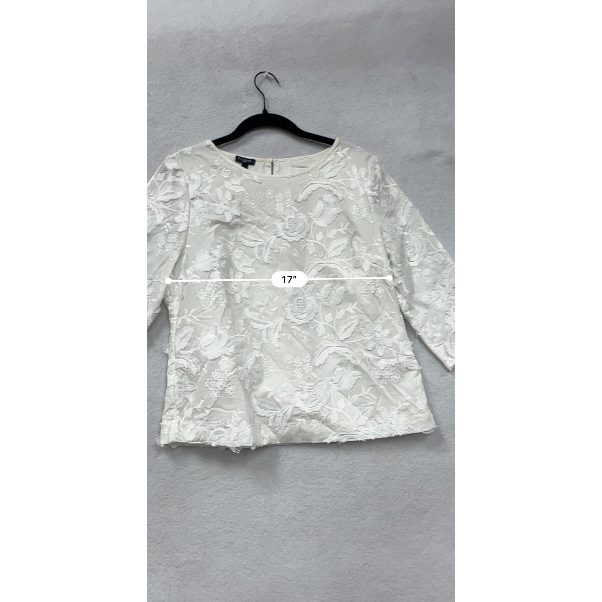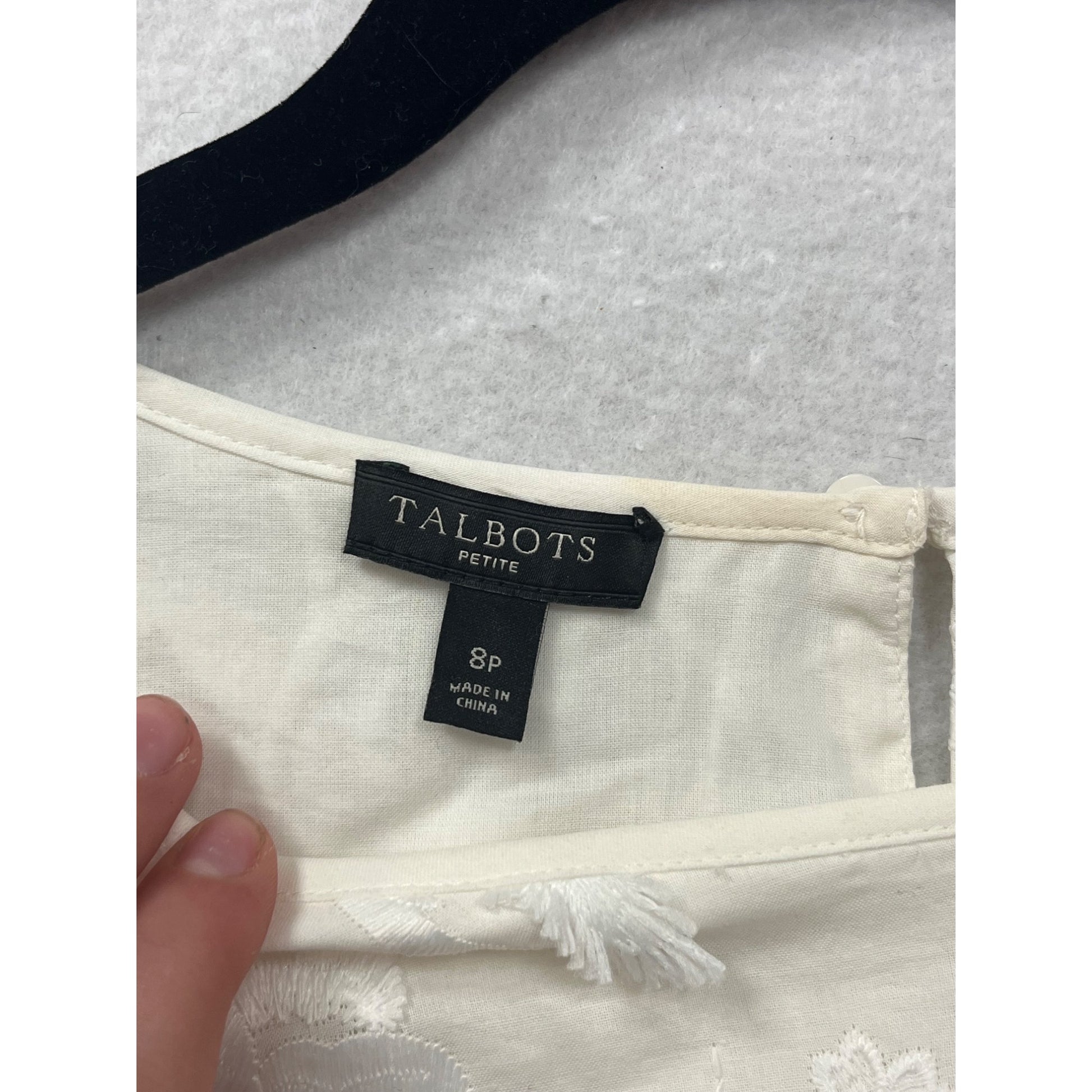 Talbots Petite Womens White Floral Lace 3/4 Sleeve Blouse Top Size 8P #6965