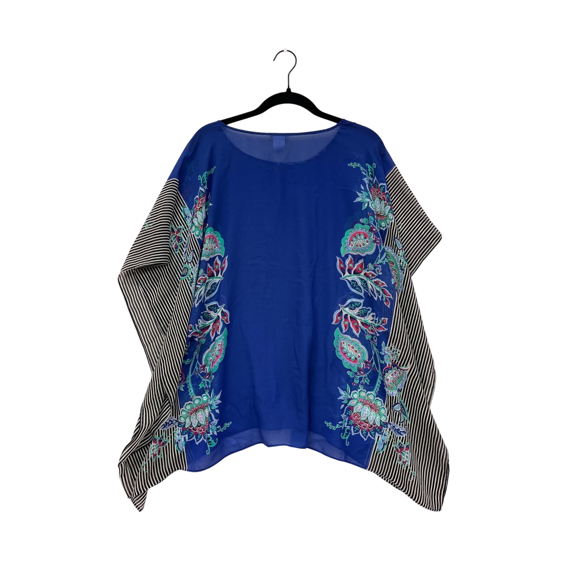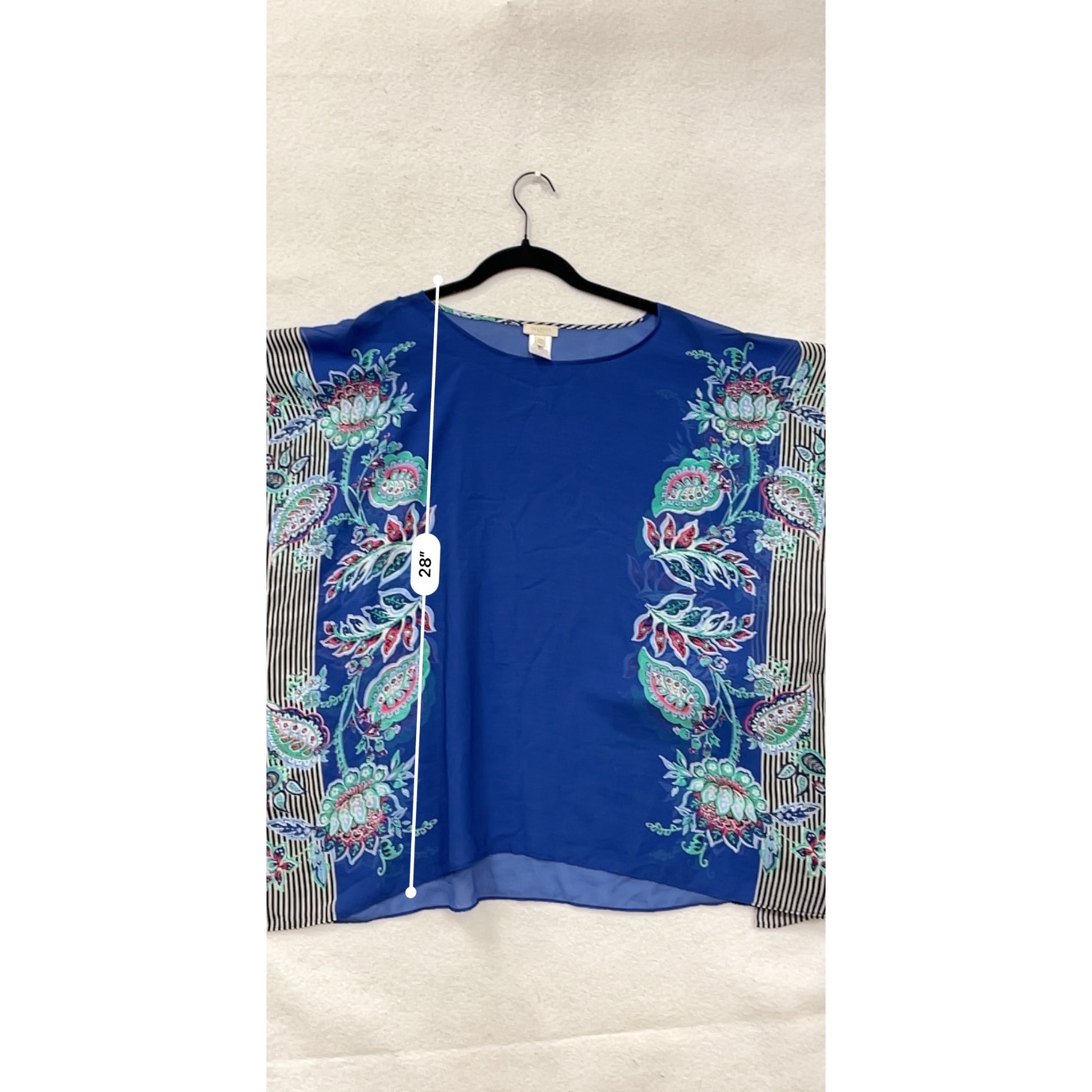 Talbots Womens Floral & Striped Waterfall Top Small/Medium Blue Multicolor #6932
